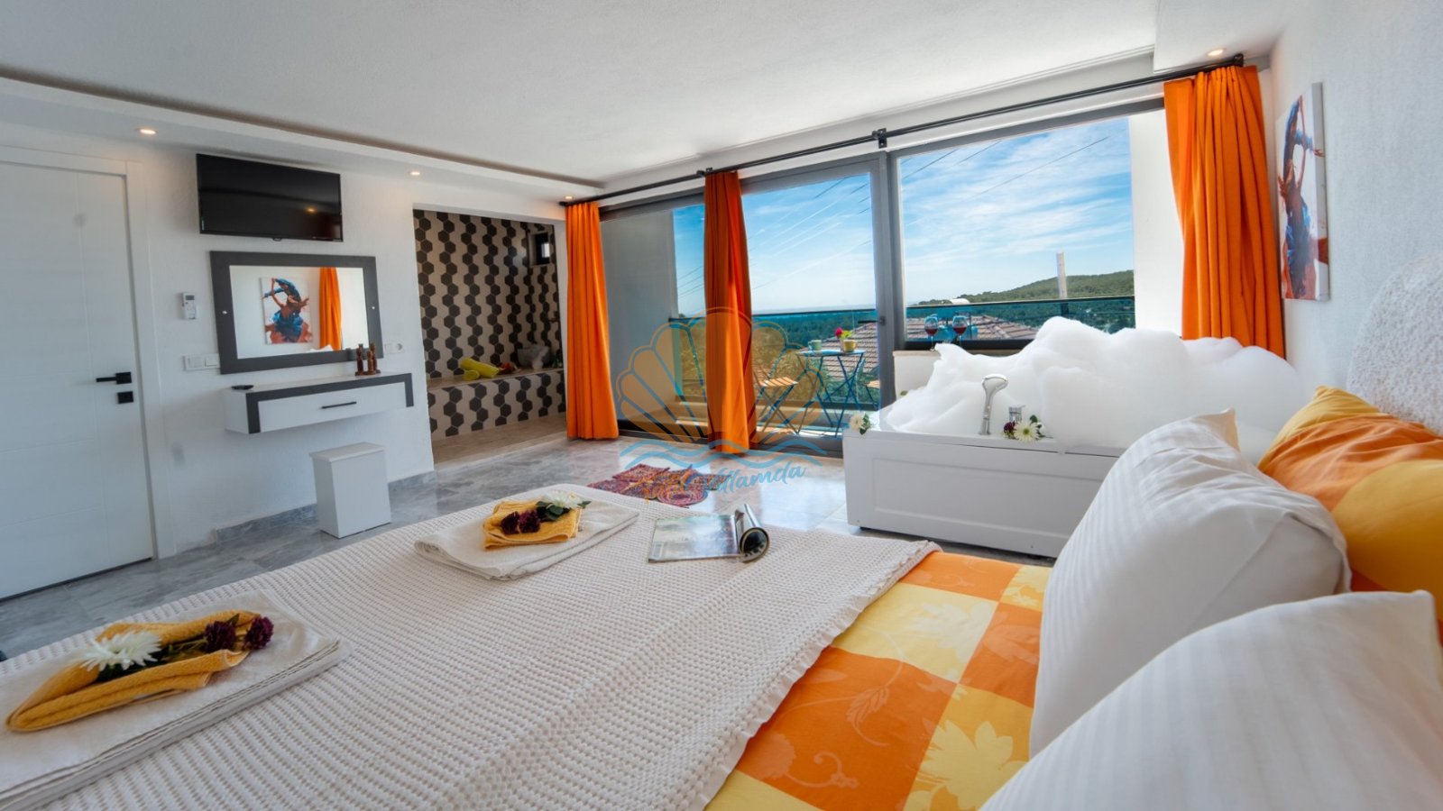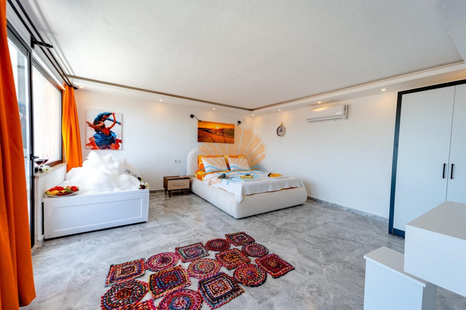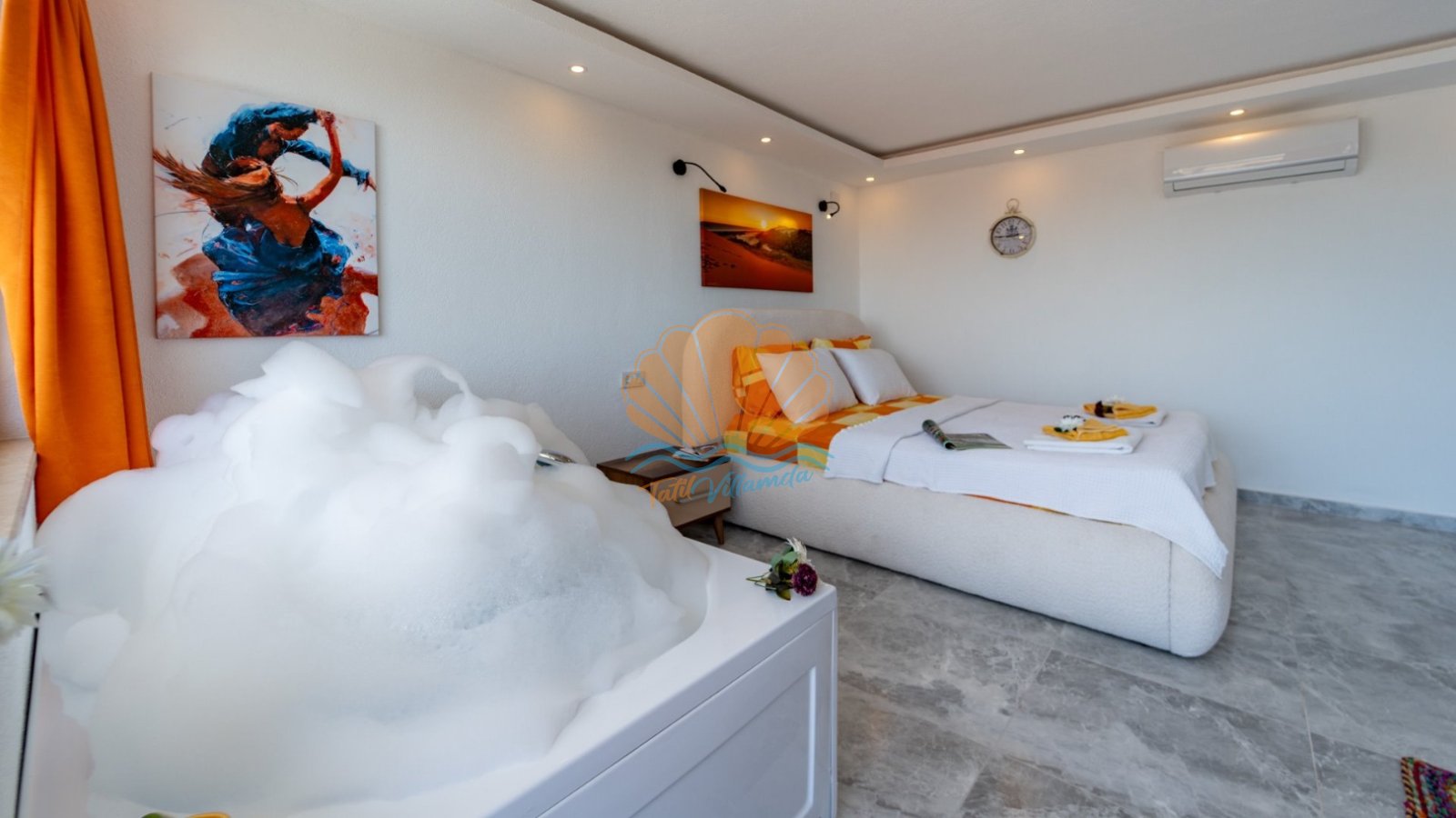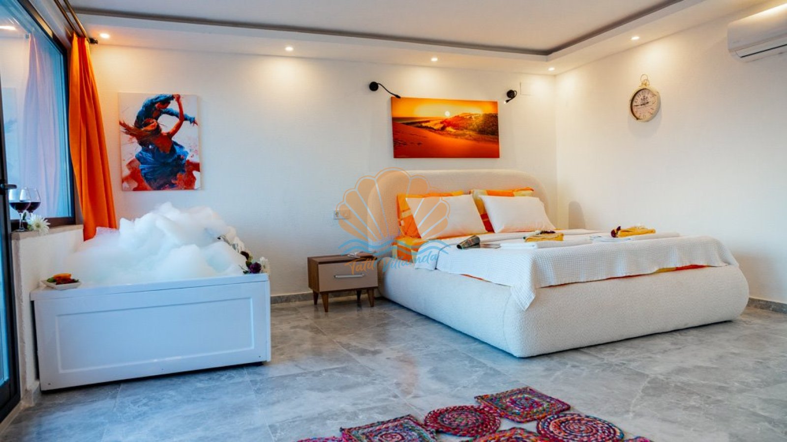 Villanın içerisinde bulunan ısıtmalı kapalı havuz, yılın her döneminde tatil yapma ayrıcalığı sağlar. Jakuzisi, saunası ve Türk hamamı ile adeta küçük bir spa deneyimi sunan Villa Mehmet Apt. Suite 4, tatil boyunca hem bedensel hem zihinsel olarak dinlenmenize yardımcı olur. Konfor ön planda tutularak tasarlanan yaşam alanları, ferah yapısı ve kullanışlı mobilyalarıyla ev rahatlığını aratmaz.
