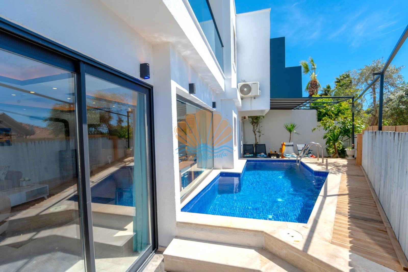 Kalkan’ın gözde bölgelerinden Patara mevkiinde yer alan, konfor ve mahremiyeti bir arada sunan özel bir tatil villasıdır. Korunaklı havuz yapısı sayesinde dışarıdan görünmeden rahatça vakit geçirebilir, sevdiklerinizle huzurlu bir tatilin keyfini çıkarabilirsiniz. Modern ve şık detaylarla dizayn edilen villa, 2 yatak odasıyla toplamda 4 kişiye kadar konaklama imkânı sunar ve özellikle çekirdek aileler ile balayı çiftleri için ideal bir seçenektir.