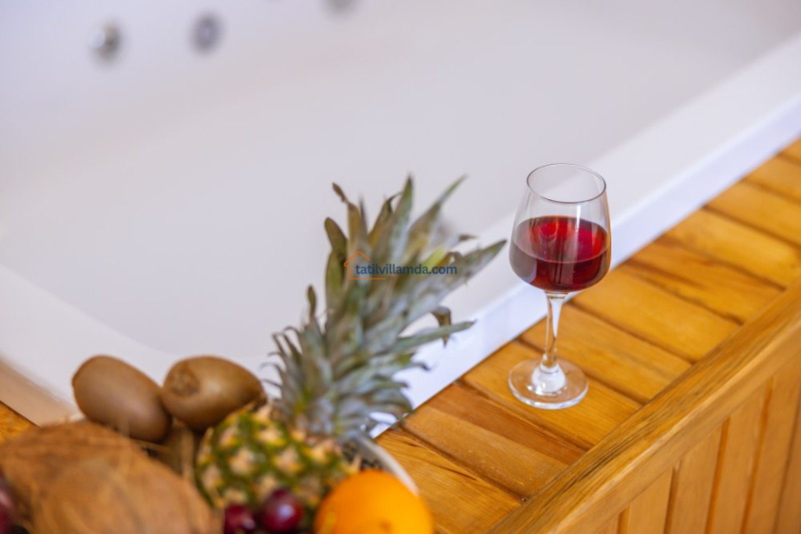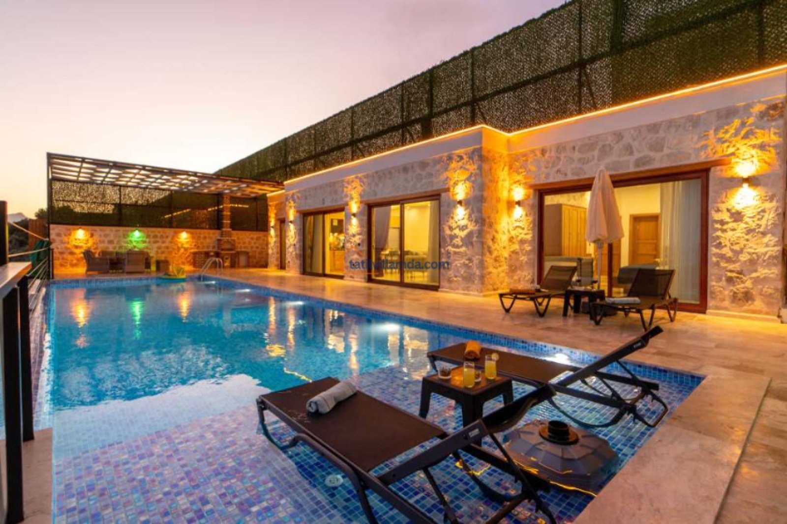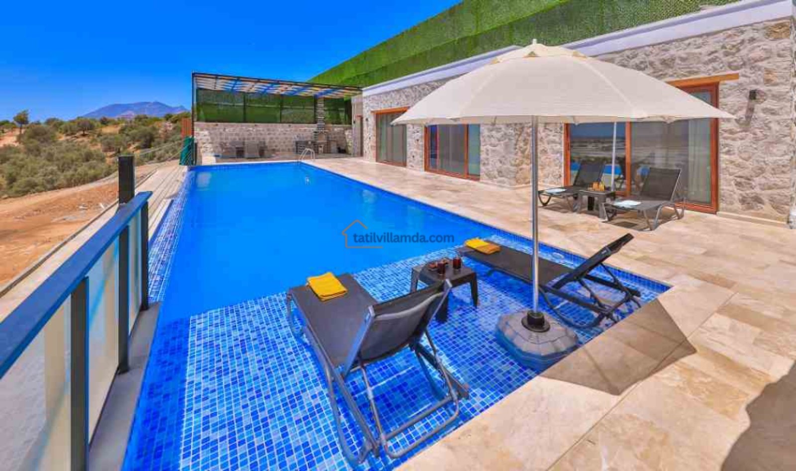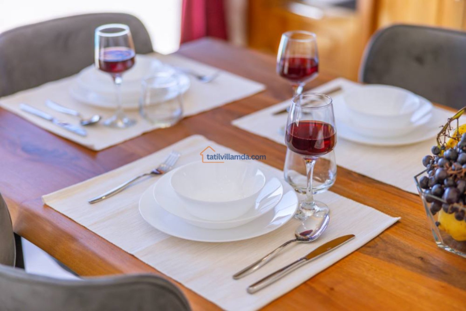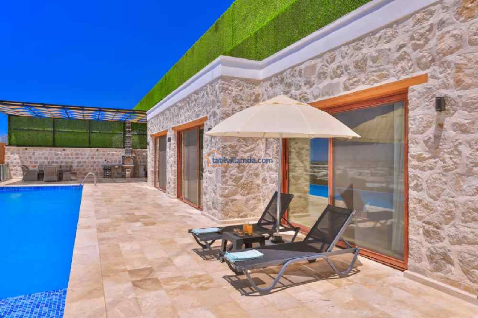 Villamız, 2 yatak odası ve 4 kişilik konaklama kapasitesi ile aileler ve balayı çiftleri için ideal bir seçenek. Geniş ve tamamen korunaklı özel yüzme havuzu, havuz başında şezlonglar, şemsiye, barbekü ve bahçe oturma grubu ile tatilinizi açık havada keyifle geçirebilirsiniz.