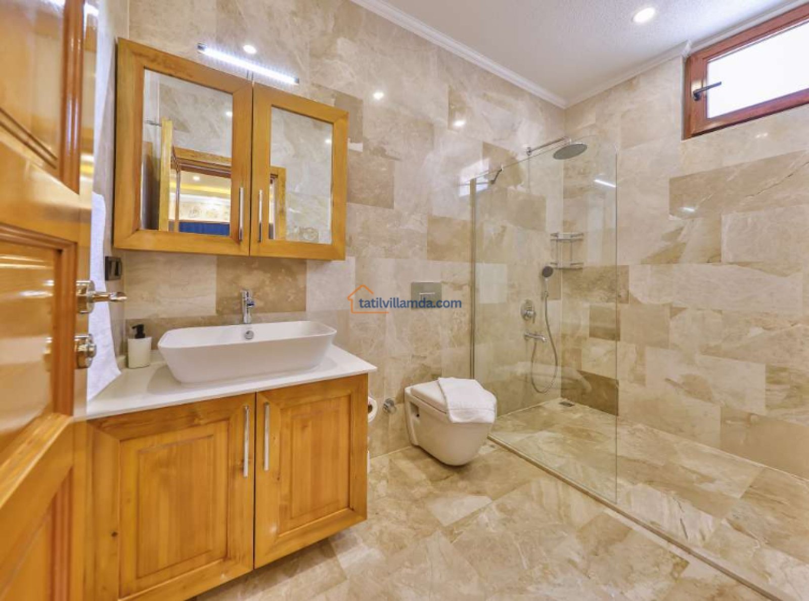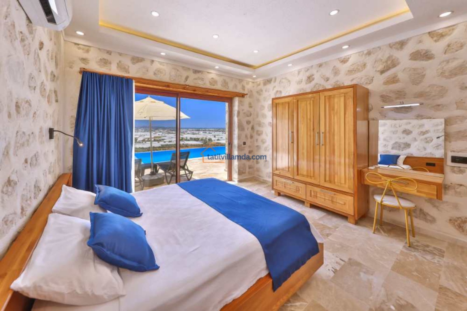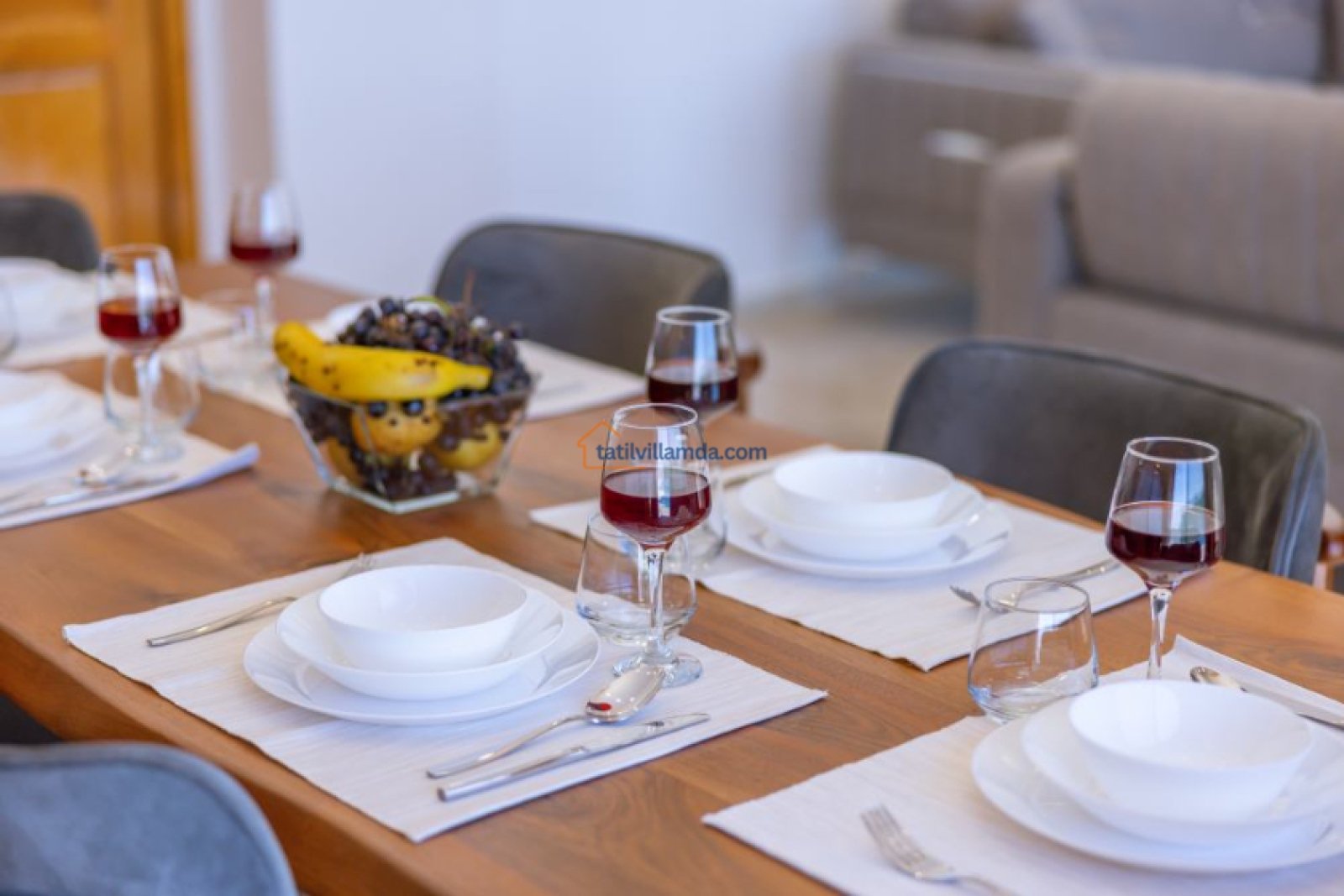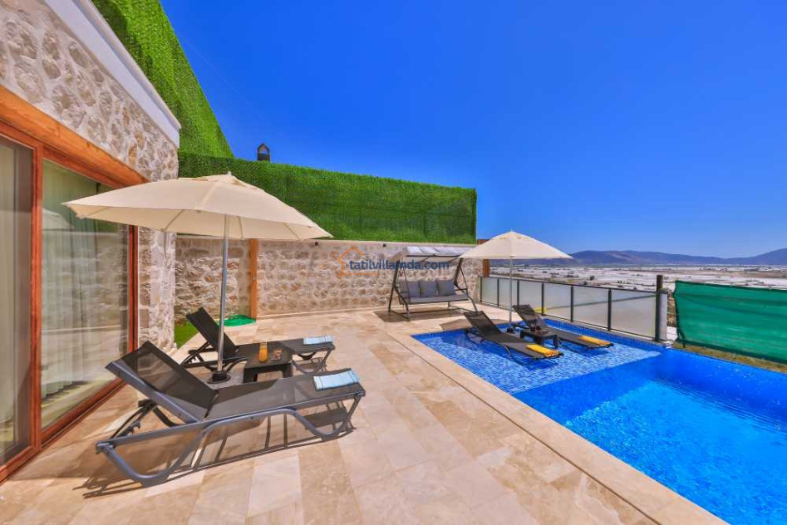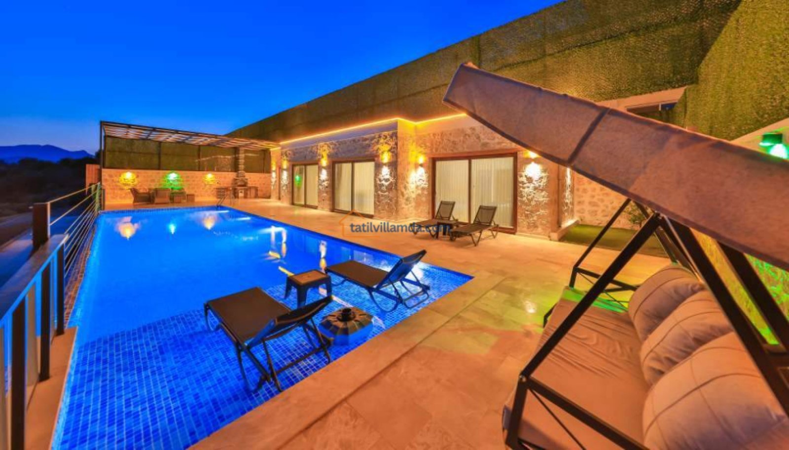Villamız, 2 yatak odası ve 4 kişilik konaklama kapasitesi ile aileler ve balayı çiftleri için ideal bir seçenek. Geniş ve tamamen korunaklı özel yüzme havuzu, havuz başında şezlonglar, şemsiye, barbekü ve bahçe oturma grubu ile tatilinizi açık havada keyifle geçirebilirsiniz.
