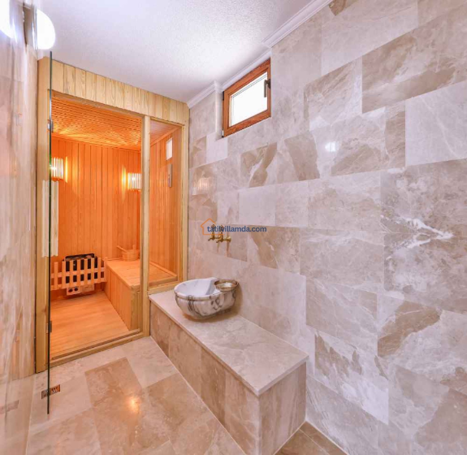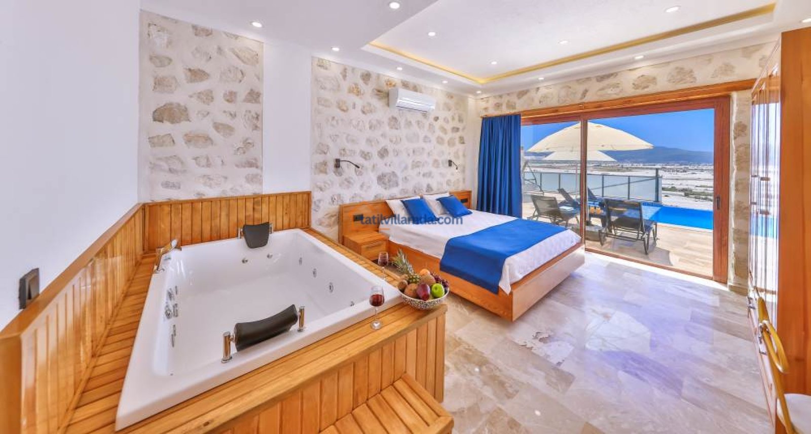 Villa Fay 2’nin iç tasarımı modern ve lüks bir şekilde dizayn edilmiştir. Jakuzili ana yatak odası, günün yorgunluğunu atmanız için mükemmel bir dinlenme alanı sunar. Ayrıca villa içinde yer alan sauna ve hamam, tatilinizi bir adım öteye taşıyarak size özel bir spa deneyimi yaşatır.