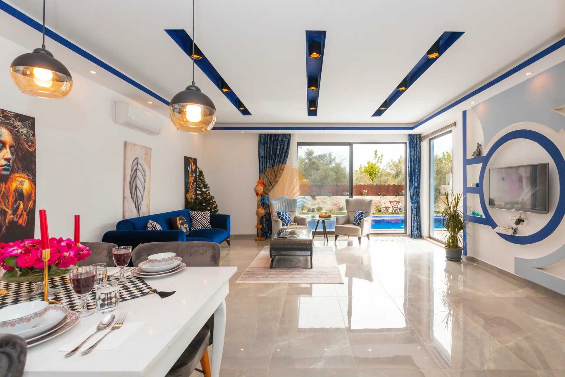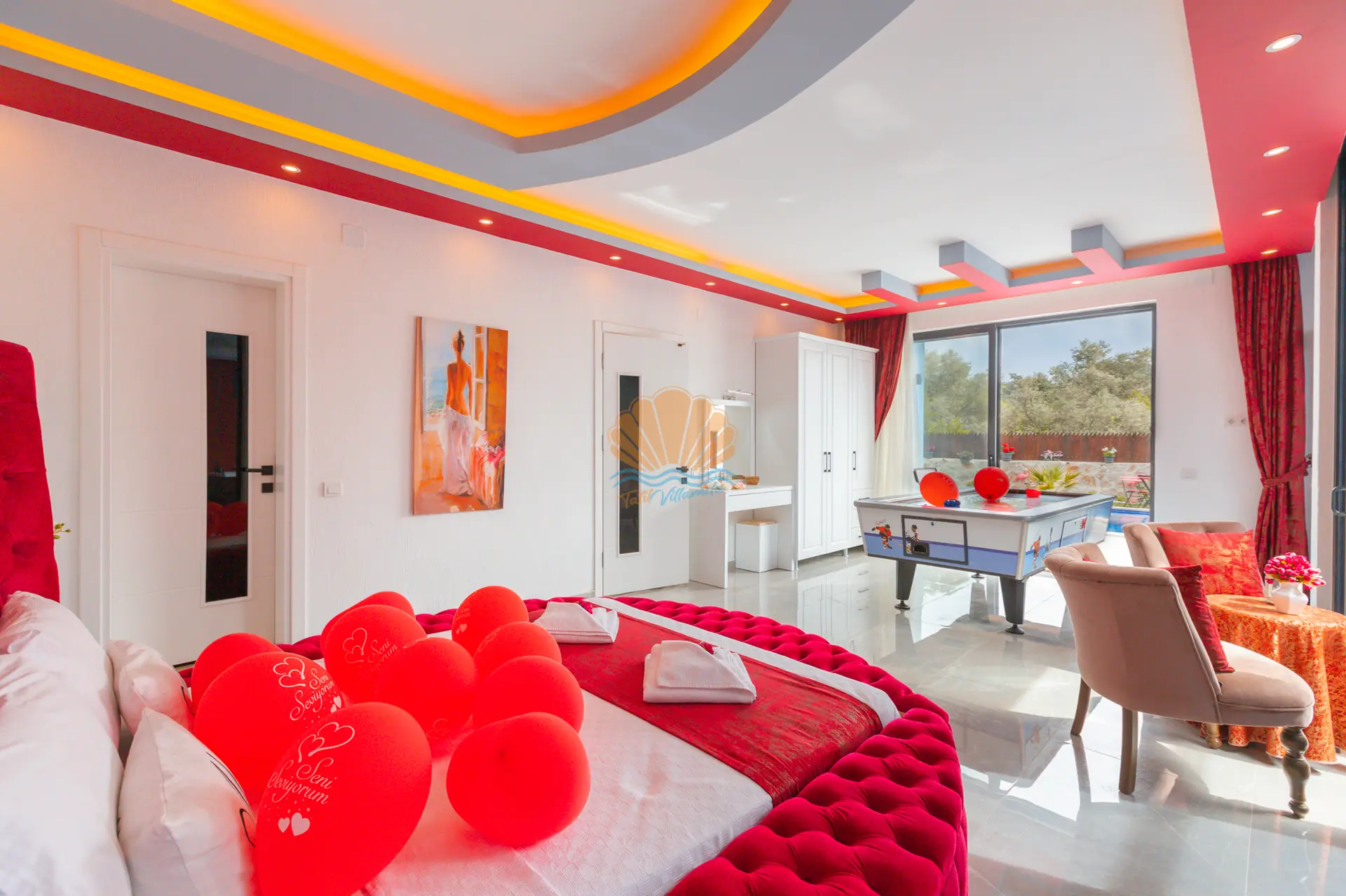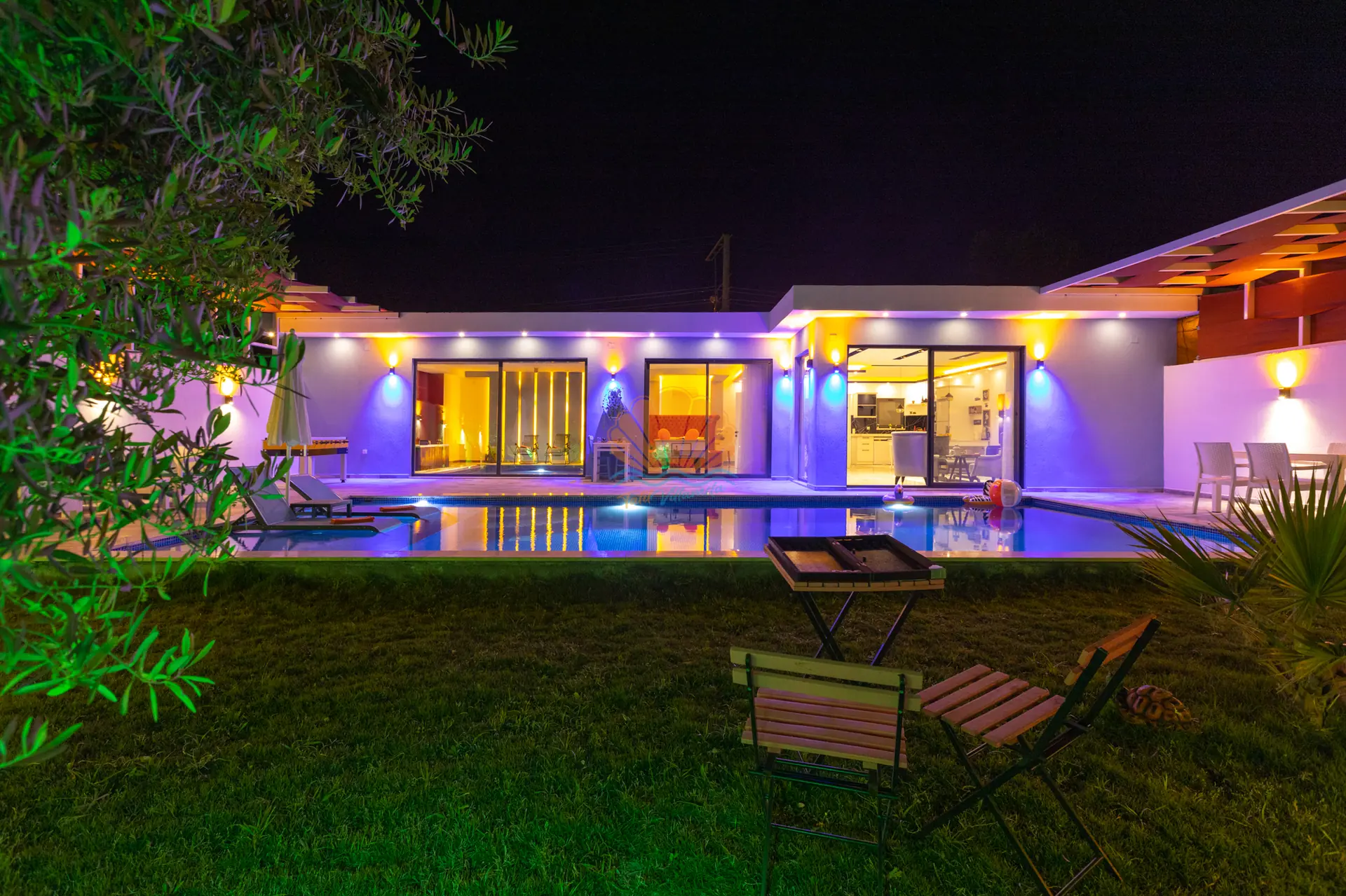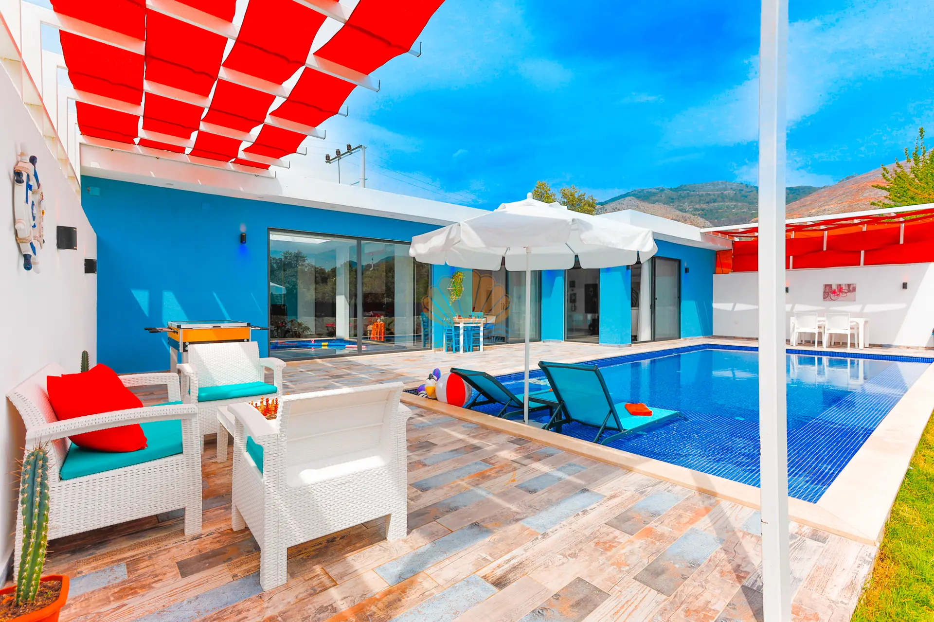 Villanın en dikkat çekici özelliklerinden biri geniş ve tamamen korunaklı özel yüzme havuzudur. Dış havuzun yanı sıra dört mevsim kullanıma uygun kapalı ve ısıtmalı iç havuz da bulunmaktadır. Bu sayede yaz-kış konforlu bir tatil deneyimi yaşanabilir. Ayrıca jakuzisi ile günün yorgunluğunu keyifle atabilir, romantik anlarınızı daha da özel hale getirebilirsiniz.