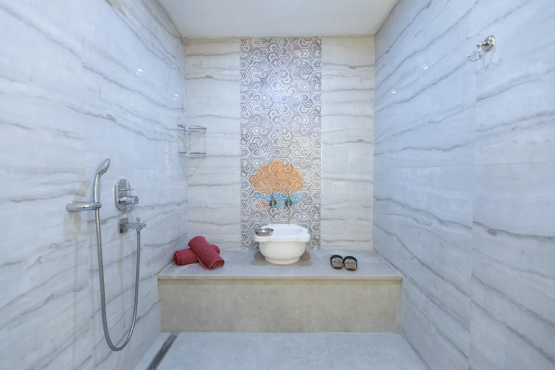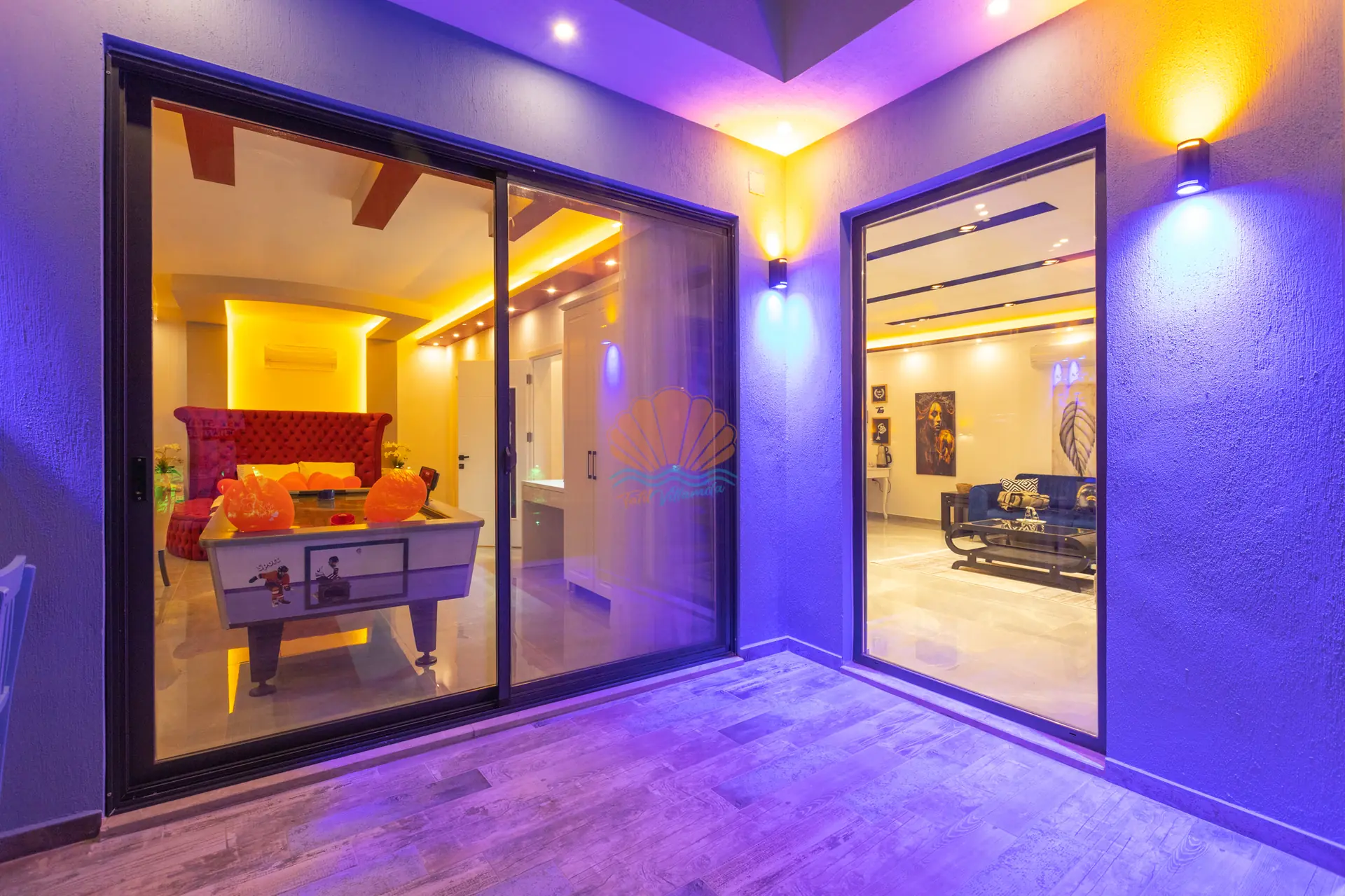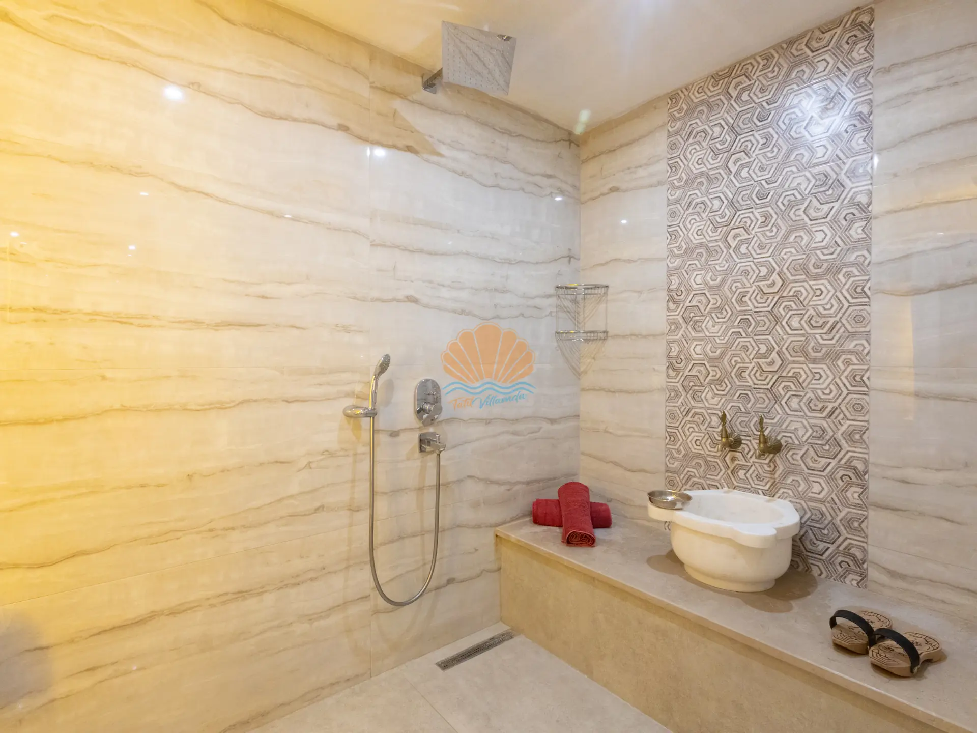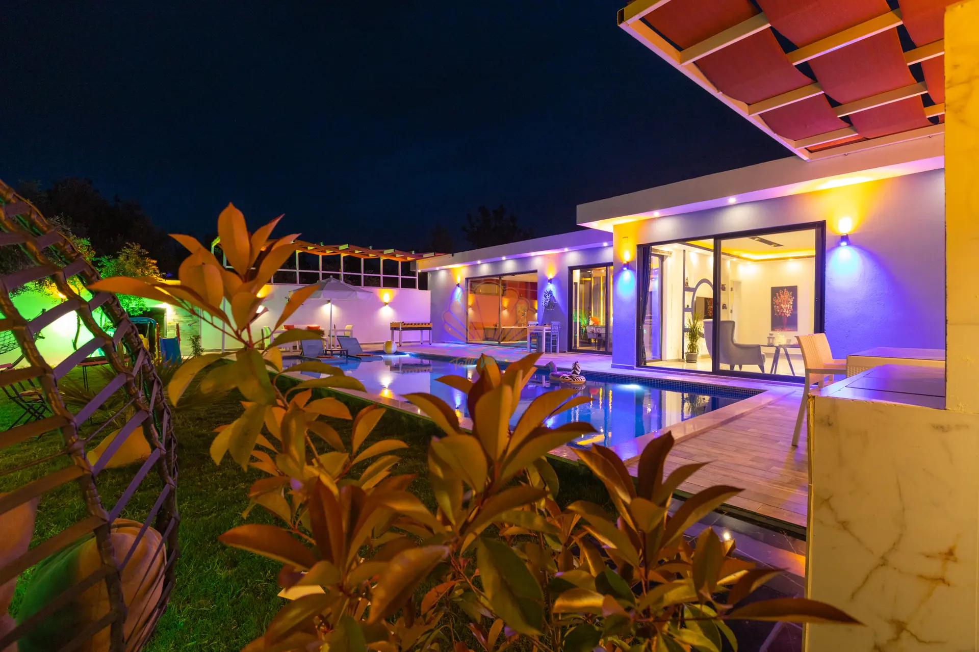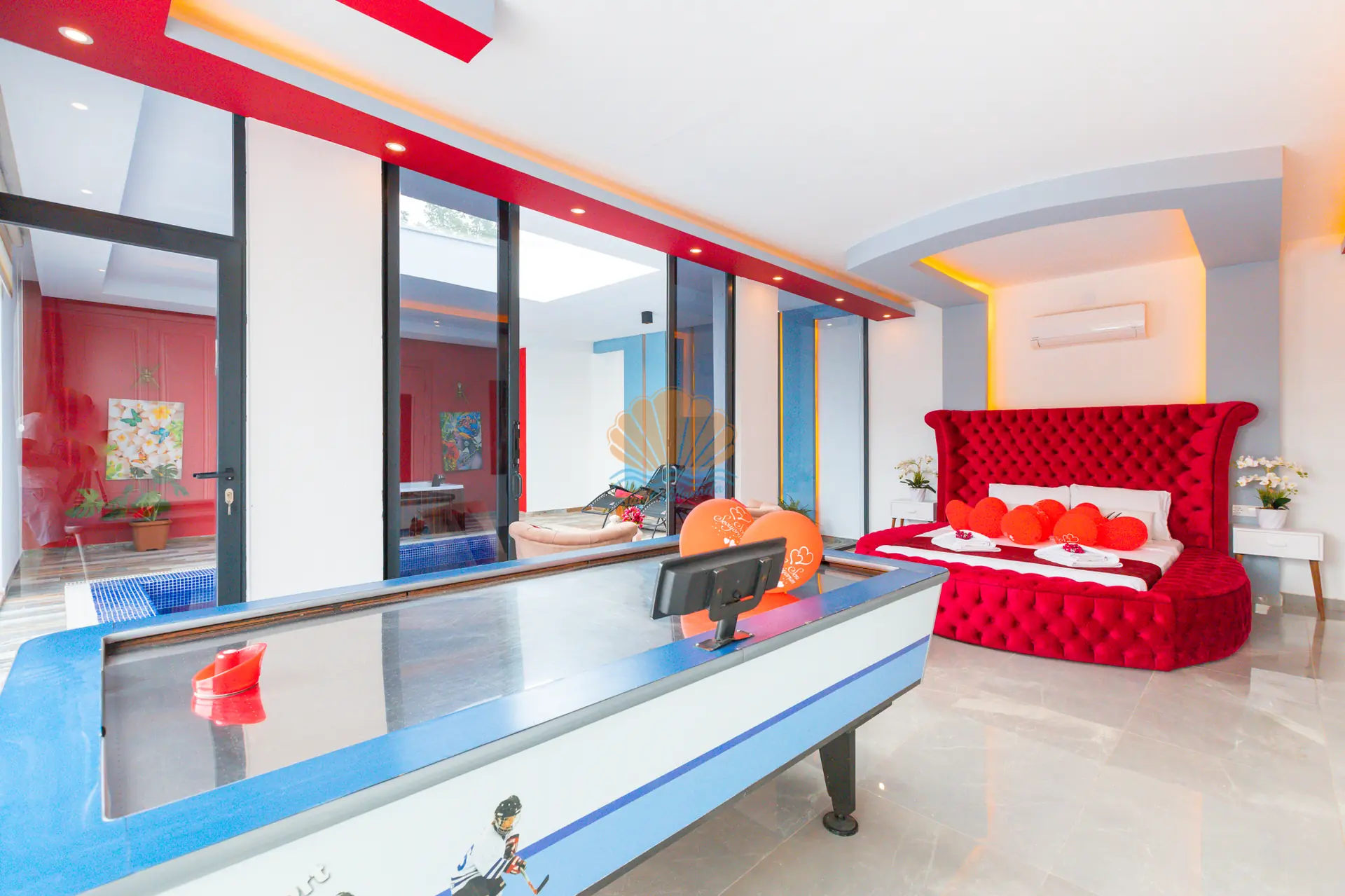 Villanın en dikkat çekici özelliklerinden biri geniş ve tamamen korunaklı özel yüzme havuzudur. Dış havuzun yanı sıra dört mevsim kullanıma uygun kapalı ve ısıtmalı iç havuz da bulunmaktadır. Bu sayede yaz-kış konforlu bir tatil deneyimi yaşanabilir. Ayrıca jakuzisi ile günün yorgunluğunu keyifle atabilir, romantik anlarınızı daha da özel hale getirebilirsiniz.