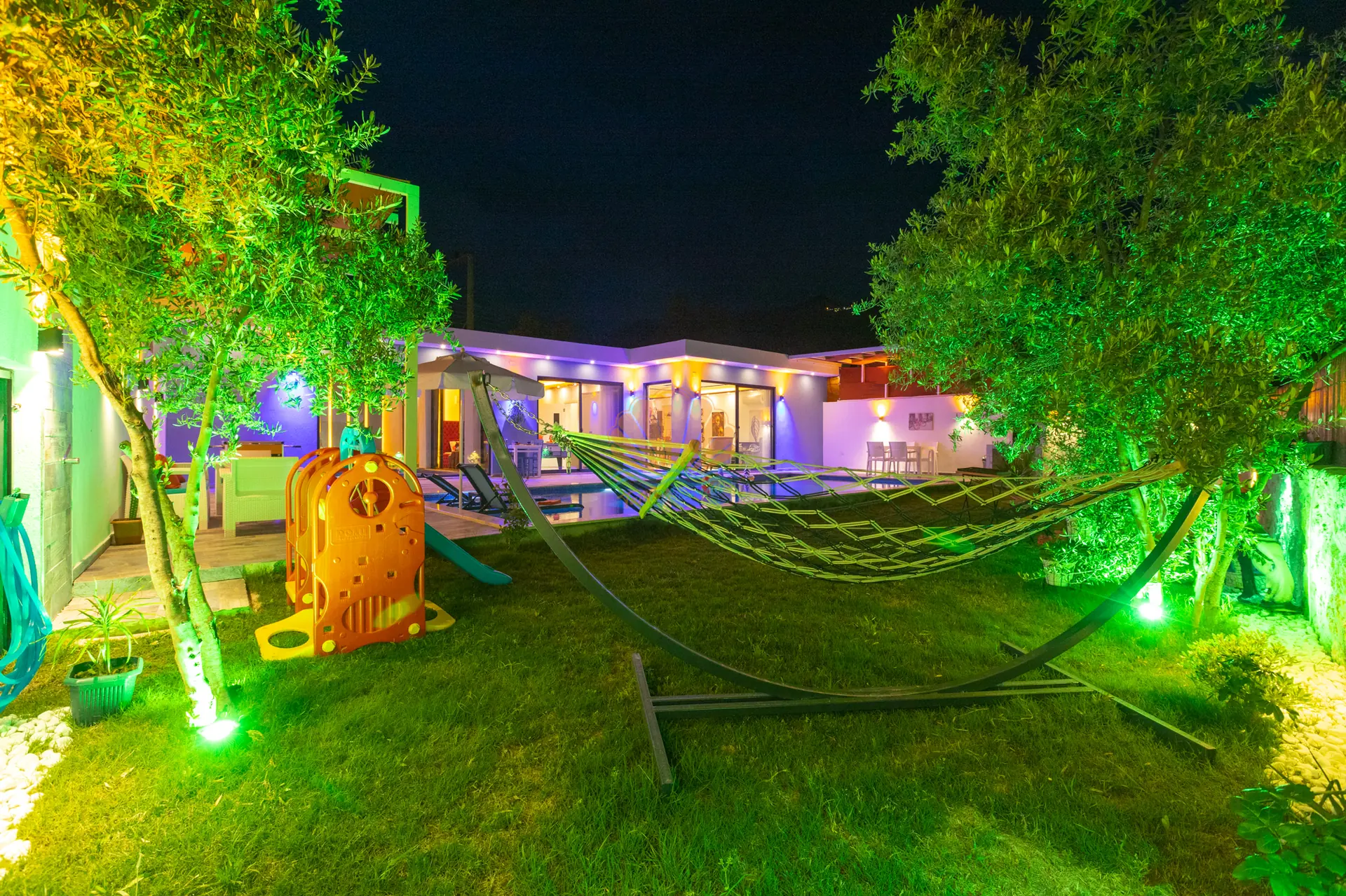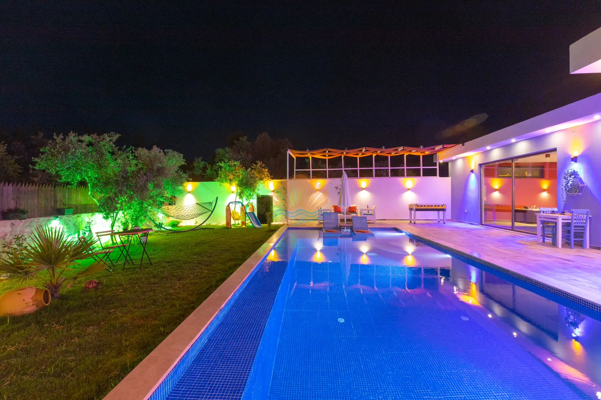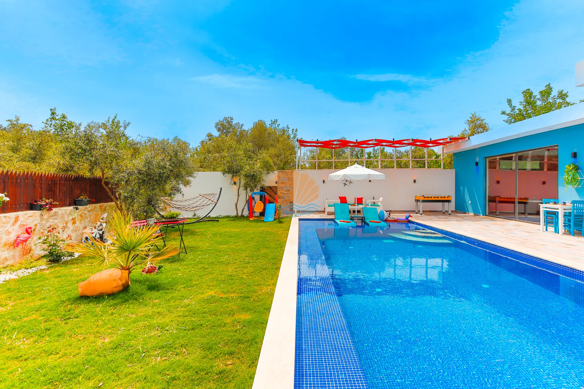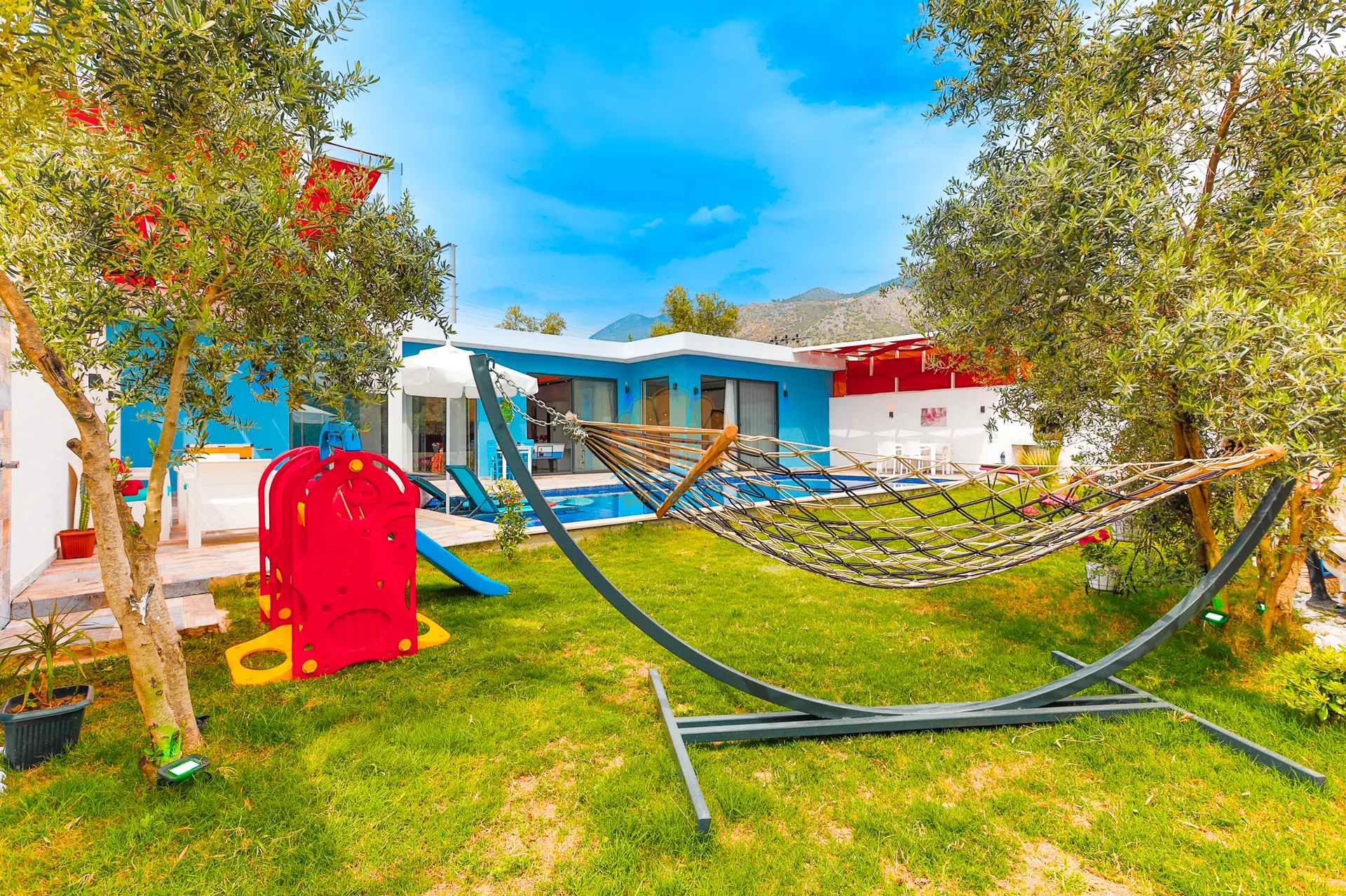 Villa Afil, sadece yetişkinlere değil, çocuklu ailelere de hitap eden detaylara sahiptir. Bahçesinde yer alan mini çocuk oyun parkı, küçük misafirlerin de keyifli zaman geçirmesini sağlar.