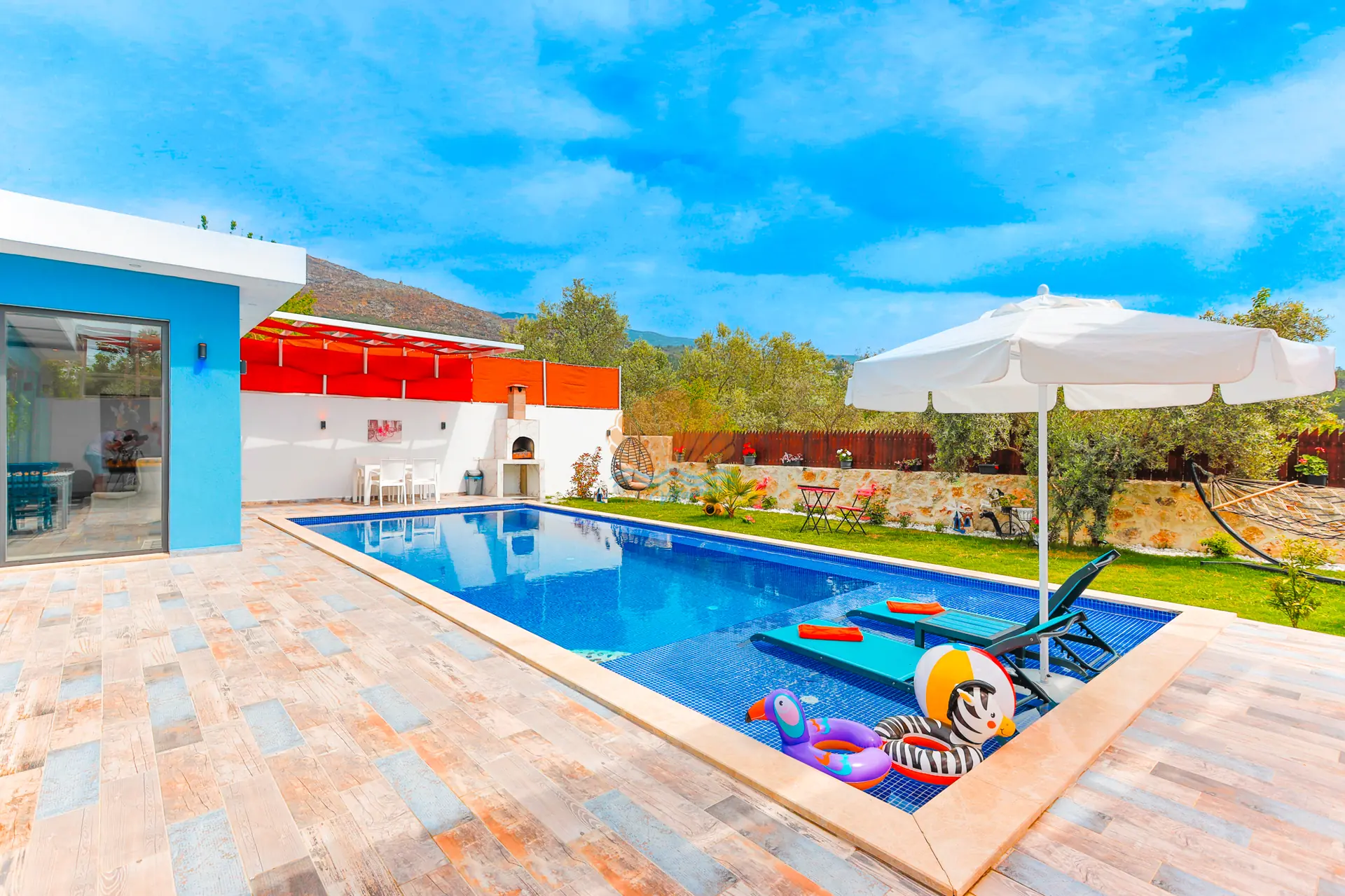 Kalkan’ın doğayla iç içe ve sakin bölgelerinden biri olan Üzümlü mevkiinde konumlanmış, balayı çiftlerine özel olarak tasarlanmış şık ve konforlu bir villadır. Tek yatak odalı ve 2 kişilik kapasitesiyle mahremiyet arayan misafirler için ideal olan villa, korunaklı yapısı sayesinde gözlerden uzak, huzurlu bir tatil imkânı sunar.