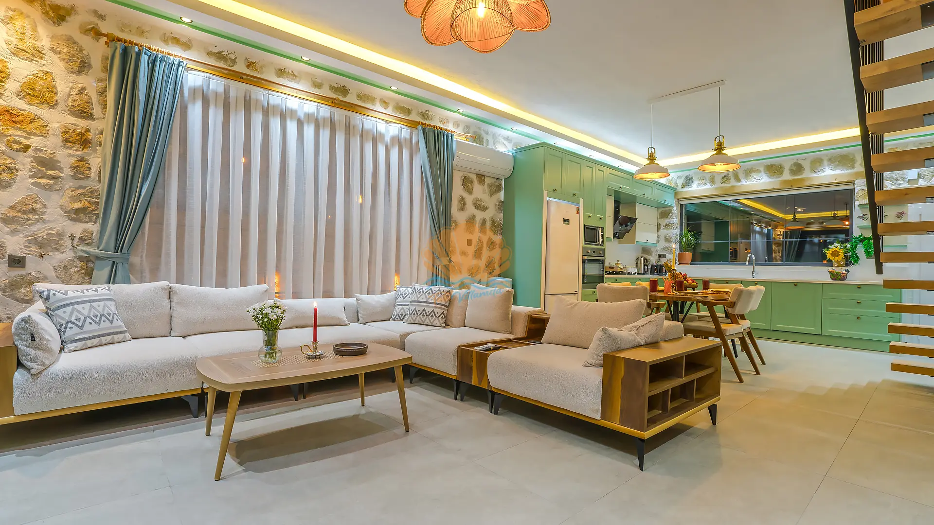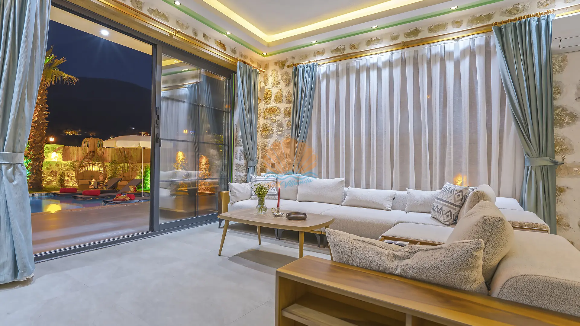 Kalkan’ın doğayla iç içe ve huzur dolu Üzümlü mevkiinde konumlanan, konfor ve lüksü bir arada sunan özel bir tatil villasıdır. Korunaklı yapısı sayesinde gözlerden uzak, tamamen size ait bir tatil deneyimi sunan villa; özellikle balayı çiftleri ve çekirdek aileler için ideal bir seçenektir.