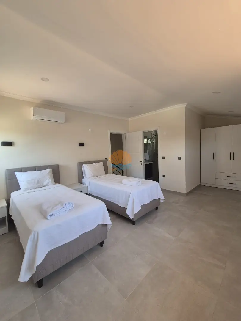 Toplamda 4 yatak odasına sahip olan villa, 8 kişilik konaklama kapasitesiyle kalabalık aileler ve arkadaş grupları için ideal bir seçenektir. Tüm odaların ebeveyn banyolu olması, misafirlere ekstra konfor ve mahremiyet sunar. Ayrıca villada bulunan jakuzi, günün yorgunluğunu atabileceğiniz keyifli bir alan yaratır.