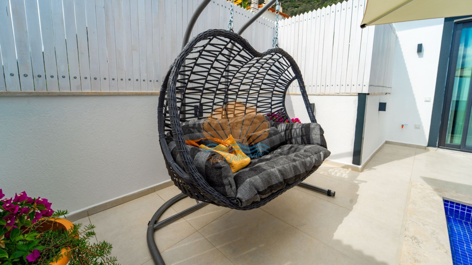 Geniş ve korunaklı özel havuzu, dışarıdan görünmeyen yapısıyla özellikle muhafazakâr aileler ve sakinlik arayan misafirler için ideal bir ortam sunar. Havuz terasında yer alan şezlonglar, şemsiye, salıncak, konforlu oturma grubu ve masa takımı; hem dinlenme hem de keyifli vakit geçirme alanı olarak düşünülmüştür. Gün boyu güneşin ve manzaranın tadını çıkarabilir, akşam saatlerinde ise sevdiklerinizle huzurlu anlar yaşayabilirsiniz.