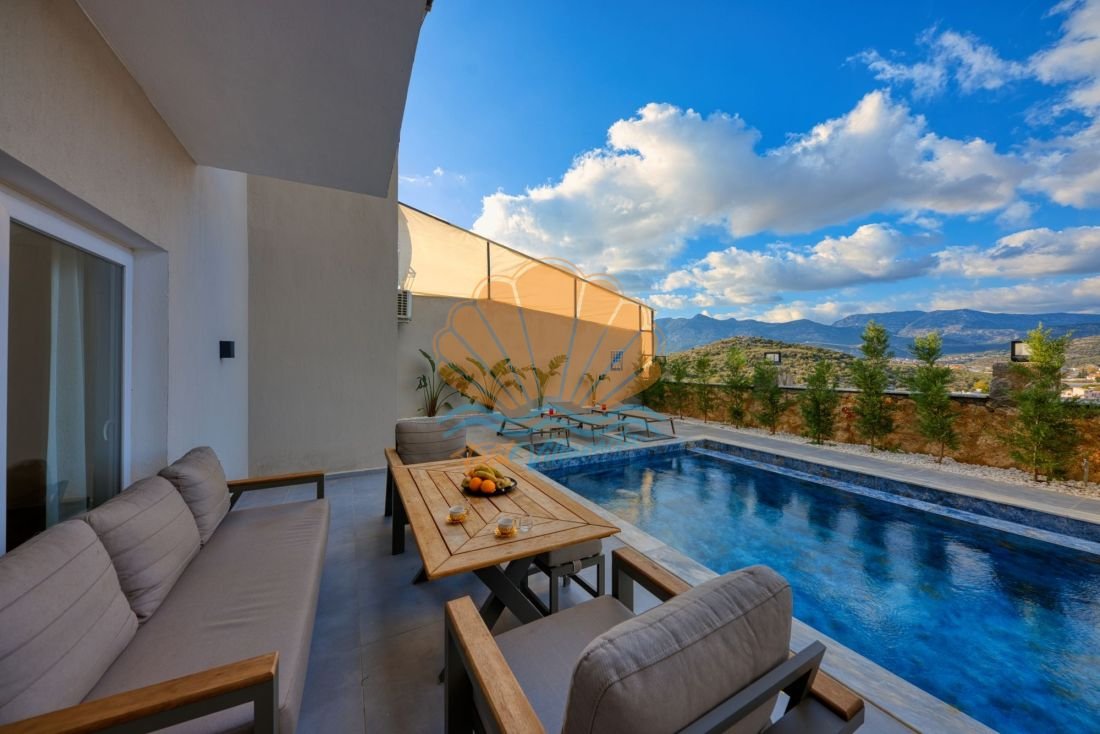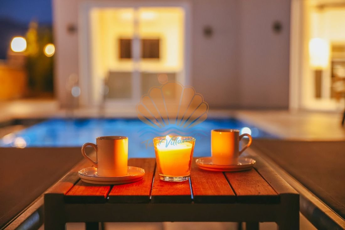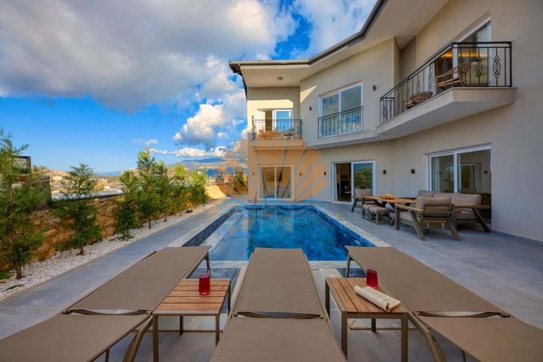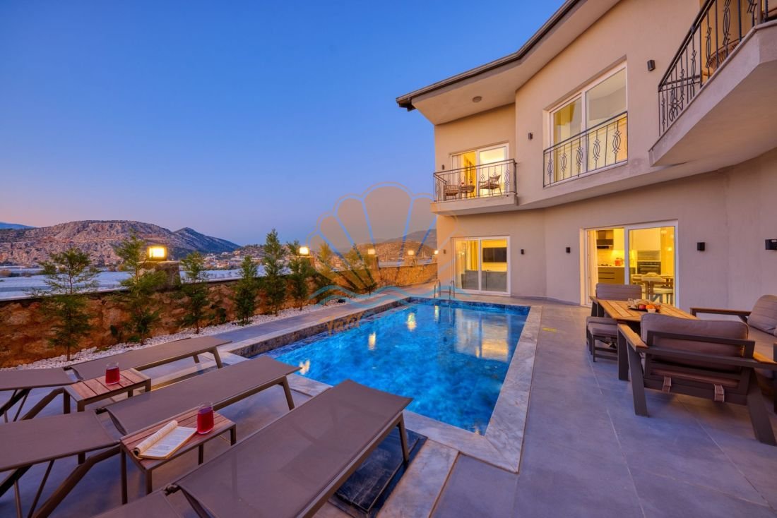 Villanın bahçe ve havuz terası bölümünde şezlonglar, oturma alanları ve keyifli zaman geçirebileceğiniz donatılar yer alır. Özel yüzme havuzu sayesinde gün boyu serinleyebilir, sevdiklerinizle birlikte size ait bir alanda tatilin tadını çıkarabilirsiniz. Doğa manzarası eşliğinde huzurlu sabah kahvaltıları ve akşam yemekleri için uygun bir atmosfer sunar.