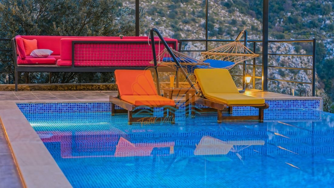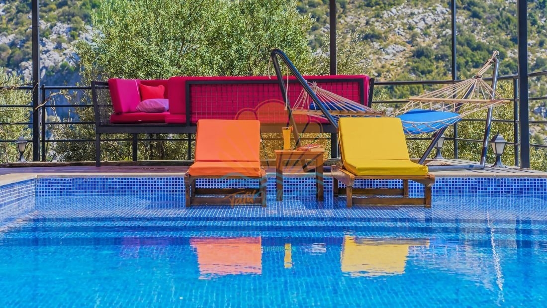 Geniş ve korunaklı özel yüzme havuzu, doğa ve deniz manzarasına karşı keyifli vakit geçirmenizi sağlar. Havuz başında şezlonglar, şemsiye, çardak, salıncak ve barbekü alanı bulunmaktadır. Sevdiklerinizle açık havada yemeklerinizi hazırlayabilir, gün batımında panoramik manzara eşliğinde unutulmaz akşamlar yaşayabilirsiniz.
