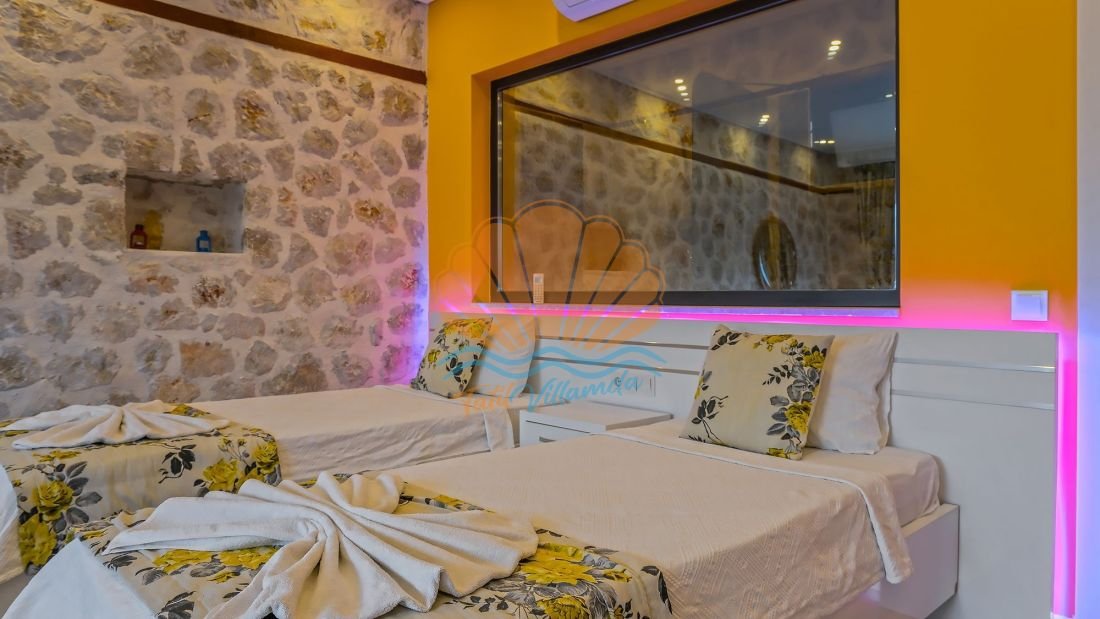 2 yatak odalı ve 4 kişi konaklama kapasitesine sahip olan Villa Aras 2 Taş, çekirdek aileler ve arkadaş grupları için konforlu bir tatil alternatifi oluşturur. Yatak odalarından birinde bulunan jakuzi, tatilinize ekstra konfor ve romantik bir atmosfer katar. Modern ve şık taş mimarisiyle dikkat çeken villa, hem estetik hem de fonksiyonel bir tasarıma sahiptir.