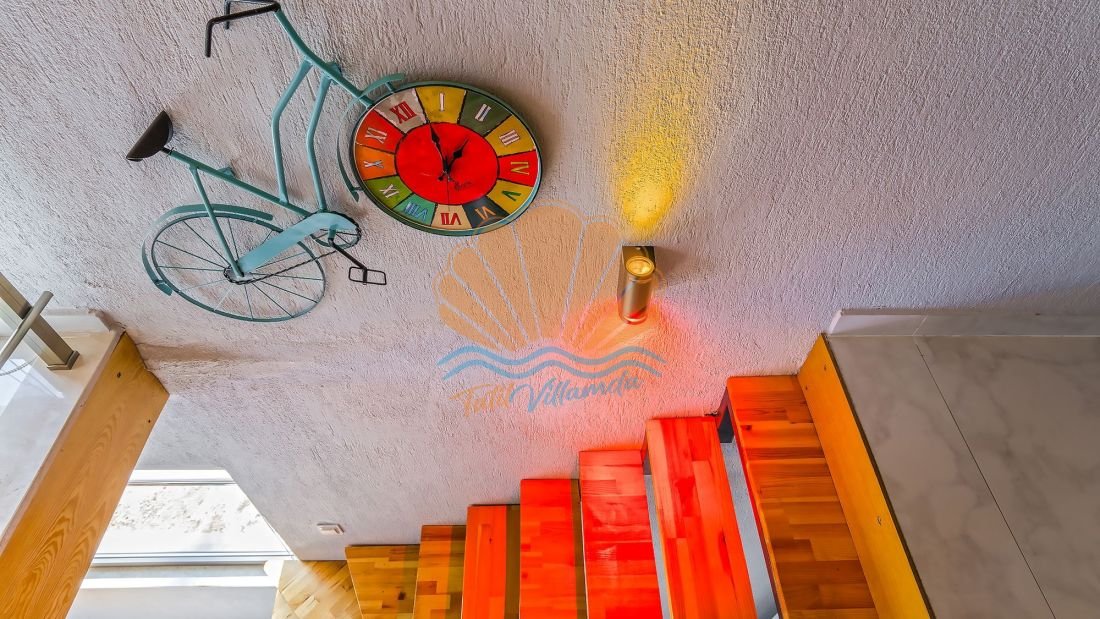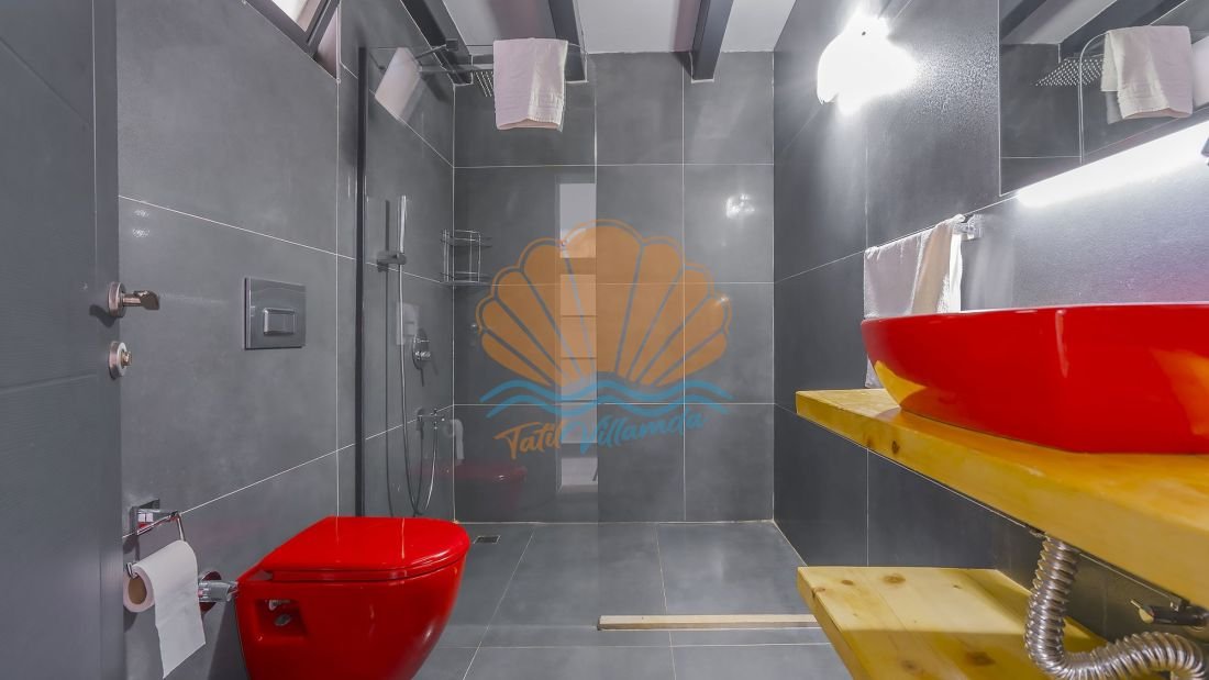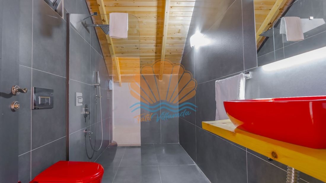 Villaya ulaşım sağlarken 45 adet basamak bulunmaktadır. Bu özelliği sayesinde yüksek konumda yer alan villa, ferah bir atmosfer ve güzel bir manzara avantajı sunmaktadır.