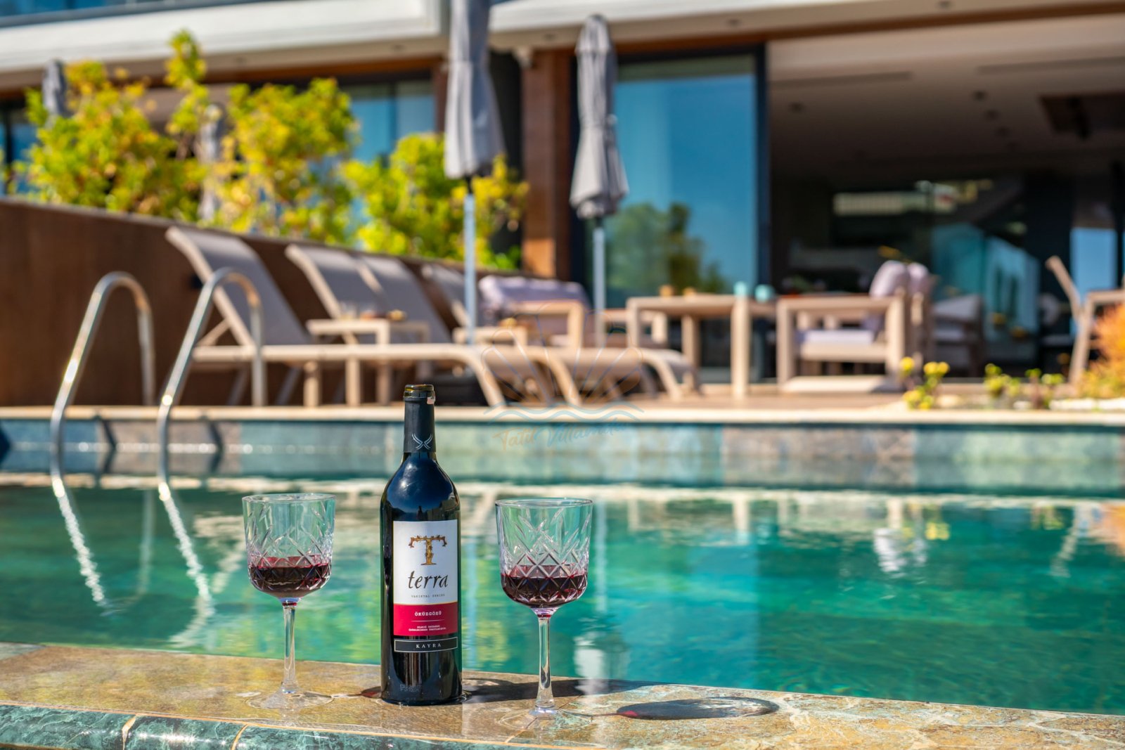 Villanın en dikkat çekici özelliklerinden biri özel ve geniş yüzme havuzudur. Deniz manzarasına karşı konumlanan havuz alanı, gün boyu güneşlenmek ve serinlemek isteyen misafirler için ideal bir ortam sağlar. Havuz başında yer alan şezlonglar ve şemsiye, konforlu bir güneşlenme alanı oluştururken; bahçe oturma grubu ve masa takımı sevdiklerinizle keyifli vakit geçirmenize olanak tanır. Barbekü alanı ise akşam saatlerinde manzaraya karşı lezzetli sofralar kurmak isteyenler için düşünülmüştür.