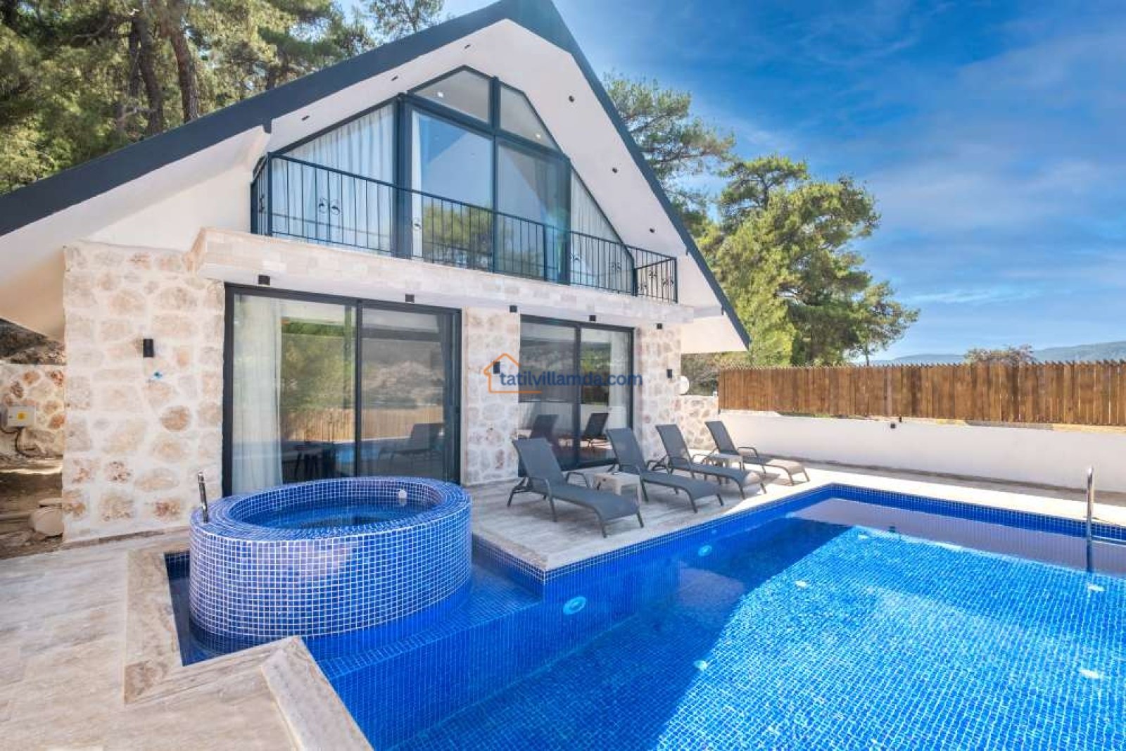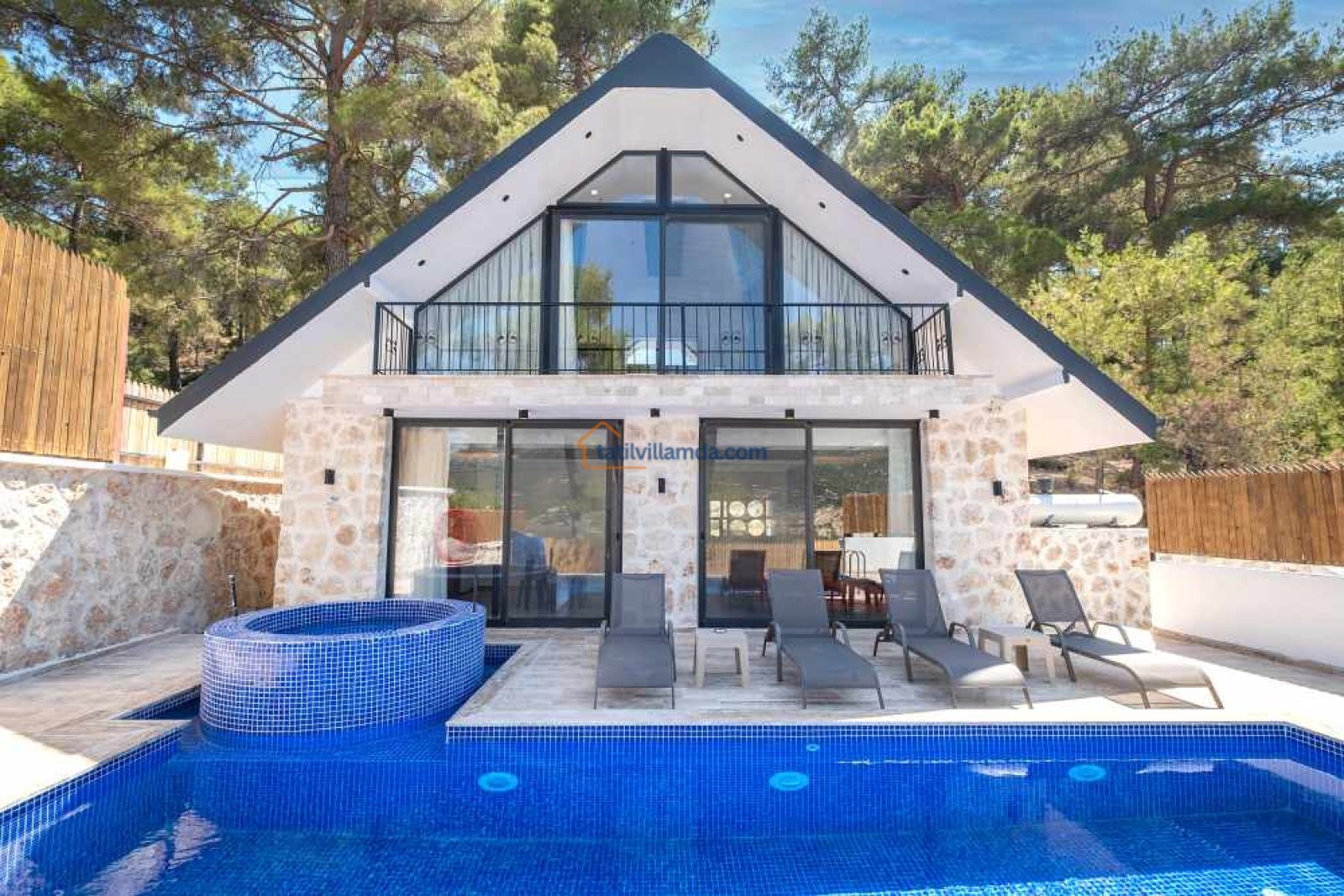 Havuz başında barbekü alanı, şezlonglar ve keyifli bir salıncak yer alır. Villanın iç mekanı modern ve şık bir tasarıma sahiptir ve 4 kişilik konaklama kapasitesi sunar. Ebeveyn yatak odasında rahatlamanızı sağlayacak özel bir jakuzi de mevcuttur.