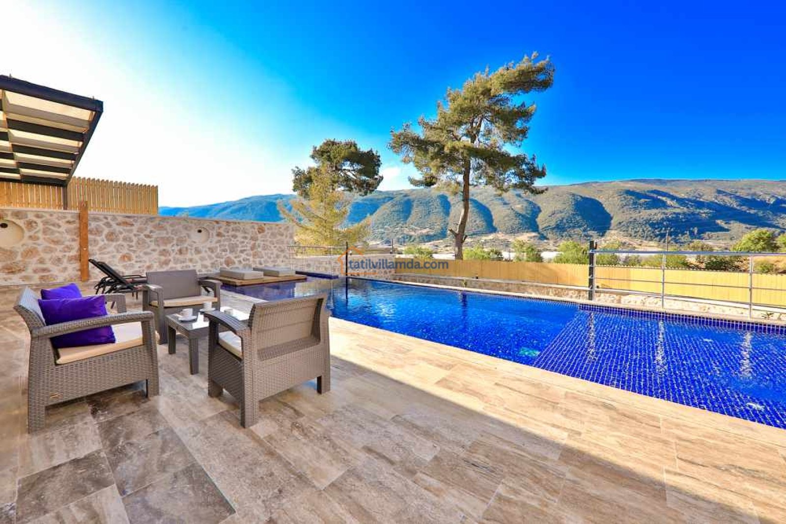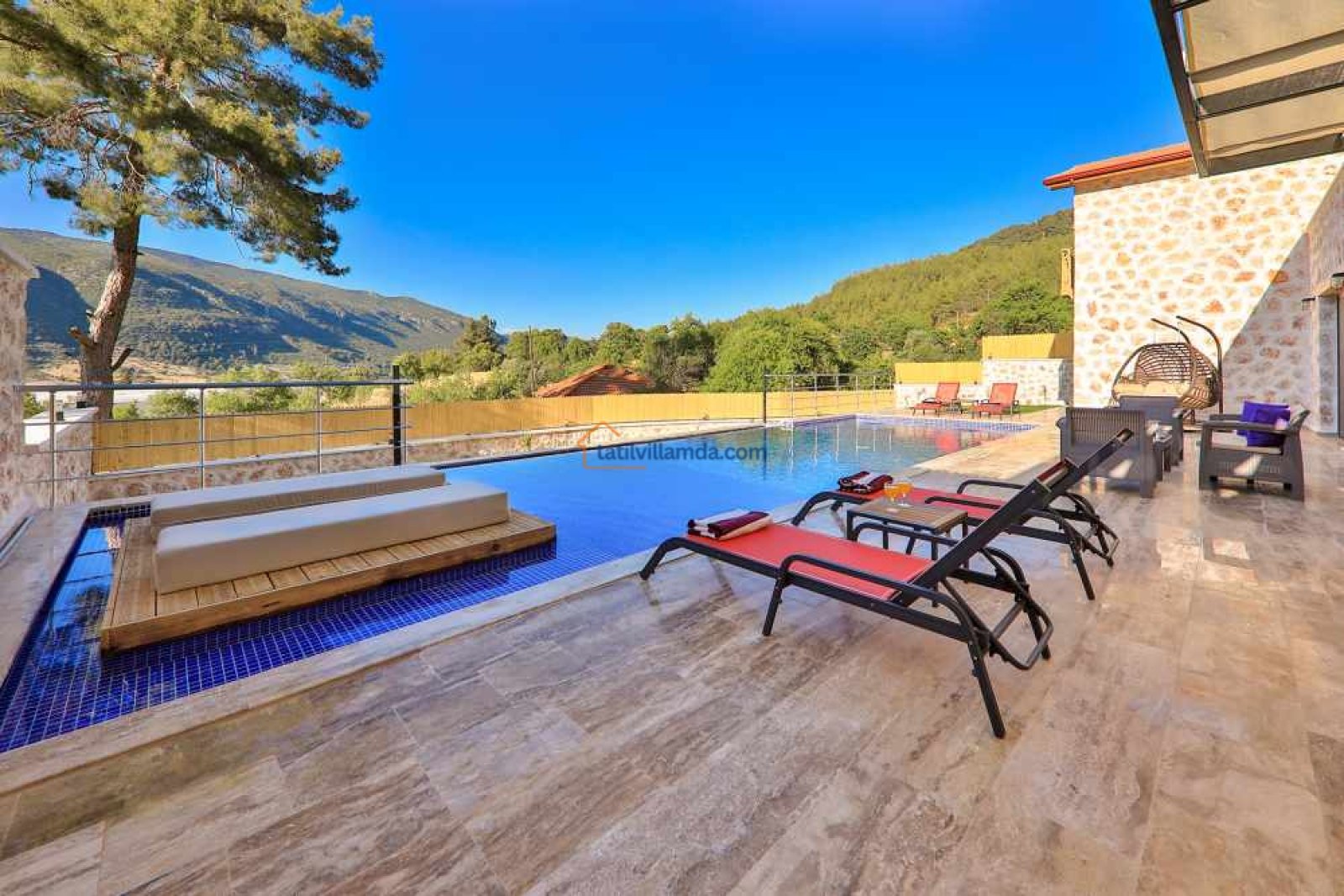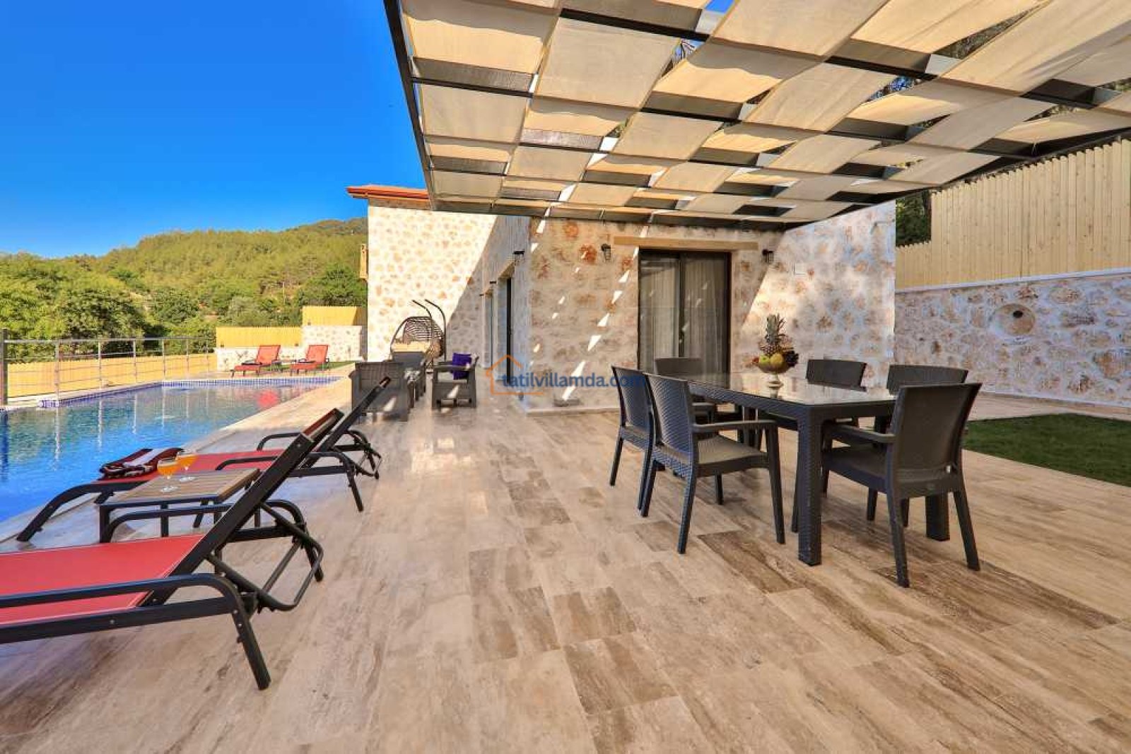 Villa Aydoğdu, Kalkan’ın Sarıbelen bölgesinde yer alan, doğayla iç içe huzurlu bir tatil sunan lüks bir villadır. Geniş ve korunaklı yüzme havuzuyla özellikle muhafazakâr aileler ve balayı çiftleri için ideal bir konaklama imkânı sağlar. Villanın ferah bahçesi, konforlu oturma grupları ve keyifli dinlenme alanları ile tatilinizi daha da özel kılar.