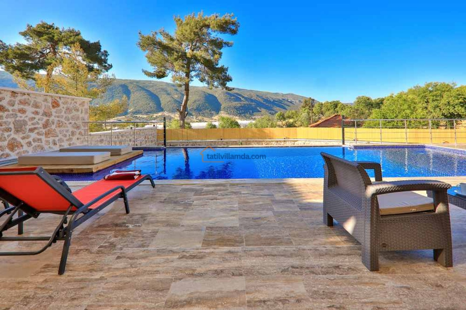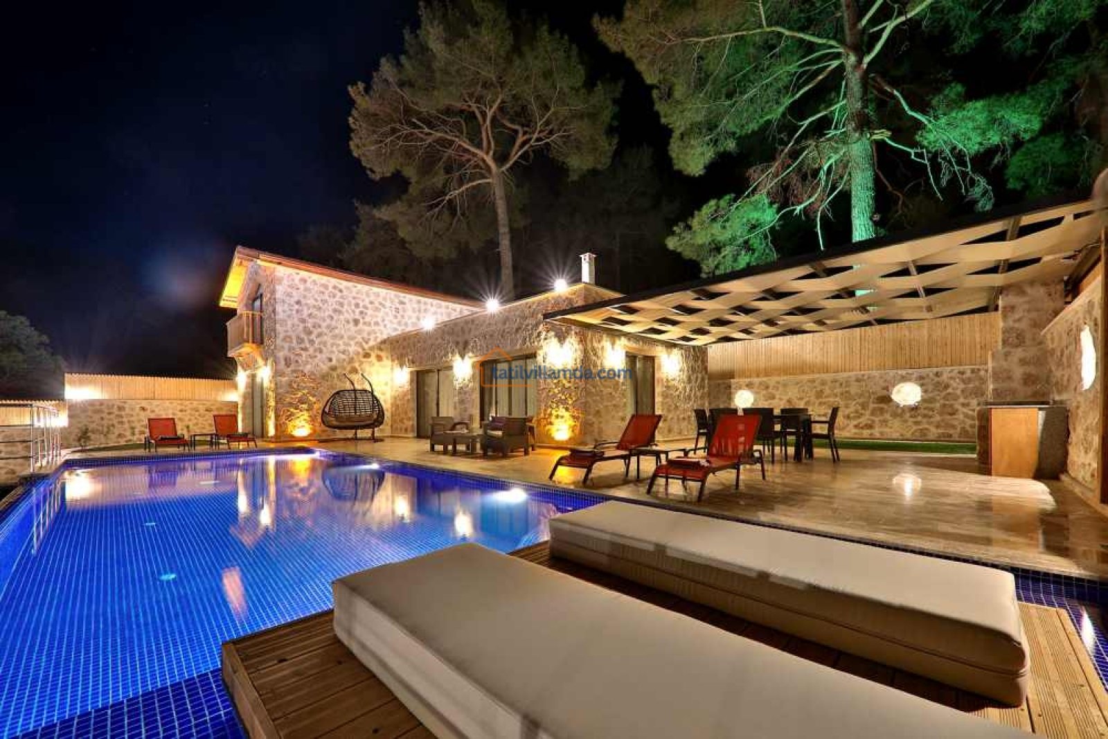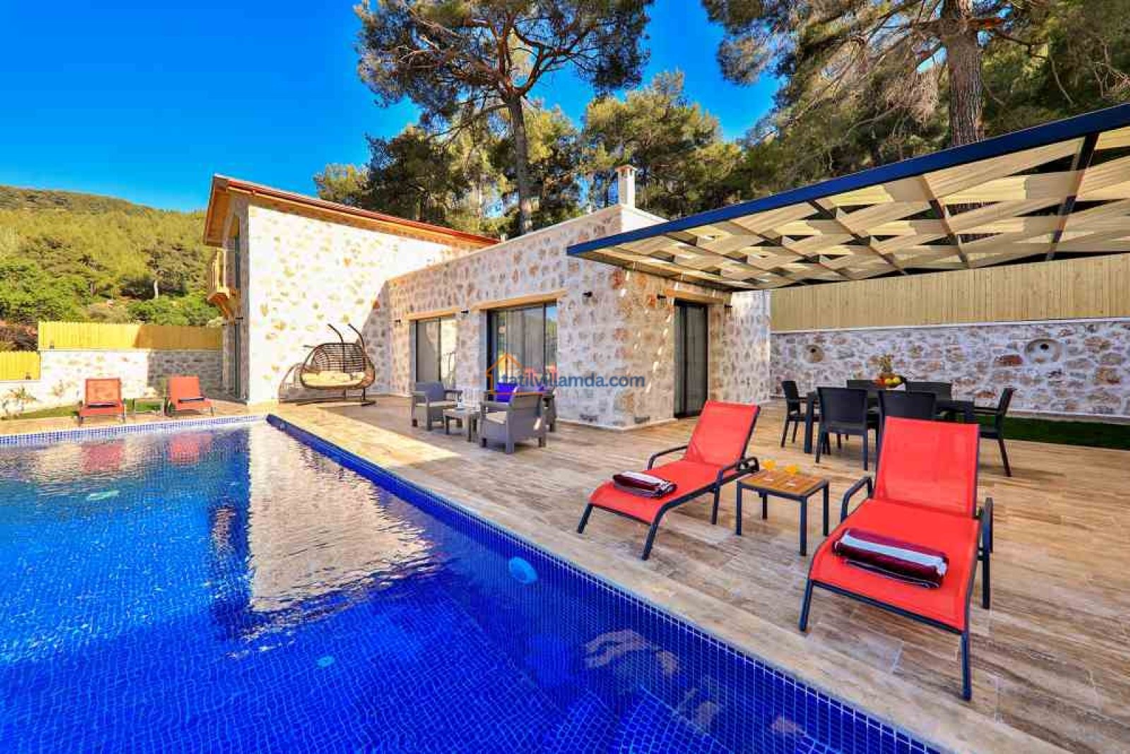 Villa Aydoğdu, Kalkan’ın Sarıbelen bölgesinde yer alan, doğayla iç içe huzurlu bir tatil sunan lüks bir villadır. Geniş ve korunaklı yüzme havuzuyla özellikle muhafazakâr aileler ve balayı çiftleri için ideal bir konaklama imkânı sağlar. Villanın ferah bahçesi, konforlu oturma grupları ve keyifli dinlenme alanları ile tatilinizi daha da özel kılar.