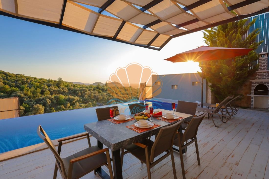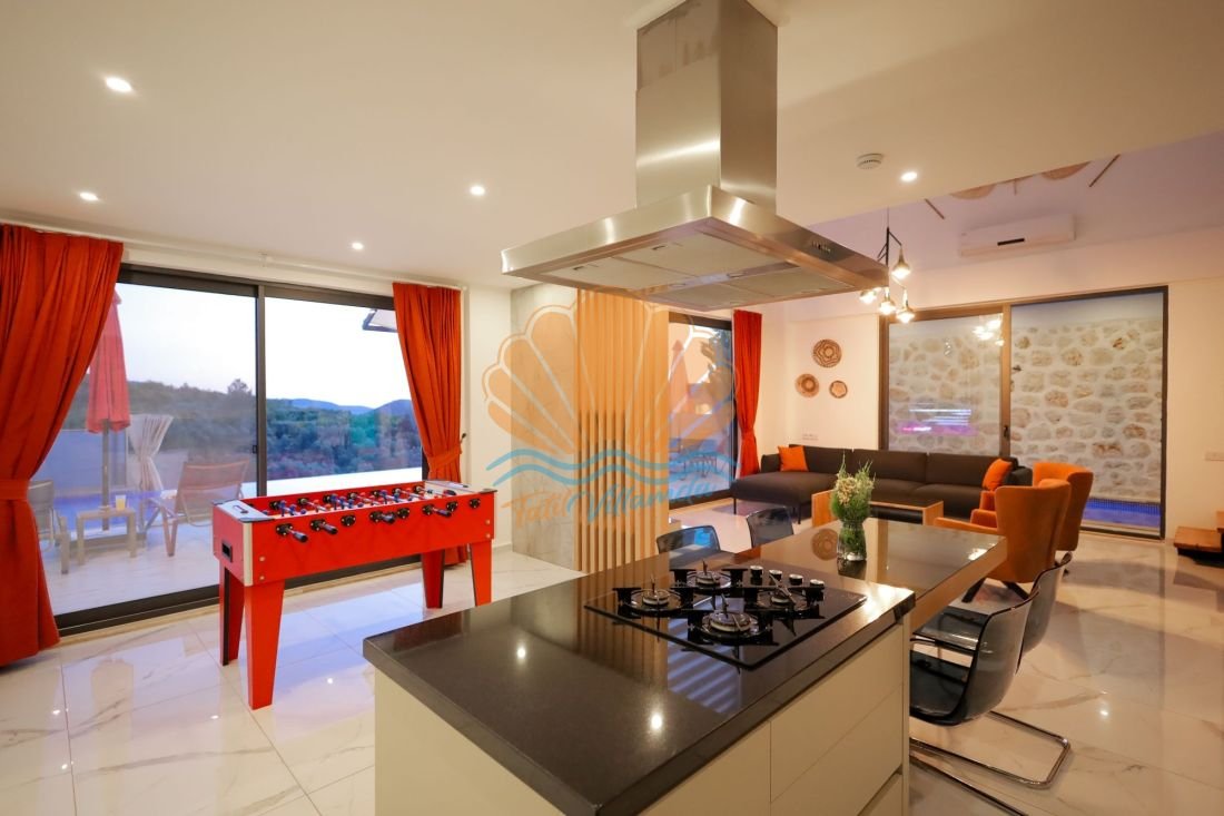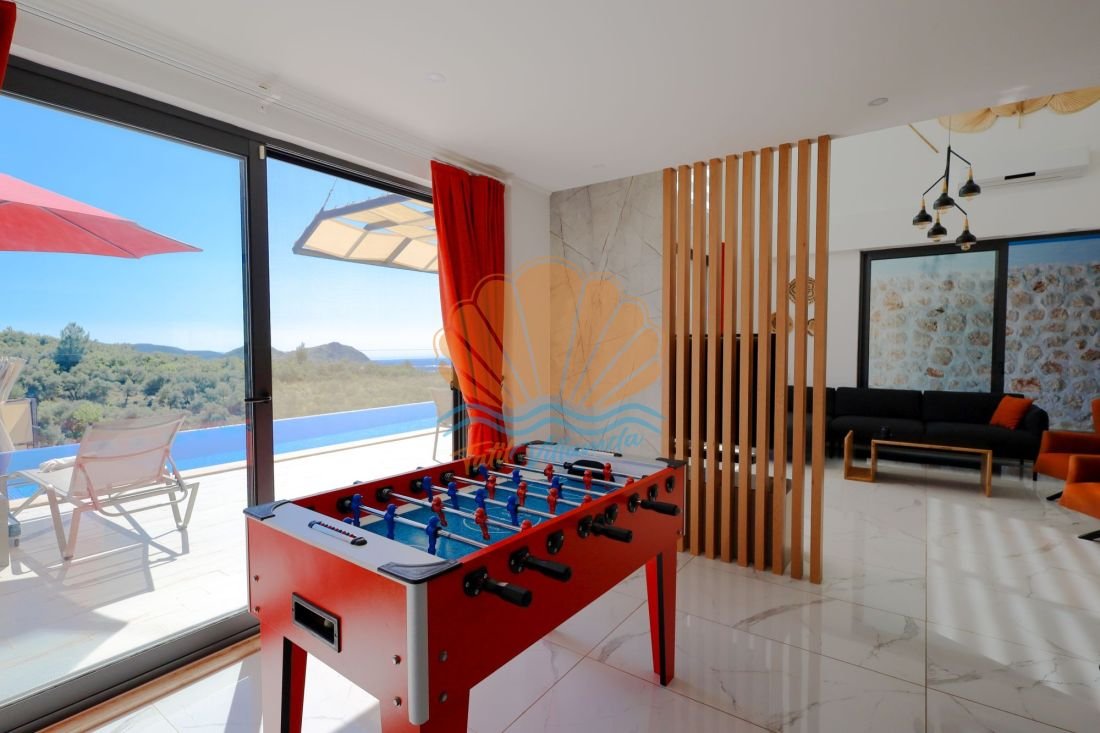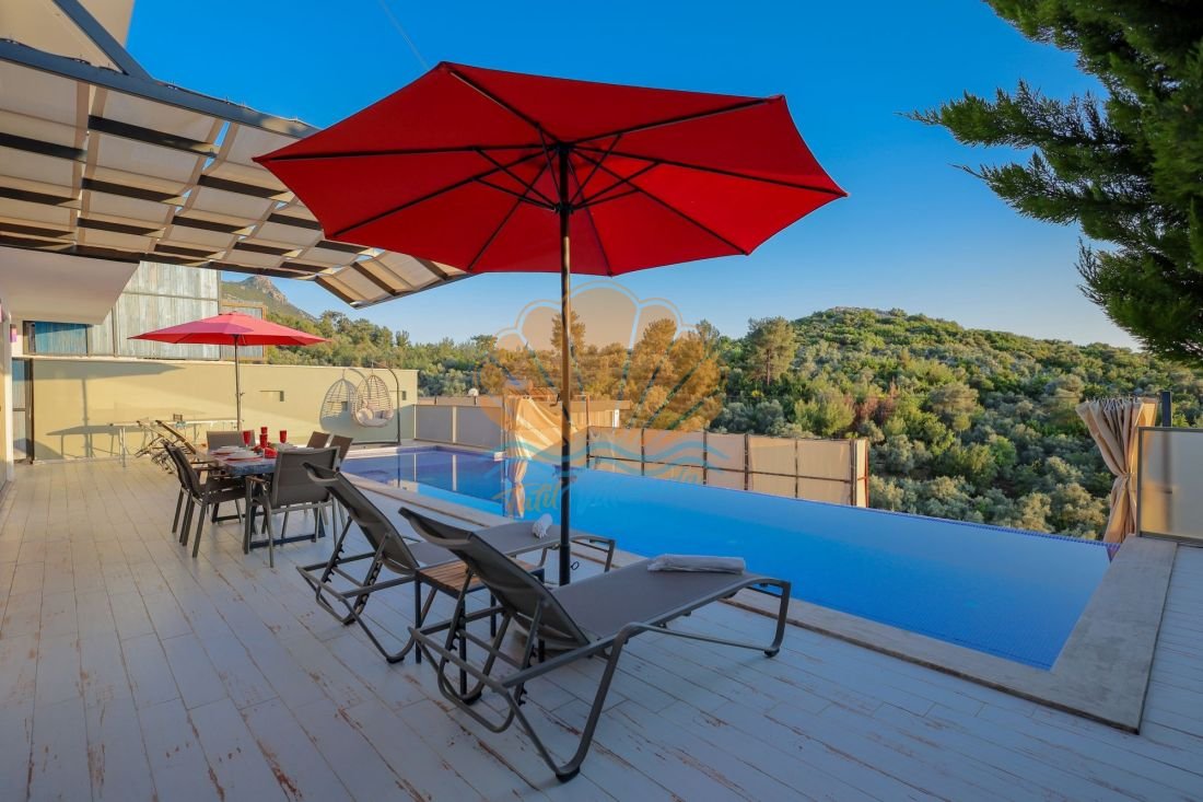 Villanın geniş havuz terasında şezlonglar, şemsiye, yemek masası ve oturma alanı bulunmaktadır. Gün boyu güneşin ve manzaranın tadını çıkarabilir, akşam saatlerinde barbekü keyfi yapabilirsiniz. Salıncak alanı hem dinlenmek hem de keyifli vakit geçirmek için güzel bir detay sunar. Ayrıca langırt masası sayesinde ailenizle veya arkadaşlarınızla eğlenceli anlar yaşayabilirsiniz.