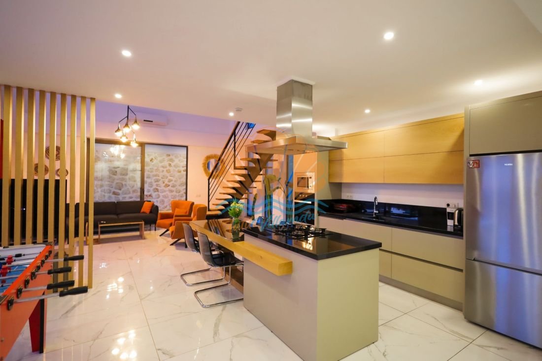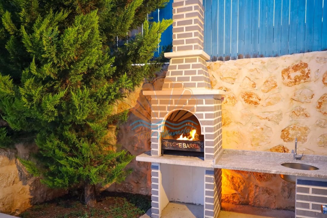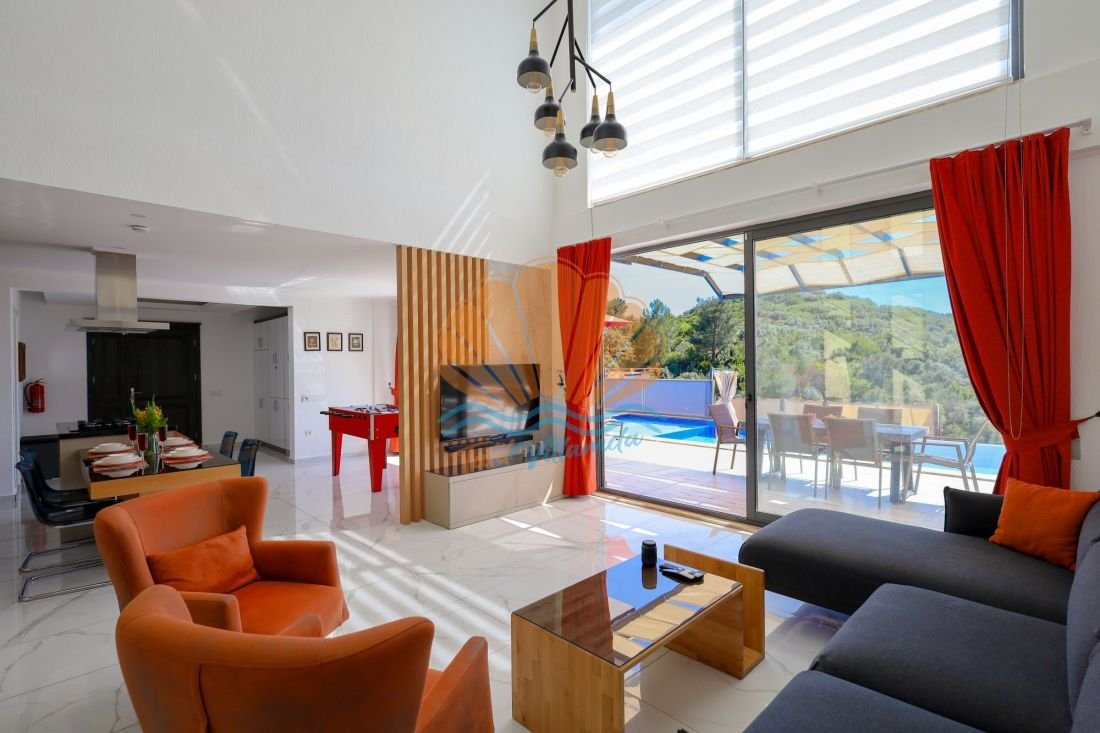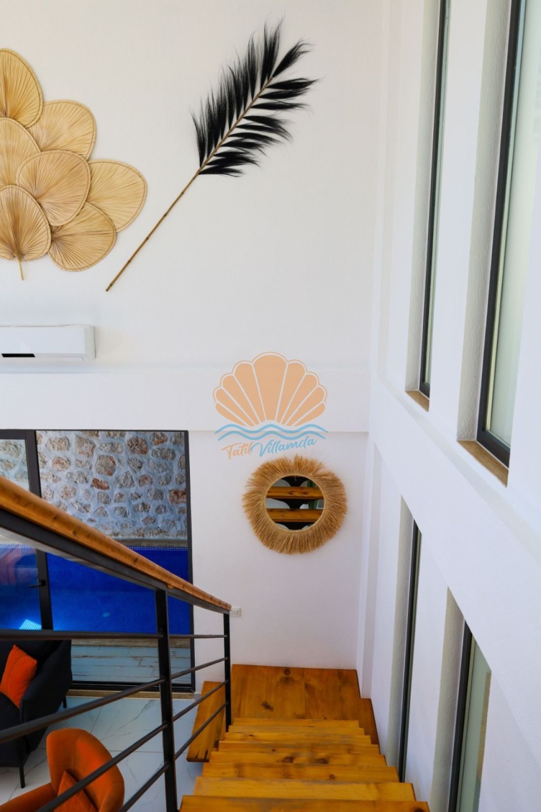 Villanın geniş havuz terasında şezlonglar, şemsiye, yemek masası ve oturma alanı bulunmaktadır. Gün boyu güneşin ve manzaranın tadını çıkarabilir, akşam saatlerinde barbekü keyfi yapabilirsiniz. Salıncak alanı hem dinlenmek hem de keyifli vakit geçirmek için güzel bir detay sunar. Ayrıca langırt masası sayesinde ailenizle veya arkadaşlarınızla eğlenceli anlar yaşayabilirsiniz.