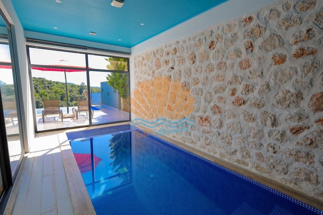 Bahçe kısmında yer alan mini çocuk oyun parkı, çocuklu aileler için büyük bir avantaj sağlar. Minikler güvenli bir şekilde vakit geçirirken siz de tatilin tadını çıkarabilirsiniz. Villada bulunan ısıtmalı kapalı iç havuz ise dört mevsim konforlu bir tatil imkânı sunar ve özellikle serin dönemlerde ekstra avantaj sağlar.