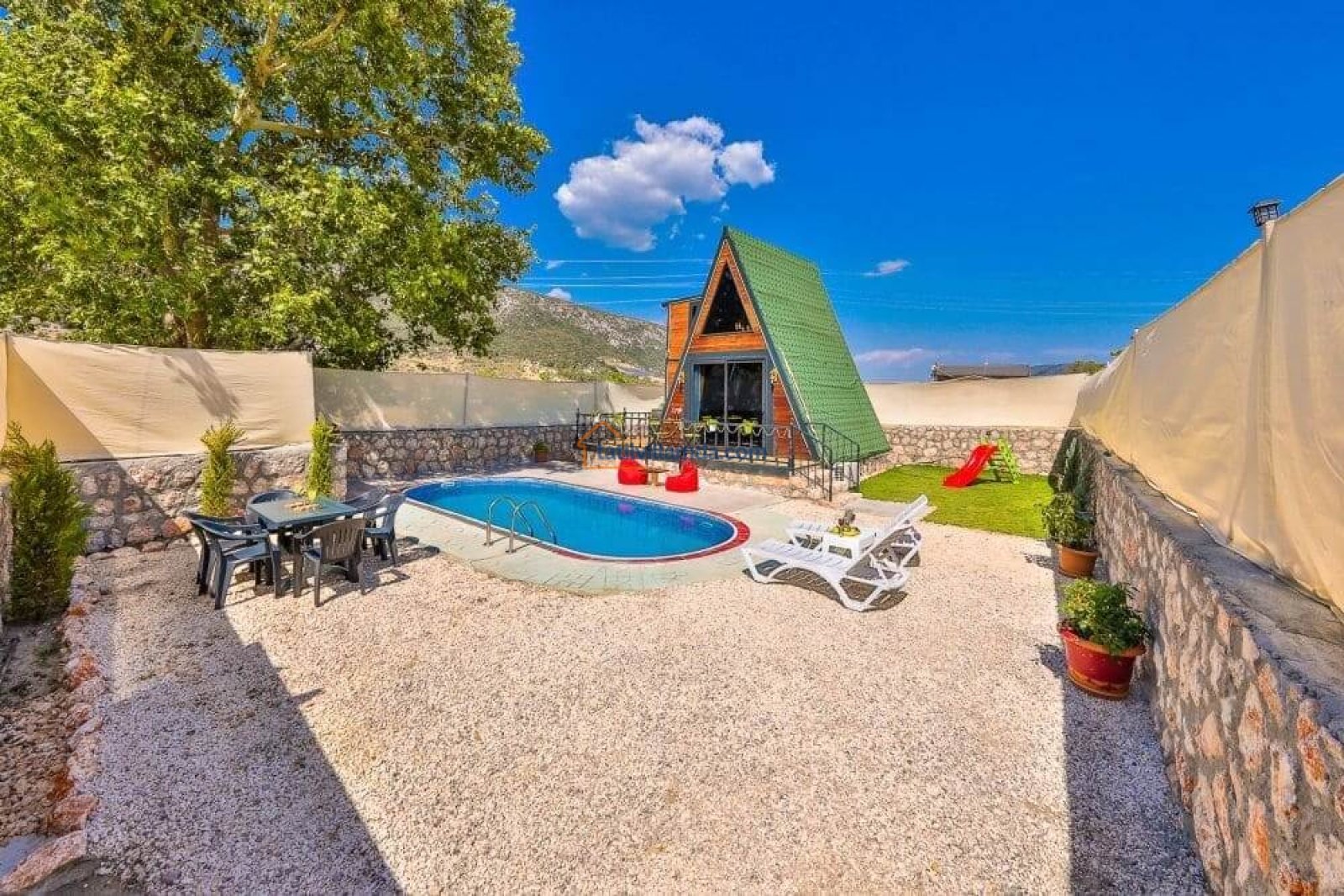 Villa Bir İnci, Kalkan'ın huzur dolu Sarıbelen mevkiinde yer alan, doğayla iç içe, keyifli bir tatil için ideal bir bungalovdur. Korunaklı havuzu sayesinde misafirlerine tam bir mahremiyet sunar. Geniş bahçesi, yeşillikler arasında dinlenmek, sevdiklerinizle keyifli anlar yaşamak ve çocuklar için güvenli bir oyun alanı sağlar.