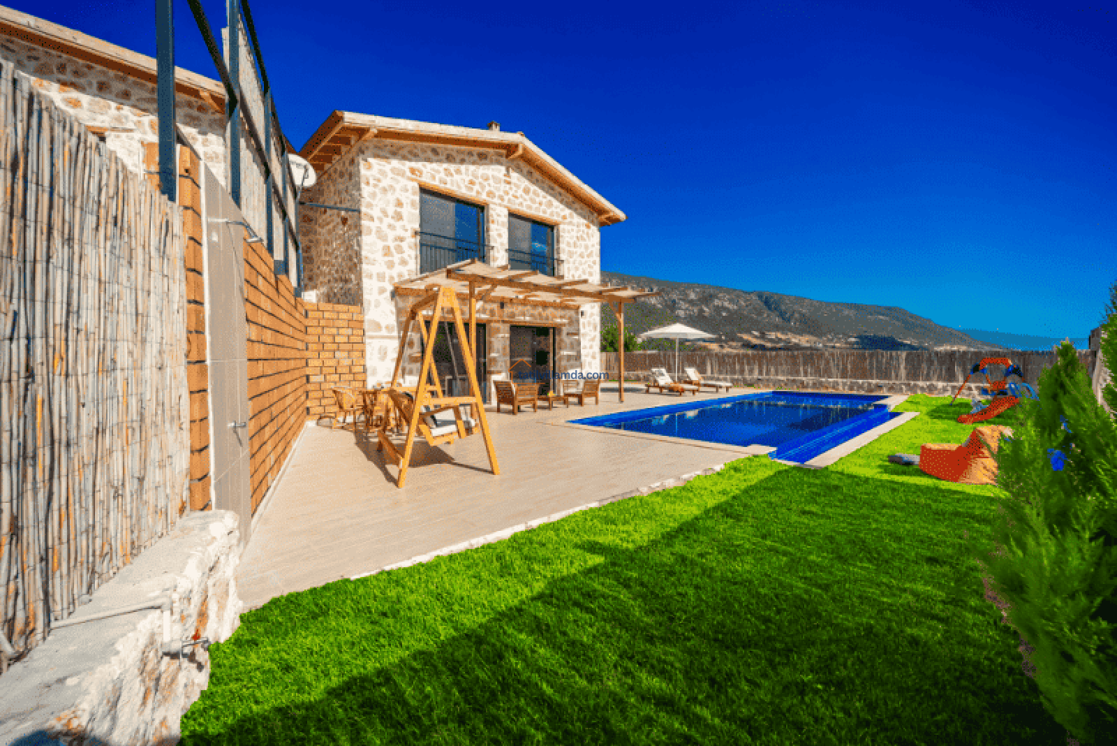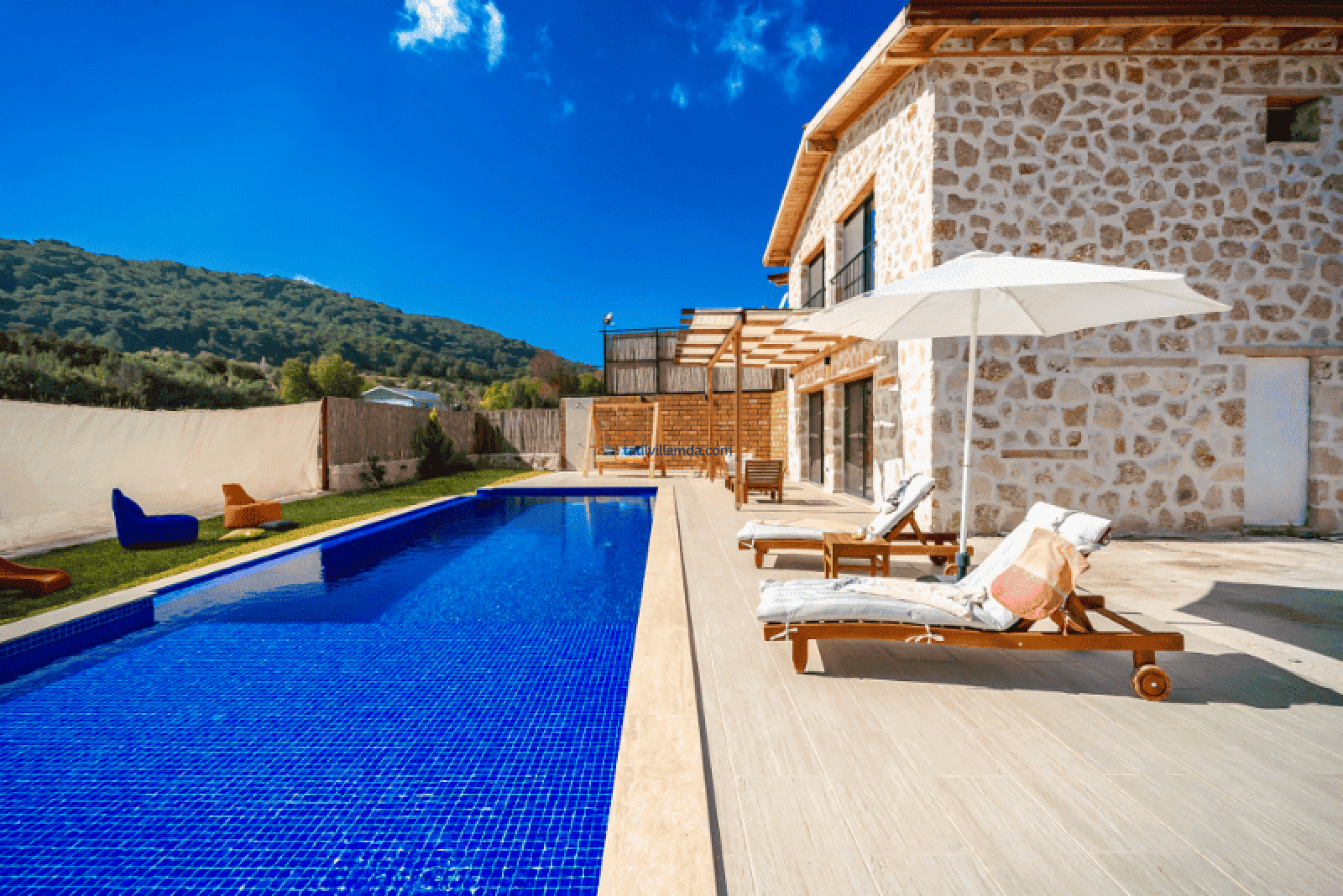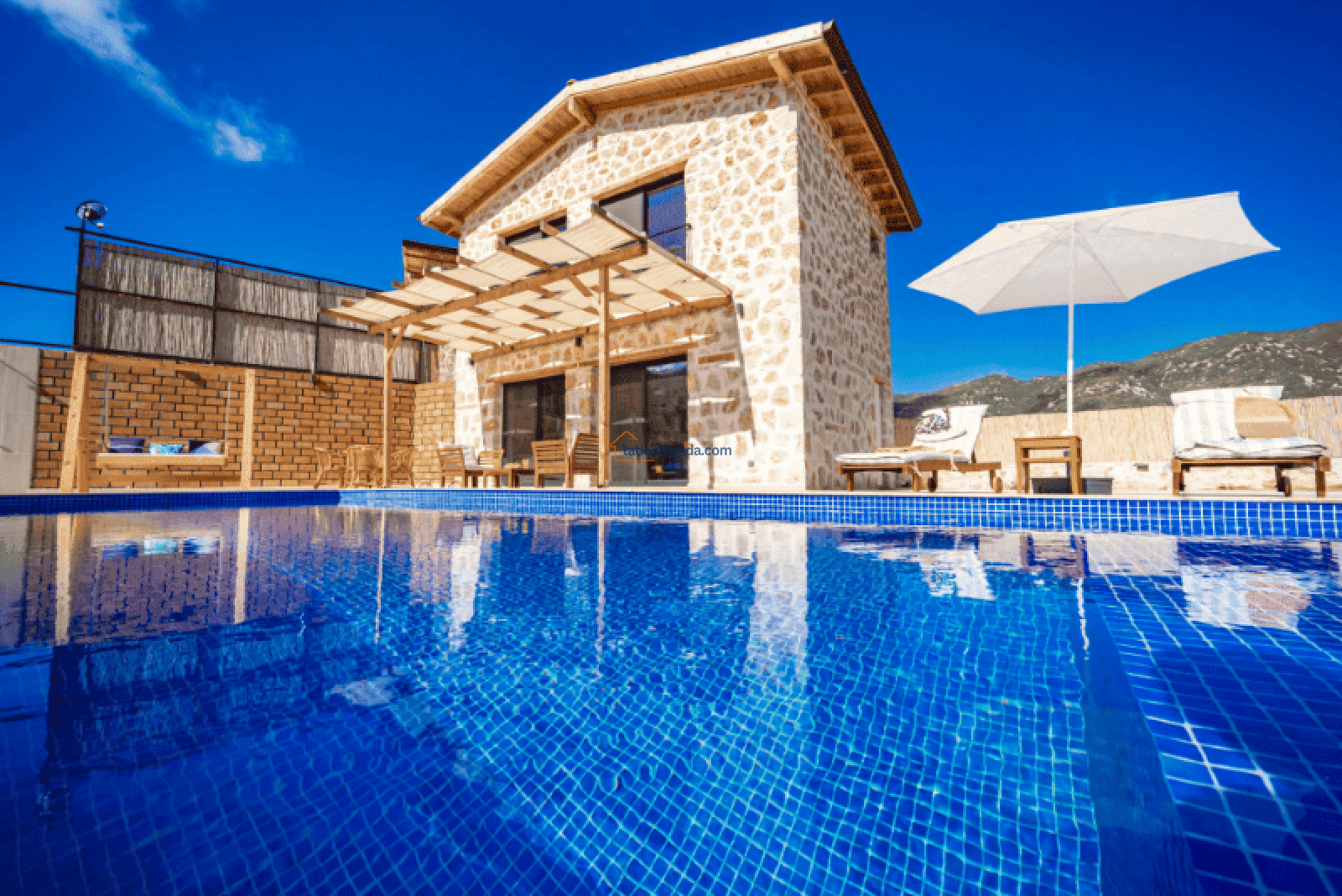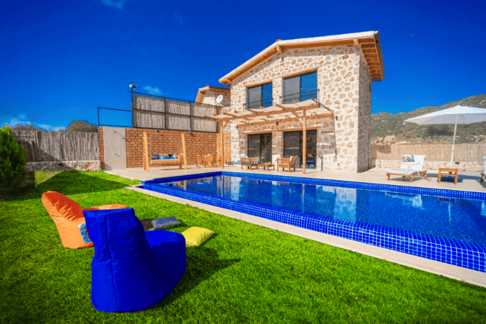 Villa Bonus 1, Kalkan Sarıbelen’de yer alan, lüks ve konforun ön planda tutulduğu özel bir balayı villasıdır. Çift kişilik olarak tasarlanan bu villa, gözlerden uzak, huzurlu bir tatil geçirmek isteyen çiftler için mükemmel bir seçenektir. Korunaklı havuzu, dışarıdan görünmeyecek şekilde dizayn edilmiştir, böylece misafirler tamamen özel bir atmosferde tatilin keyfini çıkarabilir.