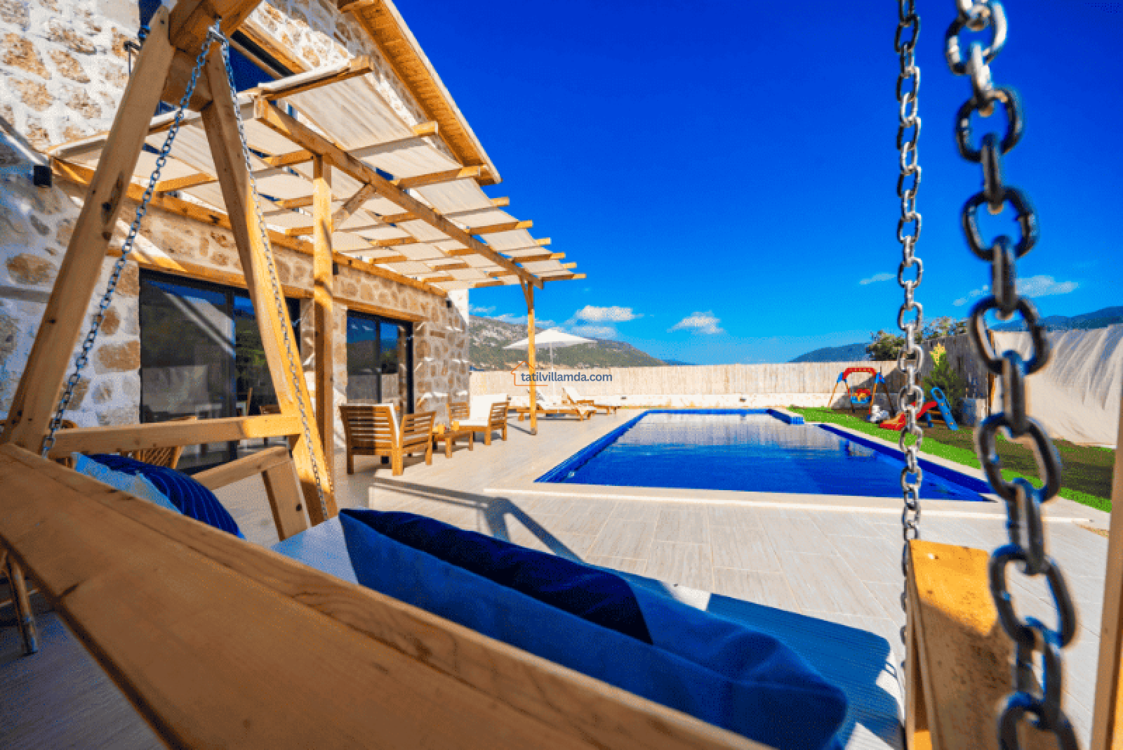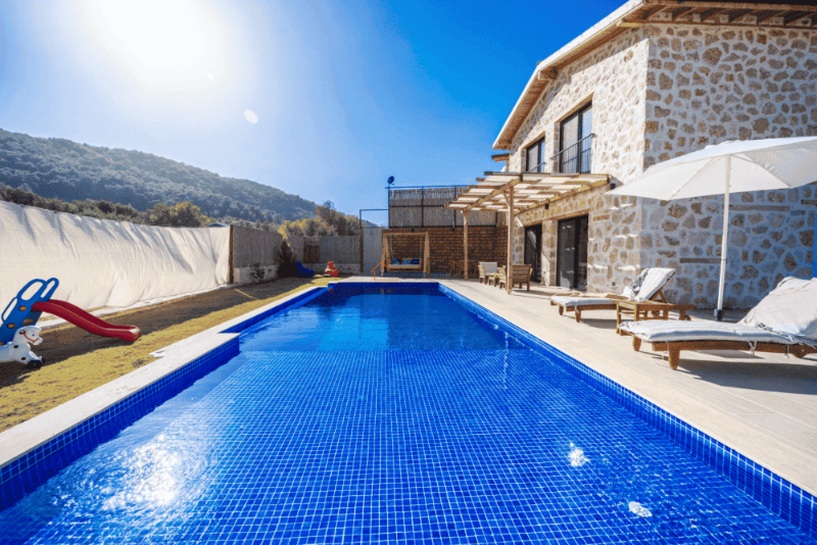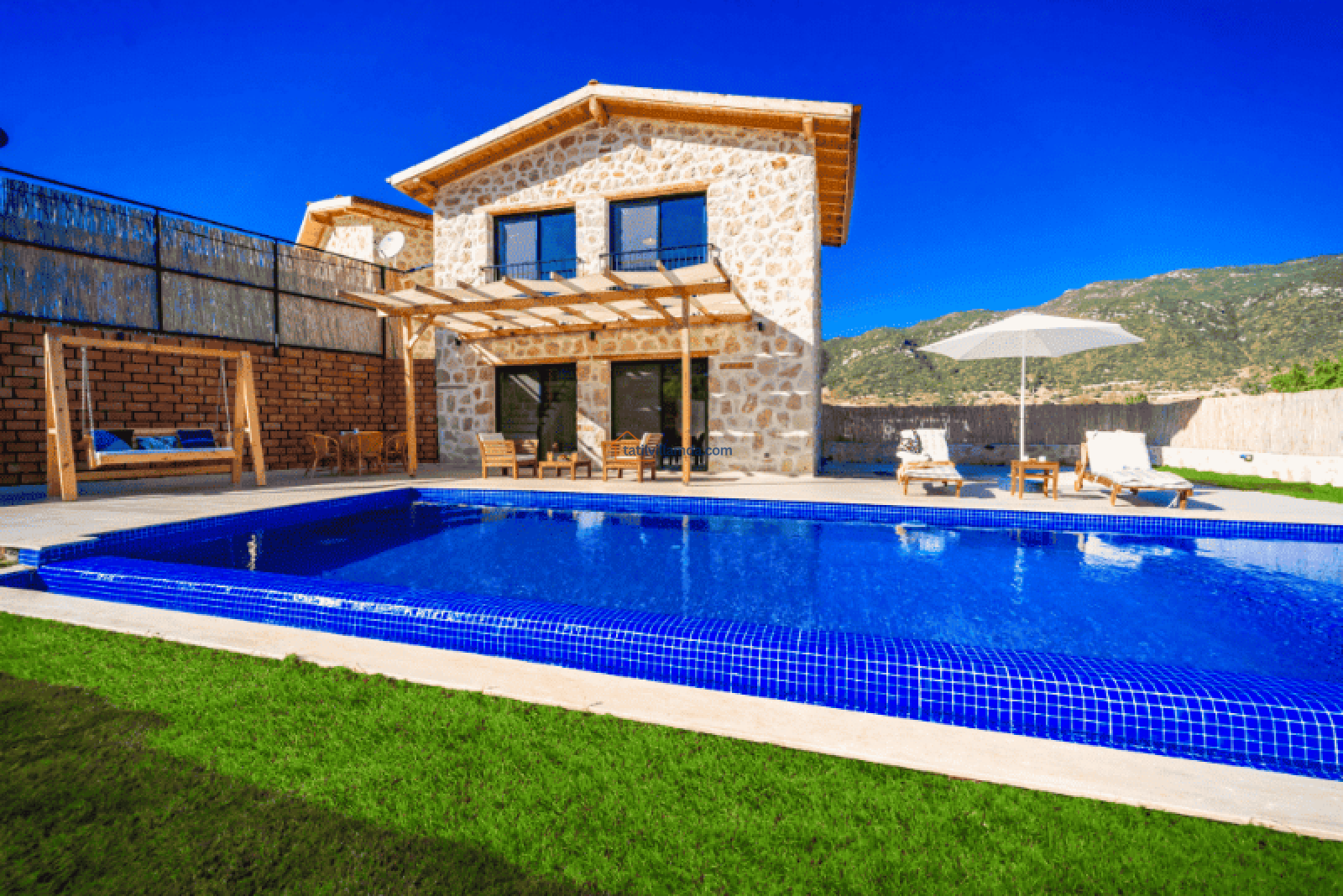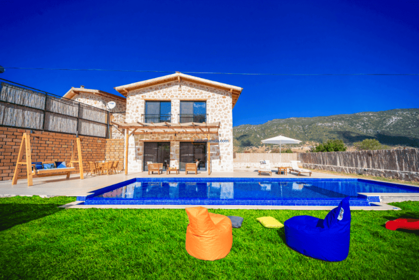 Villa Bonus 1, Kalkan Sarıbelen’de yer alan, lüks ve konforun ön planda tutulduğu özel bir balayı villasıdır. Çift kişilik olarak tasarlanan bu villa, gözlerden uzak, huzurlu bir tatil geçirmek isteyen çiftler için mükemmel bir seçenektir. Korunaklı havuzu, dışarıdan görünmeyecek şekilde dizayn edilmiştir, böylece misafirler tamamen özel bir atmosferde tatilin keyfini çıkarabilir.