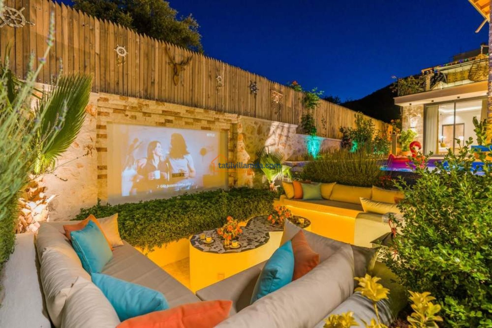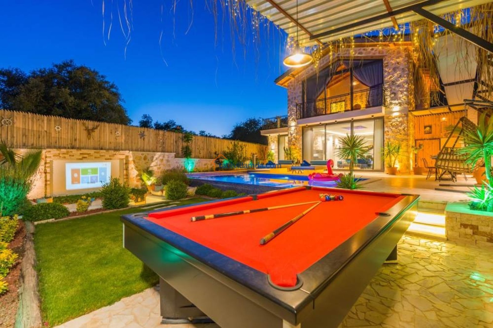Bahçesinde yer alan projeksiyon sistemi ve dev ekranla açık hava sinema keyfini doyasıya yaşayabilirsiniz. Sevdiklerinizle yıldızların altında film izlemek, bu tatili unutulmaz kılacak anlardan biri olacak. Eğlenceyi sevenler için bilardo masası da villada mevcuttur.