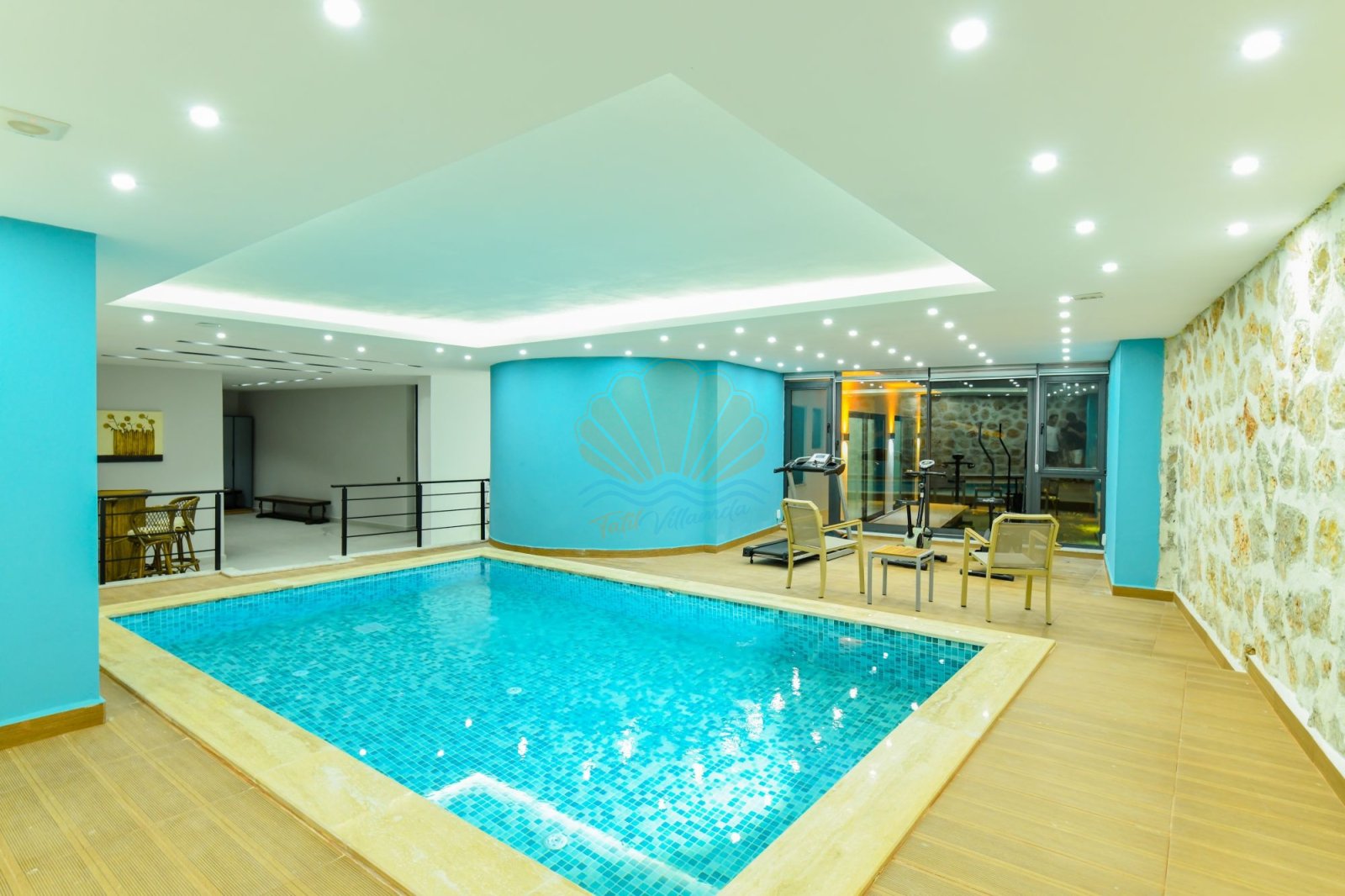 Villa Cassa’nın kapalı ve ısıtmalı iç havuzu, hamam ve saunası sayesinde dört mevsim tatil keyfi yaşamanız mümkündür. Jakuzili odası, sinema odası ve spor aletleri odası ile hem dinlenmek hem de eğlenmek isteyen misafirler için ideal bir ortam sunar. Bilardo masası, masa tenisi ve langırt gibi oyun alanları ise tatilinize eğlence katar.