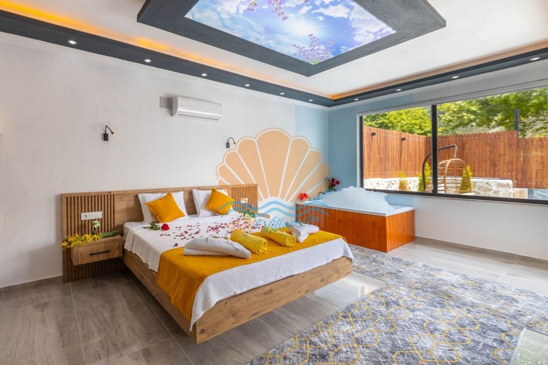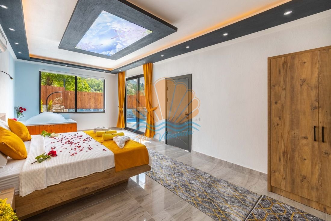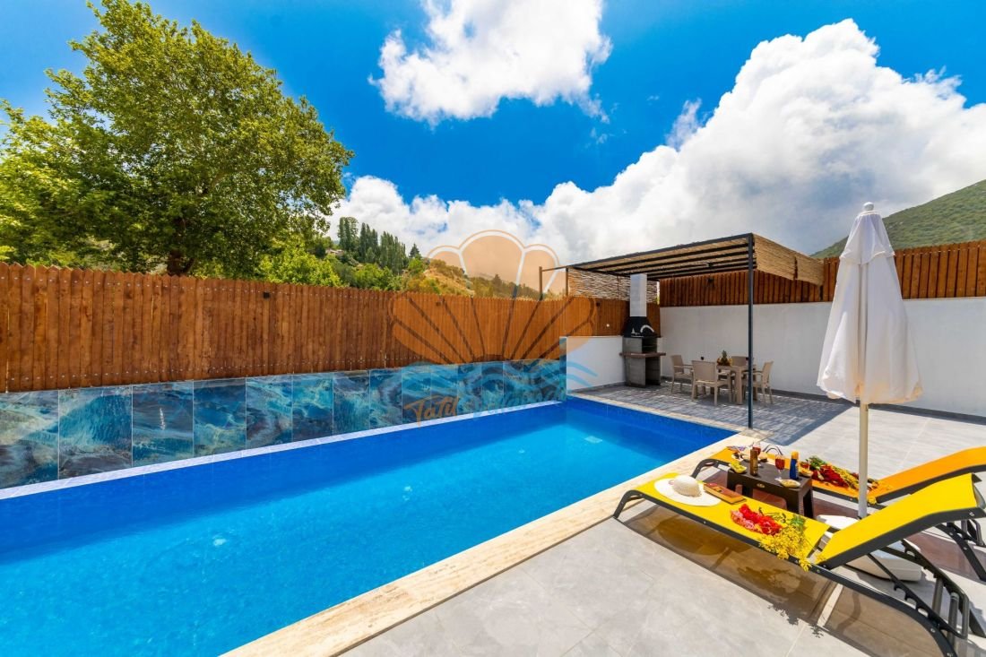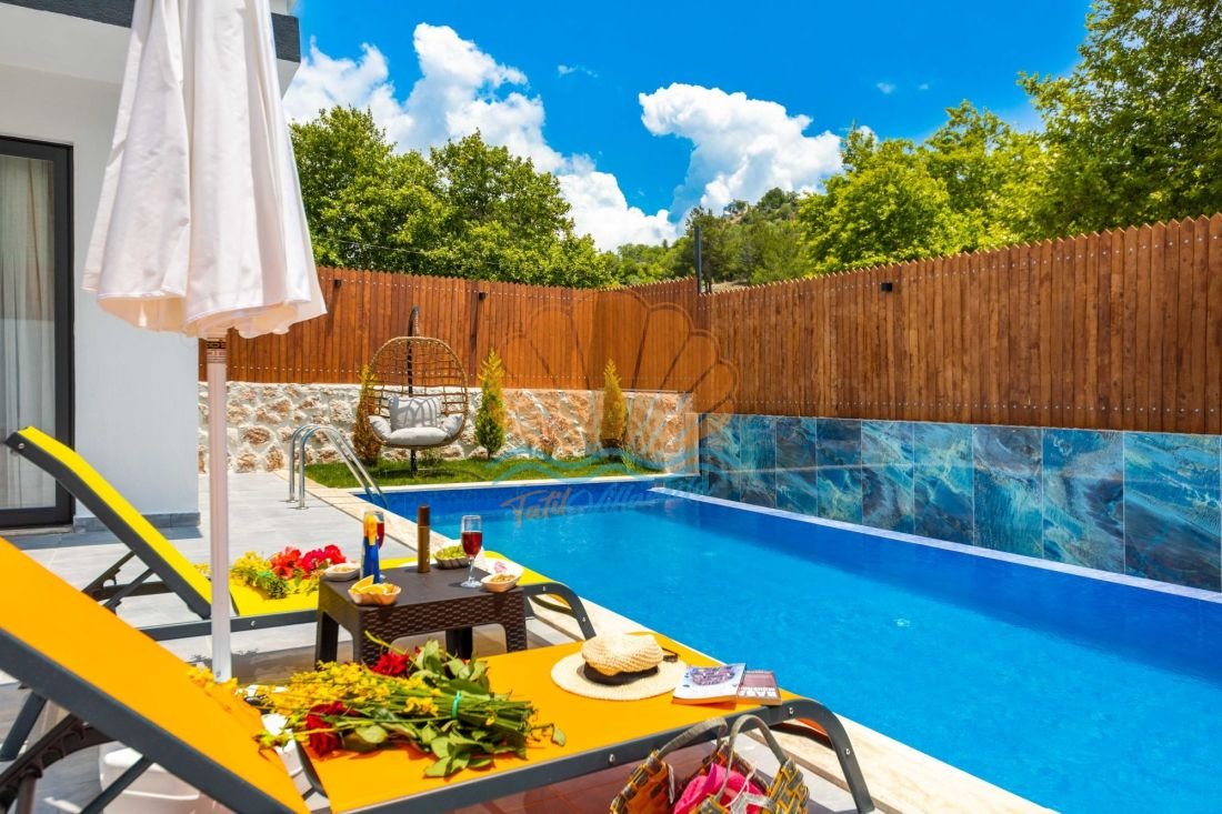 Kalkan Sarıbelen mevkiinde konumlanan, doğa ile iç içe, korunaklı özel havuzlu yapısıyla özellikle balayı çiftleri ve muhafazakar tatil arayan misafirler için tasarlanmış lüks bir kiralık villadır. Tek yatak odalı ve 2 kişi konaklama kapasiteli olan villa, romantik ve huzurlu bir tatil geçirmek isteyen çiftler için ideal bir seçenek sunar. Gözlerden uzak yapısı sayesinde havuz alanı tamamen korunaklıdır ve dışarıdan görünmez.
