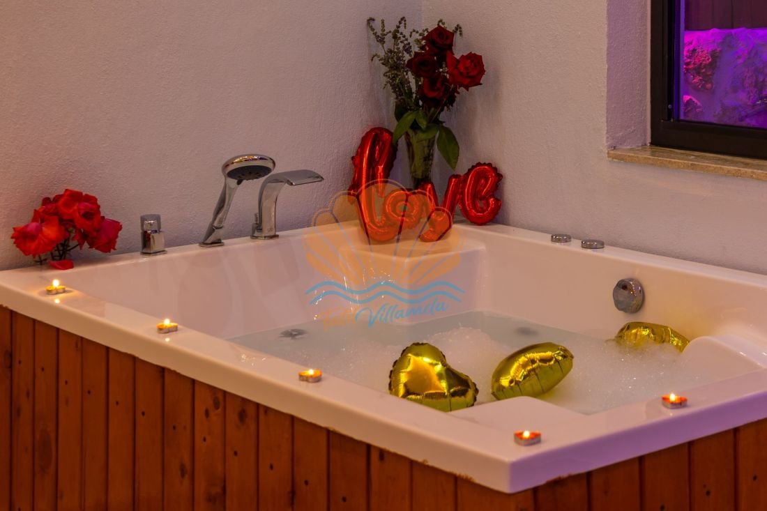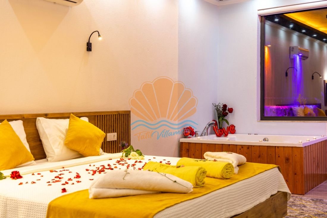 Modern ve şık bir mimariye sahip olan Villa Cika 6’nın iç tasarımı konfor ön planda tutularak hazırlanmıştır. Yatak odasında bulunan jakuzi, tatilinize ekstra rahatlık ve keyif katar. Balayı villası konseptine uygun detaylarla dekore edilen iç mekânda, ihtiyaç duyabileceğiniz tüm temel donanımlar yer almaktadır.