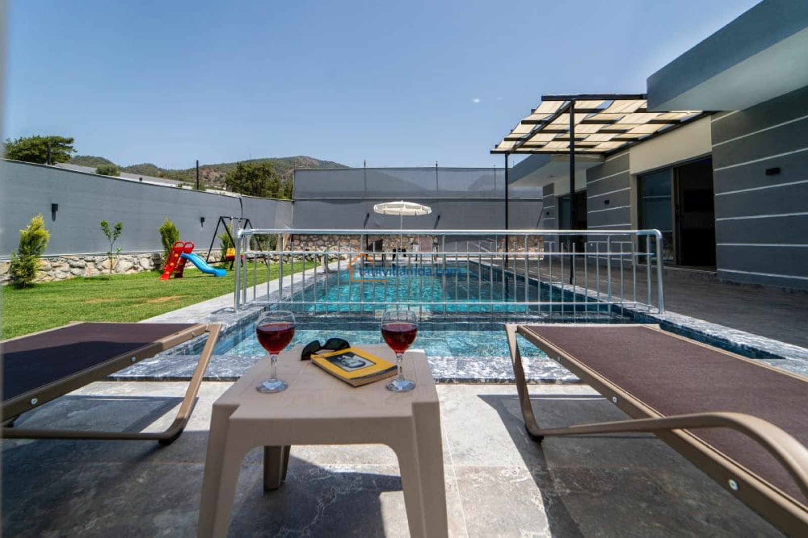 Villa Coşkun 2, Fethiye’nin huzurlu Eldirek mevkiinde yer alan, doğayla iç içe, konforlu bir tatil villasıdır. Özellikle muhafazakar aileler ve gözlerden uzak, sakin bir tatil arayanlar için ideal bir seçenektir. Villanın geniş ve korunaklı bir yüzme havuzu bulunur. Ayrıca çocuklar için ayrı bir çocuk havuzu da mevcuttur.