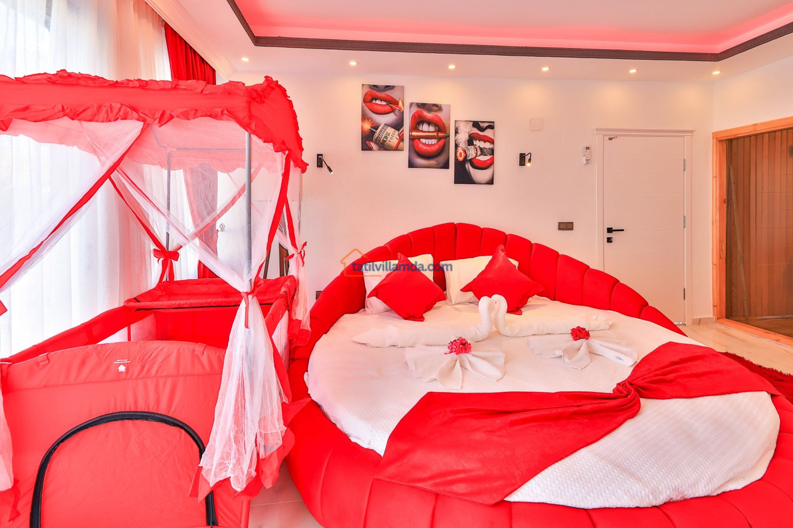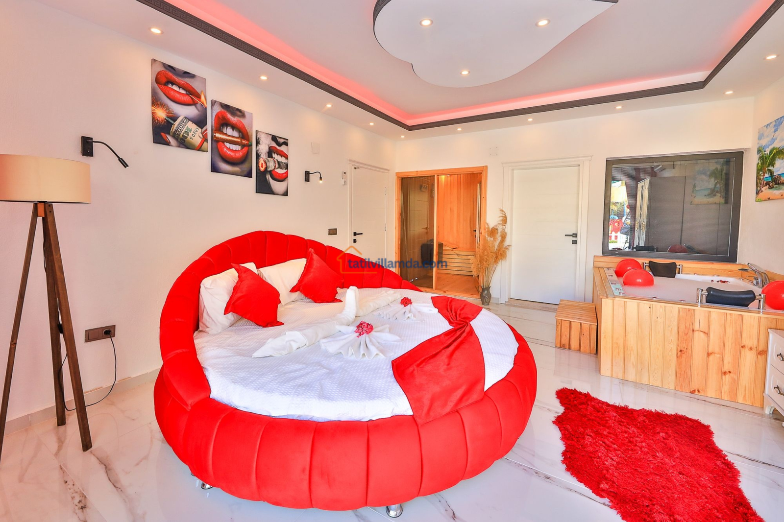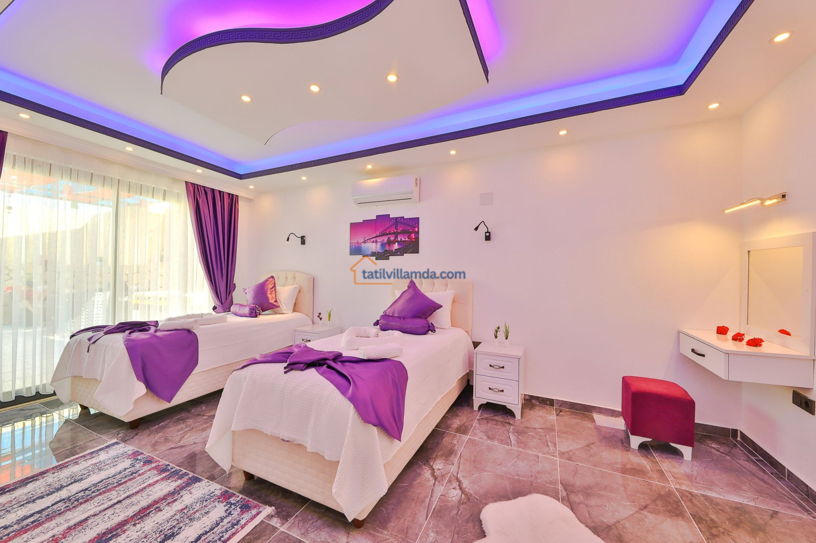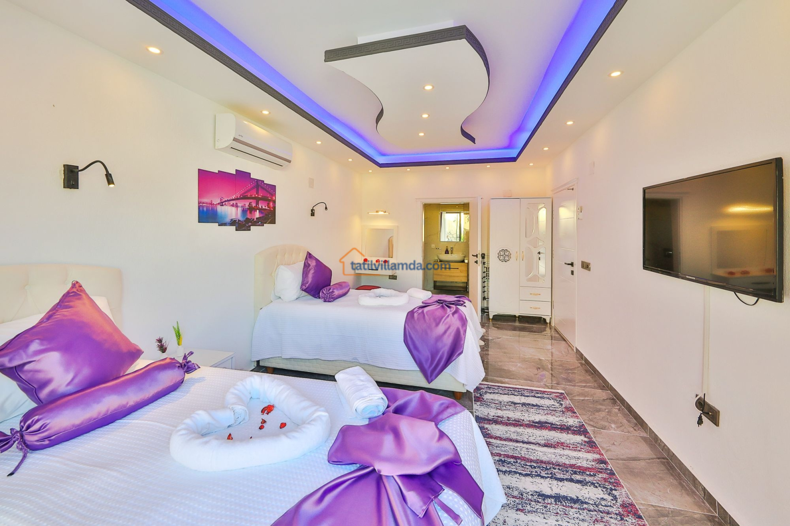 Toplamda 2 yatak odası bulunan Villa Damla 2, 4 kişilik konaklama kapasitesi ile özellikle küçük aileler ve balayı çiftleri için ideal bir seçenektir. İç mekân tasarımı lüks dokunuşlarla zenginleştirilmiş olup ferah oturma alanları, modern mobilyalar ve tam donanımlı mutfağıyla ev konforunu eksiksiz şekilde sunar.