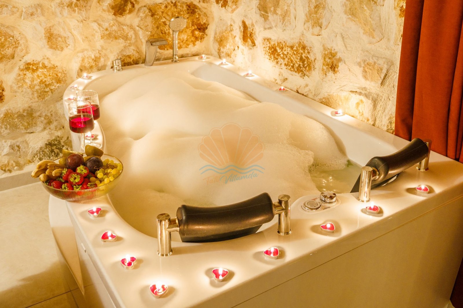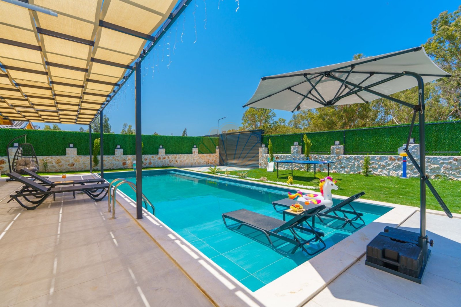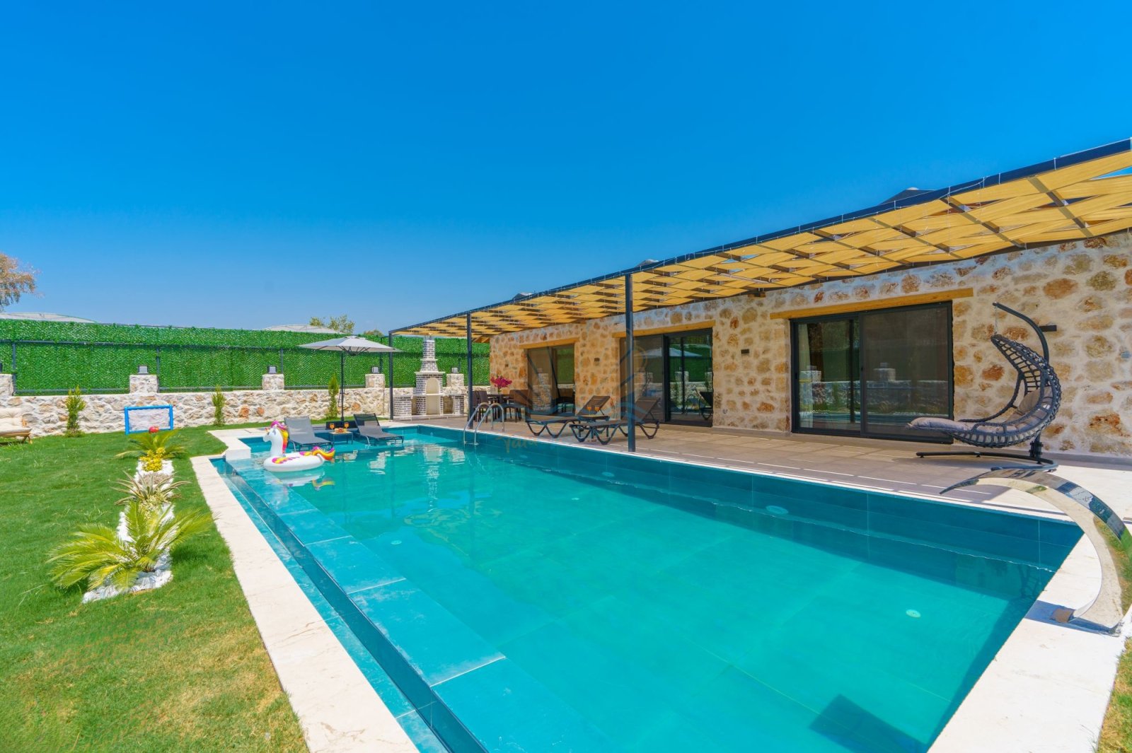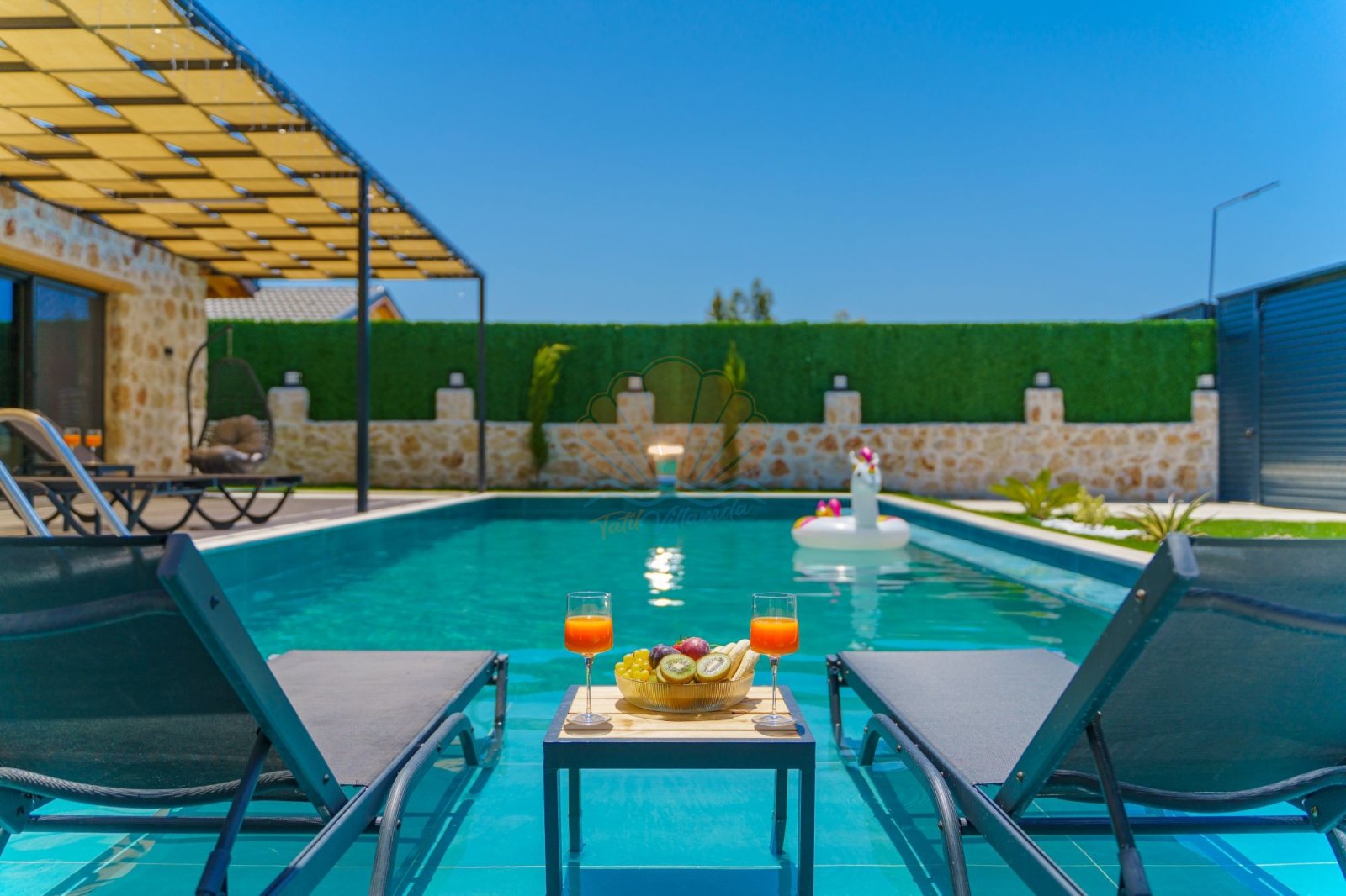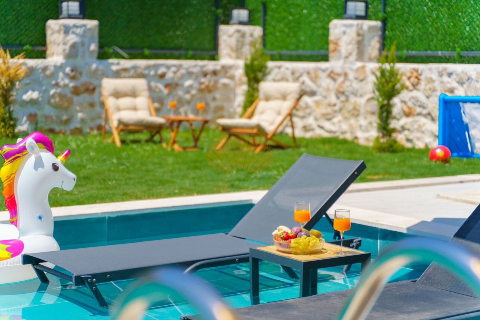 Villanın korunaklı ve geniş yüzme havuzu, gün boyu özgürce yüzmenin ve güneşin tadını çıkarmanın keyfini yaşatır. Havuz başında yer alan şezlonglar, şemsiye ve salıncak, tatilinize dingin anlar katar. Bahçede bulunan masa takımı ve barbekü alanı ise sevdiklerinizle birlikte keyifli akşam yemekleri için sıcak bir atmosfer sunar. Jakuzili yatak odası, günün yorgunluğunu atmanız ve kendinizi şımartmanız için özel olarak düşünülmüştür.