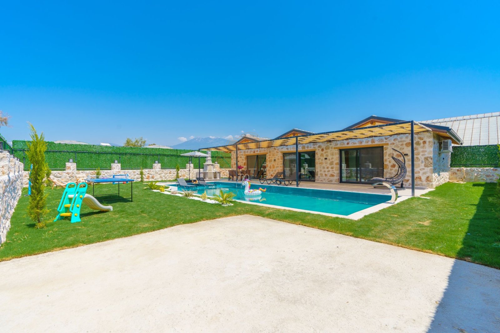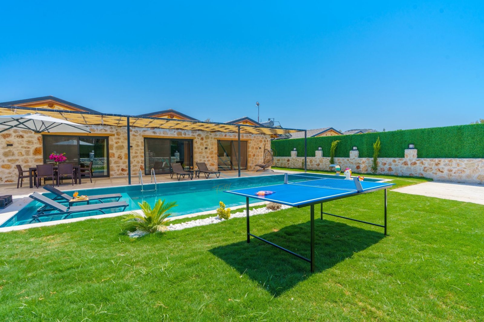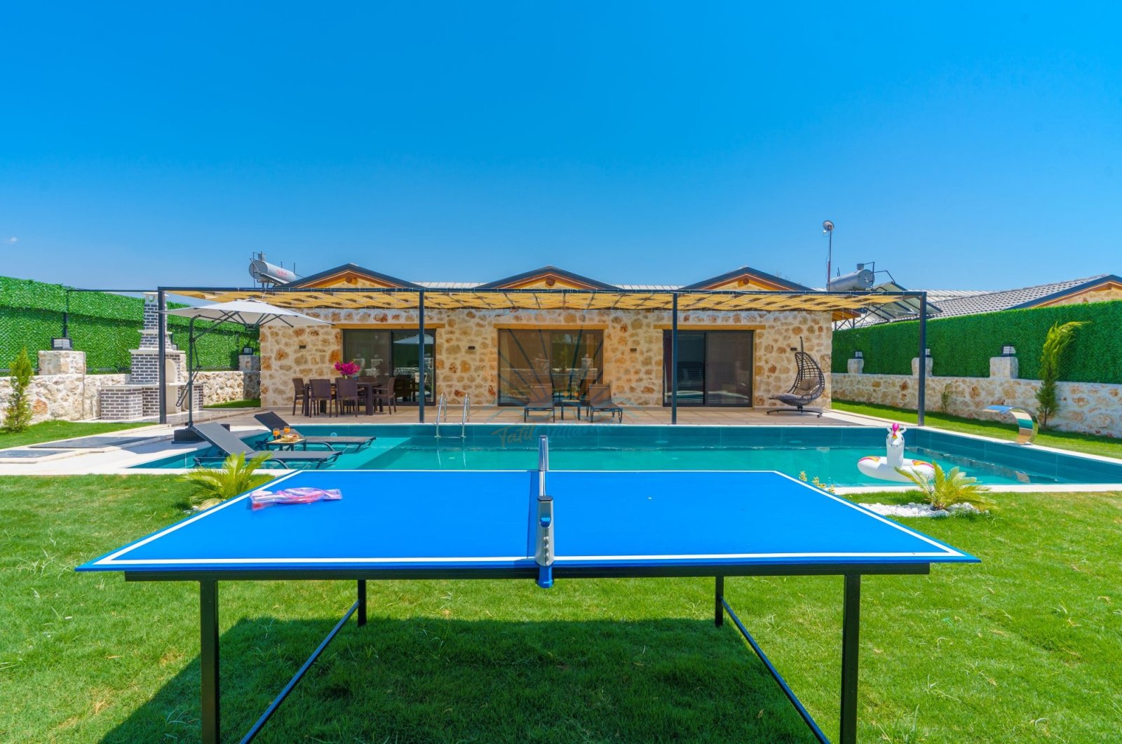 Villa Deniz Yıldızı 2’in geniş bahçe alanında masa tenisi ve çocuk oyun parkı yer alır; böylece hem yetişkinler hem de çocuklar için eğlenceli vakit geçirme imkânı sunar. Dünyaca ünlü Patara Plajı’na yalnızca 5 km mesafede bulunan villa, altın sarısı kumsallara ve masmavi denize kolay ulaşım avantajı sağlar. Doğa, konfor ve huzurun iç içe geçtiği bu özel villa, unutulmaz bir tatil için sizi bekliyor.