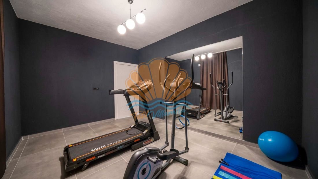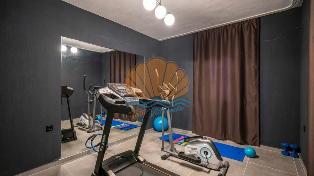 Villanın öne çıkan özelliklerinden biri de özel spor odasına sahip olmasıdır. Tatil süresince formunu korumak isteyen misafirler için bu alan büyük avantaj sağlar. Açık alan donanımları ise oldukça zengindir. Havuz başında şezlonglar ve şemsiye ile güneşin tadını çıkarabilir, salıncak ve bahçe oturma grubunda keyifli vakit geçirebilirsiniz. Masa takımı ve barbekü alanı akşam yemeklerinizi açık havada geçirmenize olanak tanır. Ayrıca langırt ve masa tenisi gibi eğlenceli aktiviteler sayesinde hem yetişkinler hem çocuklar için hareketli bir tatil ortamı sunulmaktadır.