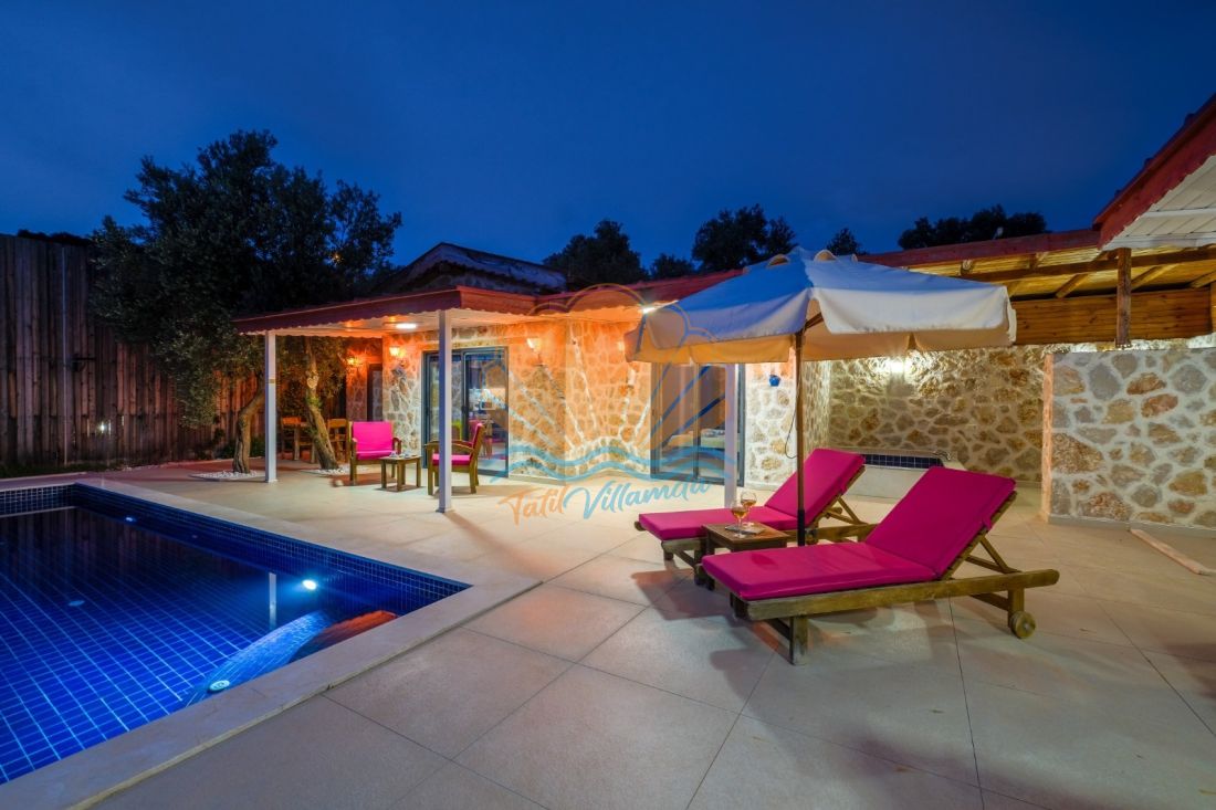 Kalkan Üzümlü mevkiinde konumlanan, doğa ile iç içe huzurlu bir tatil arayan çiftler için özel olarak tasarlanmış şık bir kiralık villadır. Korunaklı yapısı sayesinde gözlerden uzak, sakin ve özgür bir tatil imkanı sunan bu villa, özellikle balayı çiftleri ve romantik bir kaçamak planlayan misafirler için ideal bir seçenektir.