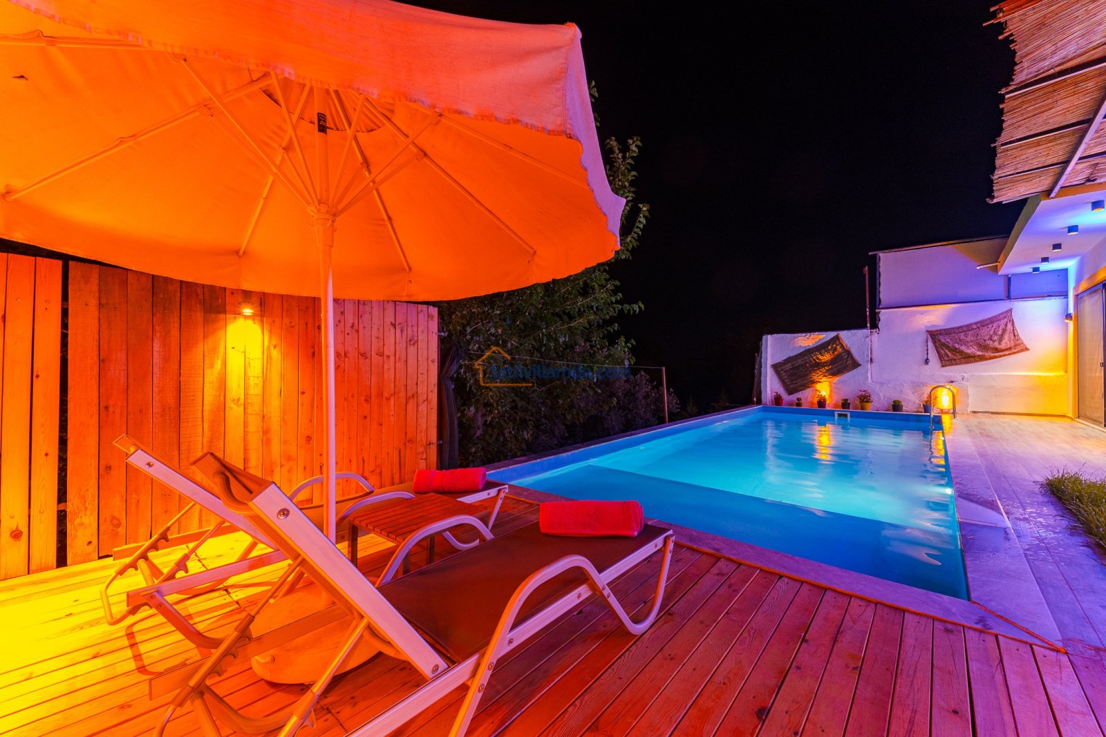 Kalkan İslamlar’da yer alan Villa Efem, doğanın içinde huzurlu bir tatil arayan çiftler için mükemmel bir seçenektir. Tamamen korunaklı havuz alanı sayesinde misafirlerine tam gizlilik sunar. Villada konforlu bir yatak odası, modern tasarımlı bir oturma alanı ve tam donanımlı mutfak bulunmaktadır. Jakuzisiyle keyifli anlar yaşayabilir, gün boyu havuz başında güneşlenerek tatilin tadını çıkarabilirsiniz. Havuz çevresinde şezlong, şemsiye ve salıncak yer alır, bu da dinlenme alanınızı daha konforlu hale getirir.