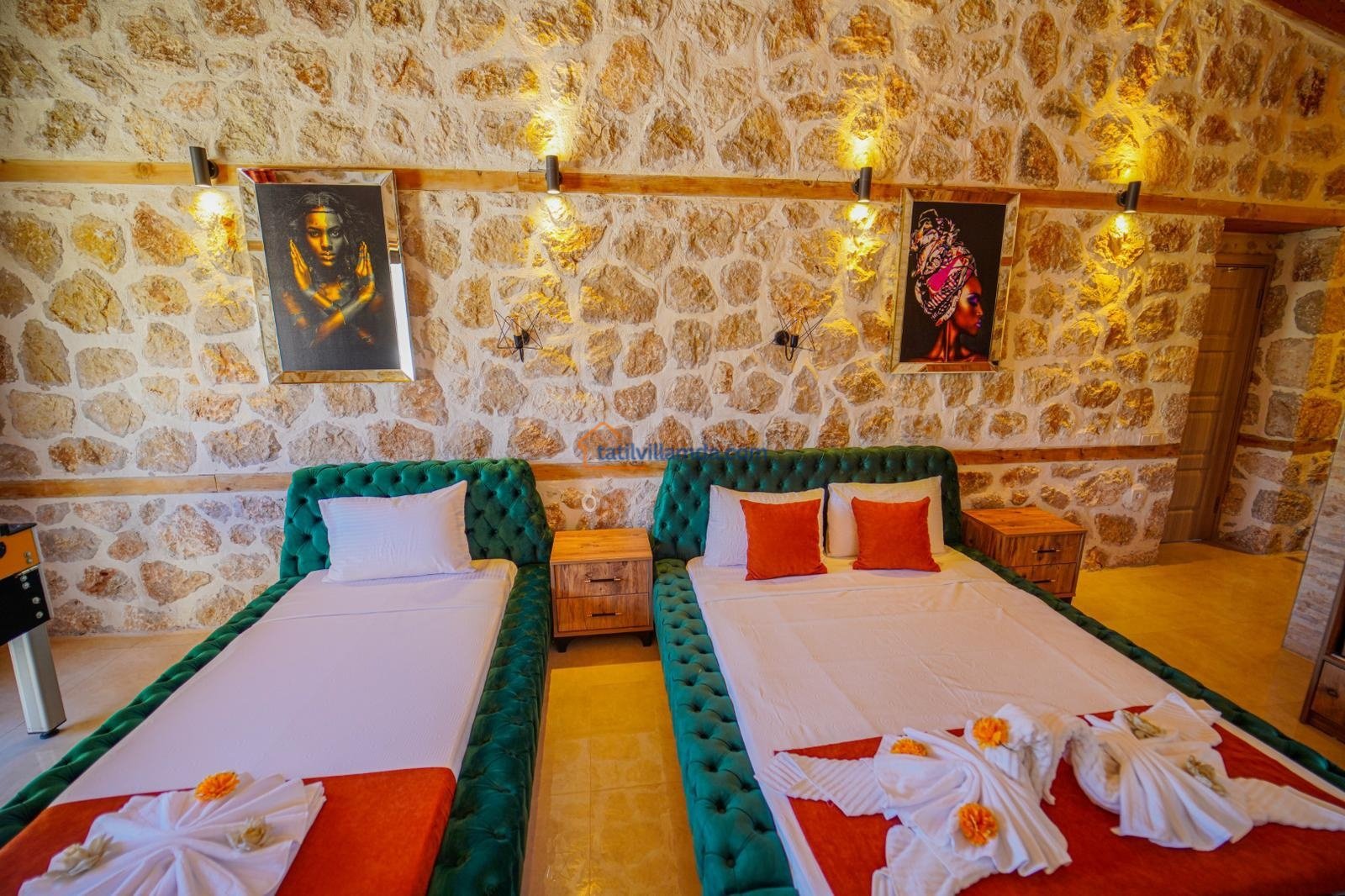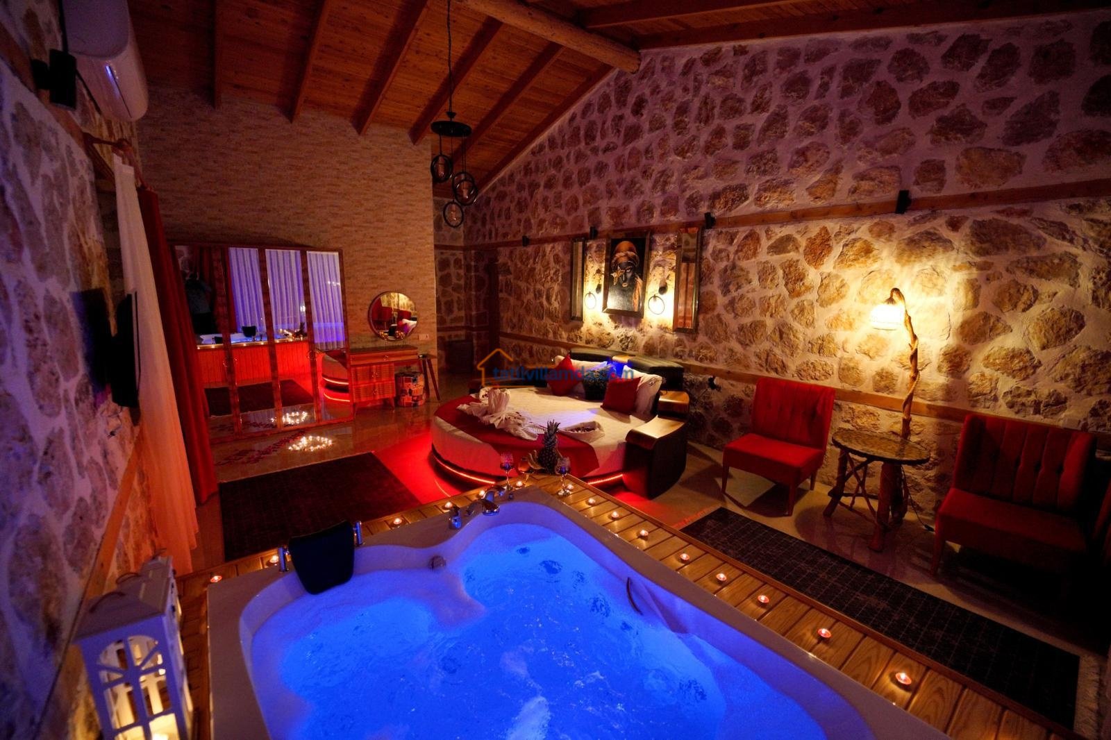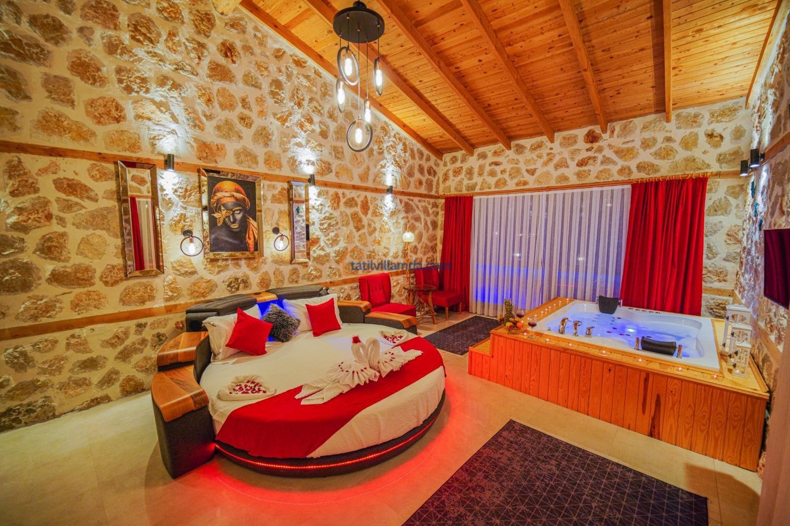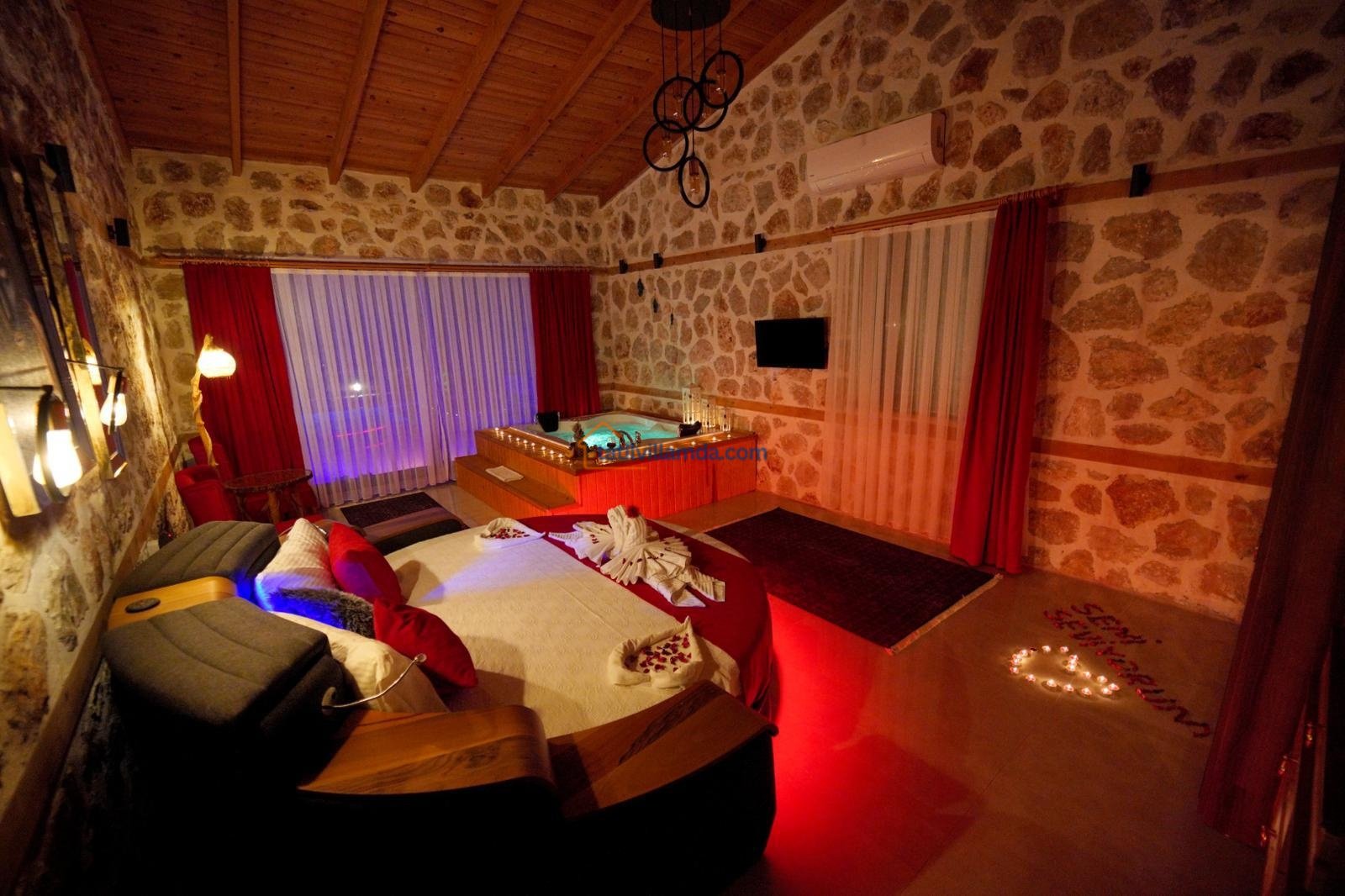 Toplamda 2 yatak odasına sahip olan villa 5 kişilik konaklama kapasitesine sahiptir. Bir yatak odasında konforlu çift kişilik yatak, diğer odada ise bir adet çift kişilik ve bir adet tek kişilik yatak bulunmaktadır. Ayrıca villada tatilin keyfini ikiye katlayan jakuzili banyo da mevcuttur. Tüm odalar ferah, aydınlık ve özenle dizayn edilmiştir.