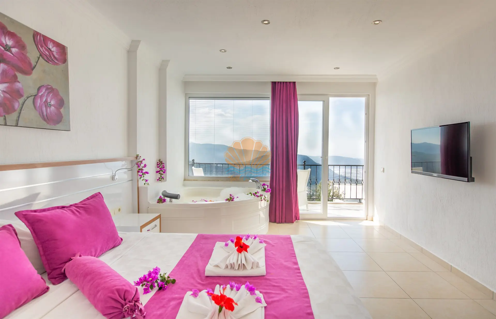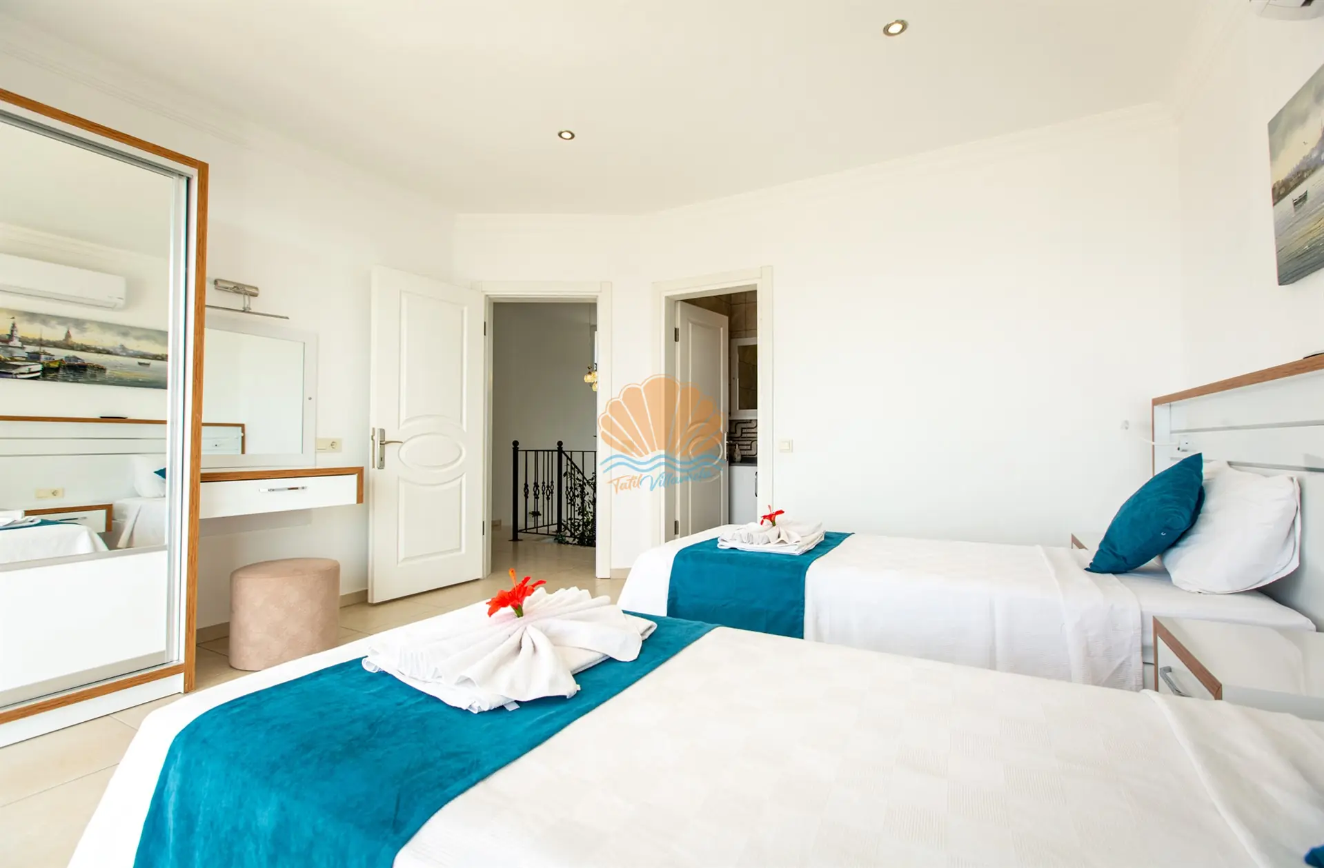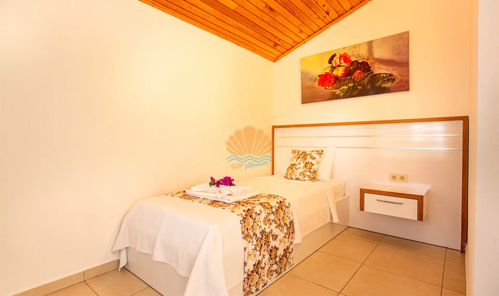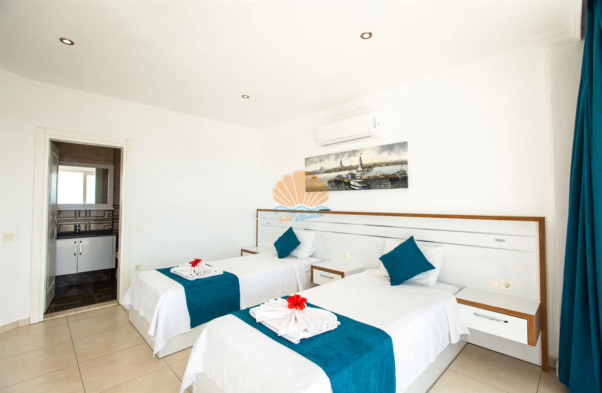 Toplamda 3 yatak odasına sahip olan Villa Eslem, 5 kişilik konaklama kapasitesiyle çekirdek aileler ve küçük arkadaş grupları için oldukça uygundur. Odalardan 2 tanesi ebeveyn banyolu olarak tasarlanmış olup konfor ön planda tutulmuştur. Ayrıca bir yatak odasında bulunan jakuzi, tatilinize ekstra bir rahatlık ve keyif katmaktadır. Modern ve özenle dekore edilmiş iç mekânı sayesinde evinizin konforunu aratmayan bir ortam sunar.
