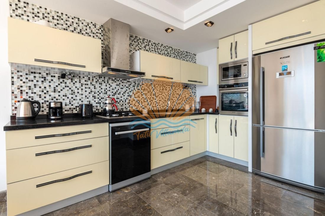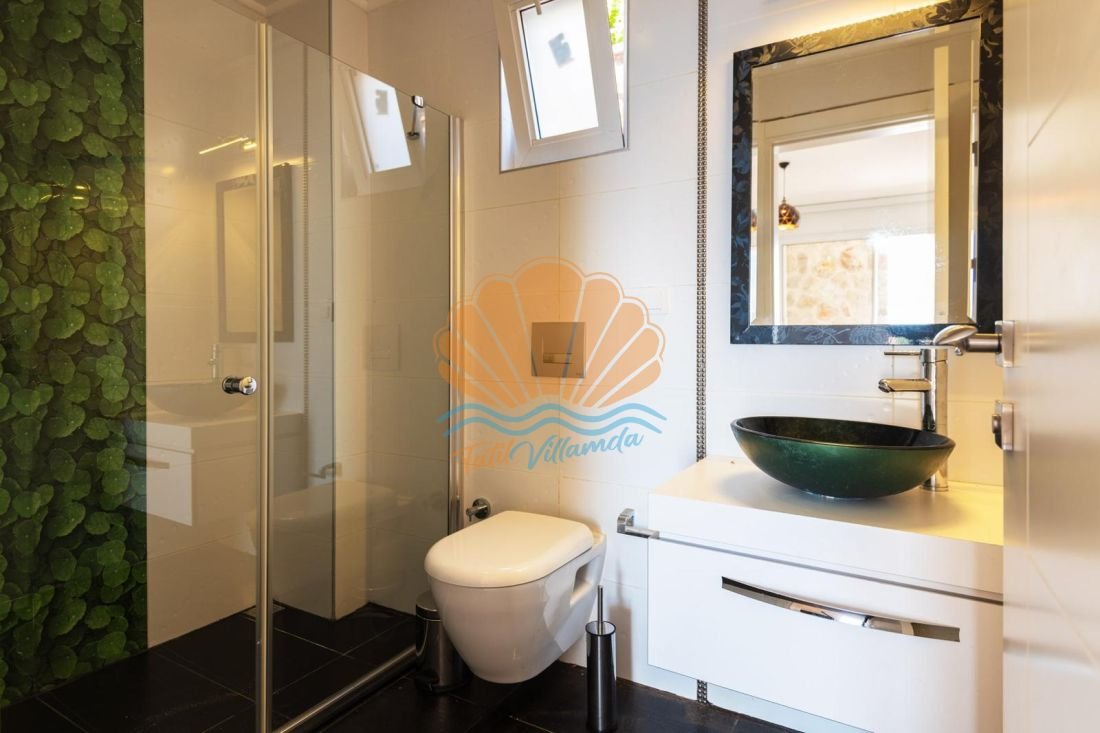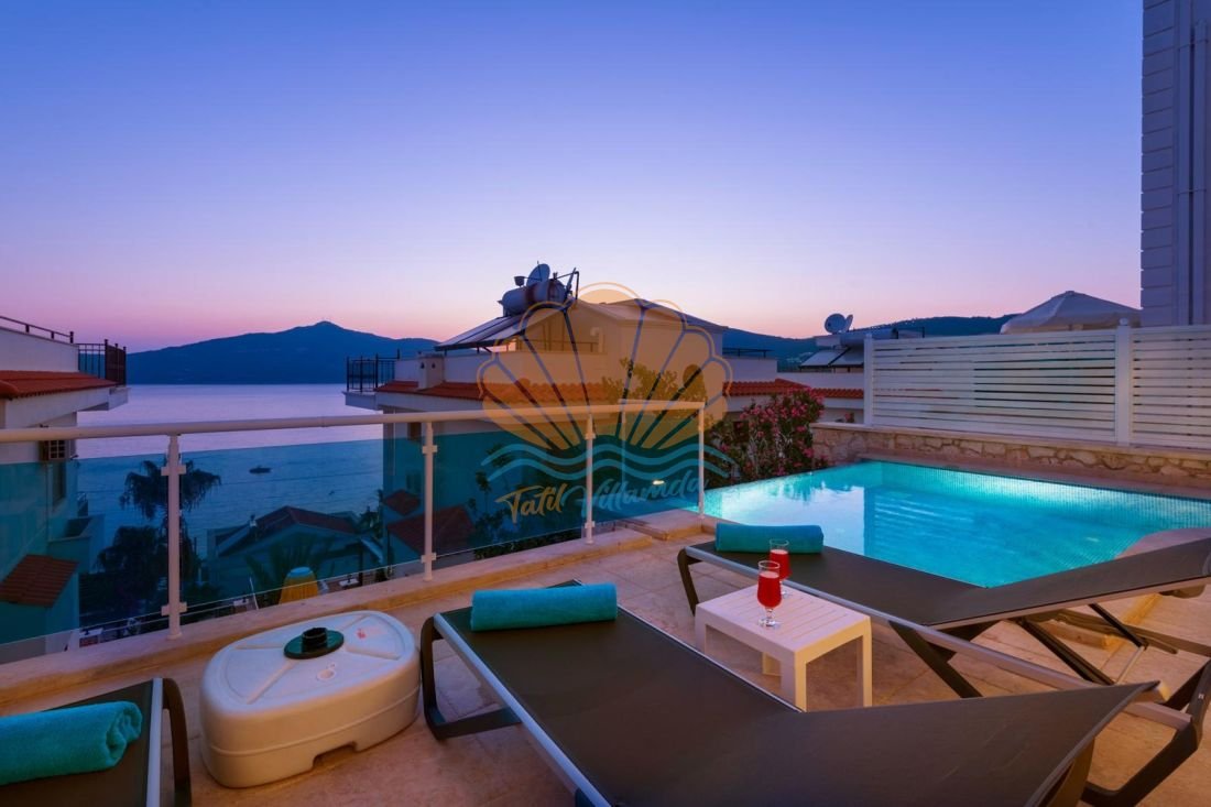 Villanın özel havuz terasında şezlonglar, oturma alanları ve keyifli vakit geçirebileceğiniz bölümler bulunur. Deniz manzarasına karşı havuz keyfi yapabilir, akşam saatlerinde açık havada yemek organizasyonları düzenleyebilirsiniz. Plaja yürüme mesafesinde olması ise araca ihtiyaç duymadan denize ulaşma avantajı sağlar.