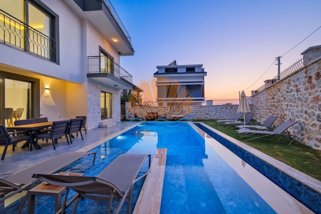 Villanın geniş ve özel yüzme havuzu, gözlerden uzak keyifli bir tatil geçirmek isteyen misafirler için özenle tasarlanmıştır. Havuz başında şezlonglar, şemsiye, salıncak, masa takımı ve rahat bir bahçe oturma grubu yer almakta olup, gün boyu güneşin ve doğanın tadını çıkarabilirsiniz. Ayrıca barbekü alanı sayesinde akşam saatlerinde sevdiklerinizle birlikte keyifli yemekler hazırlayabilirsiniz.