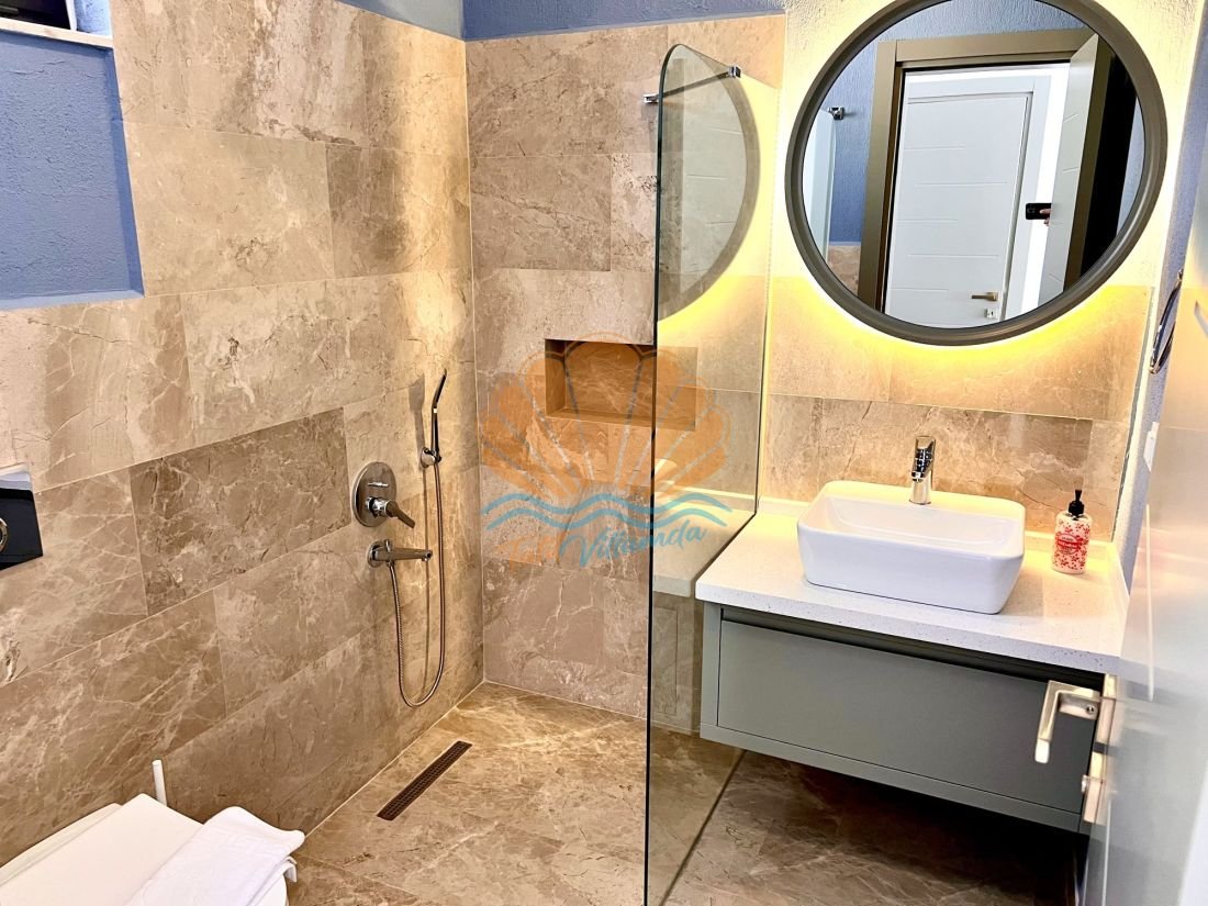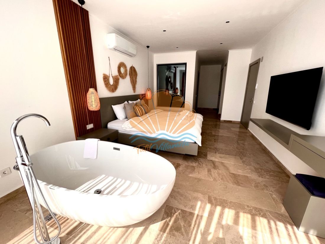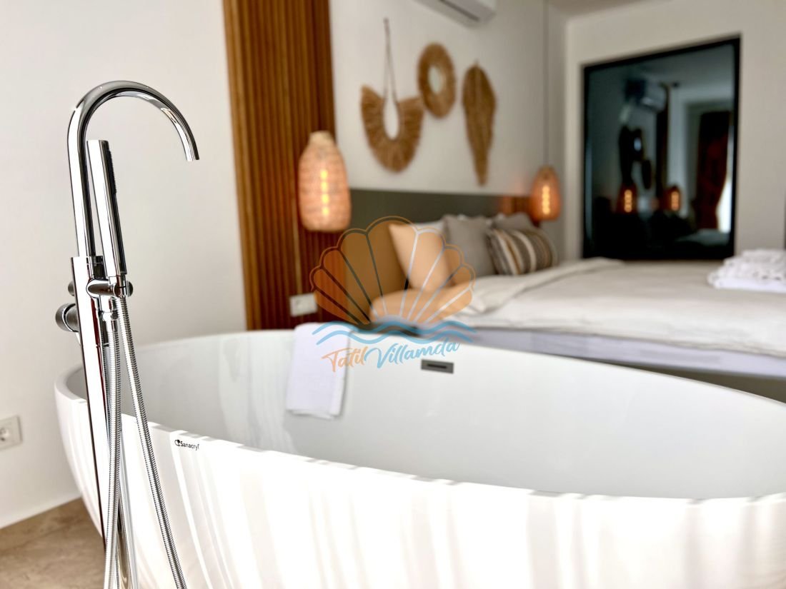 Modern ve ferah bir mimariye sahip olan Villa Gala 3’te tüm detaylar konforunuz düşünülerek tasarlanmıştır. Her iki yatak odası da ebeveyn banyoludur, bu sayede konaklayan misafirler için ekstra rahatlık ve mahremiyet sunar. Ayrıca jakuzisi sayesinde tatilinize keyifli ve dinlendirici bir dokunuş katabilirsiniz. Günün yorgunluğunu jakuzide atarak kendinize özel anların tadını çıkarabilirsiniz.
