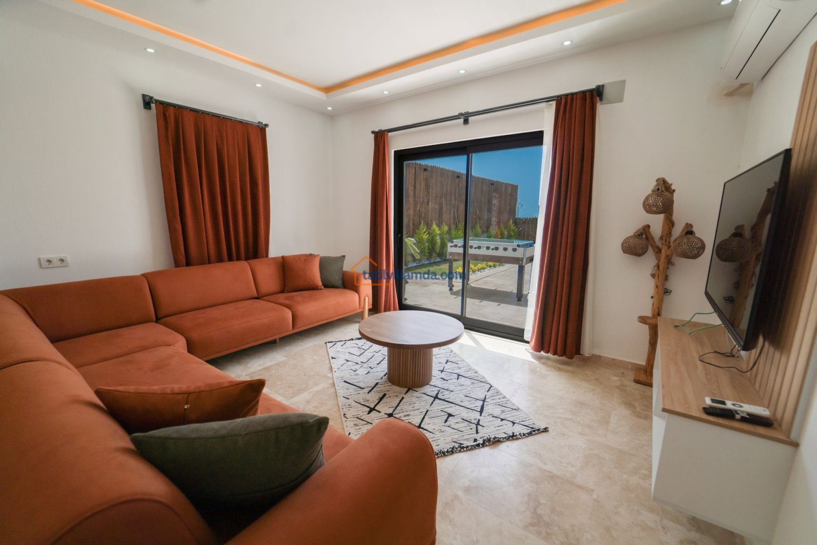 Villanın dış alanında yer alan 9×4 metre ölçülerindeki geniş ve korunaklı özel yüzme havuzu, gün boyu özgürce vakit geçirmenize olanak tanır. Havuz başında bulunan şezlonglar ve şemsiye, güneşin tadını çıkarırken konforunuzu artırır. Bahçede yer alan salıncak ve oturma grubu, sabah kahveleri ya da akşam sohbetleri için keyifli bir atmosfer sunar. Ayrıca barbekü alanı, sevdiklerinizle birlikte lezzetli sofralar kurmanız için sizi bekler. Eğlenceli anlar için düşünülmüş langırt, tatilinize hareket katar.