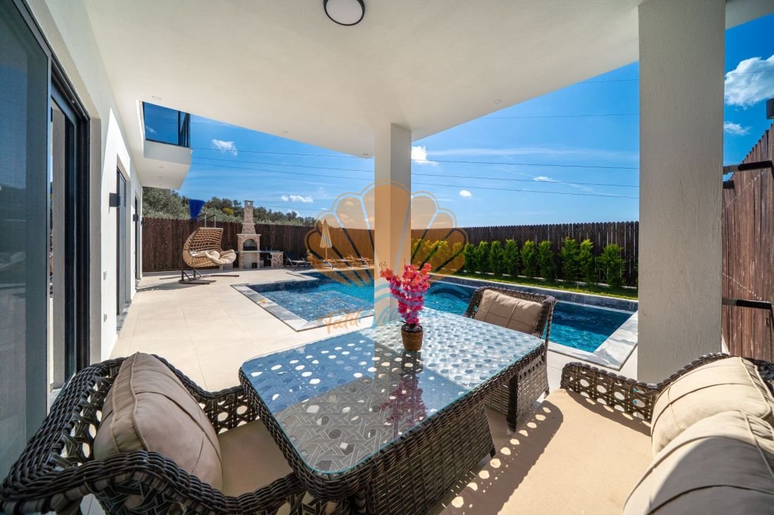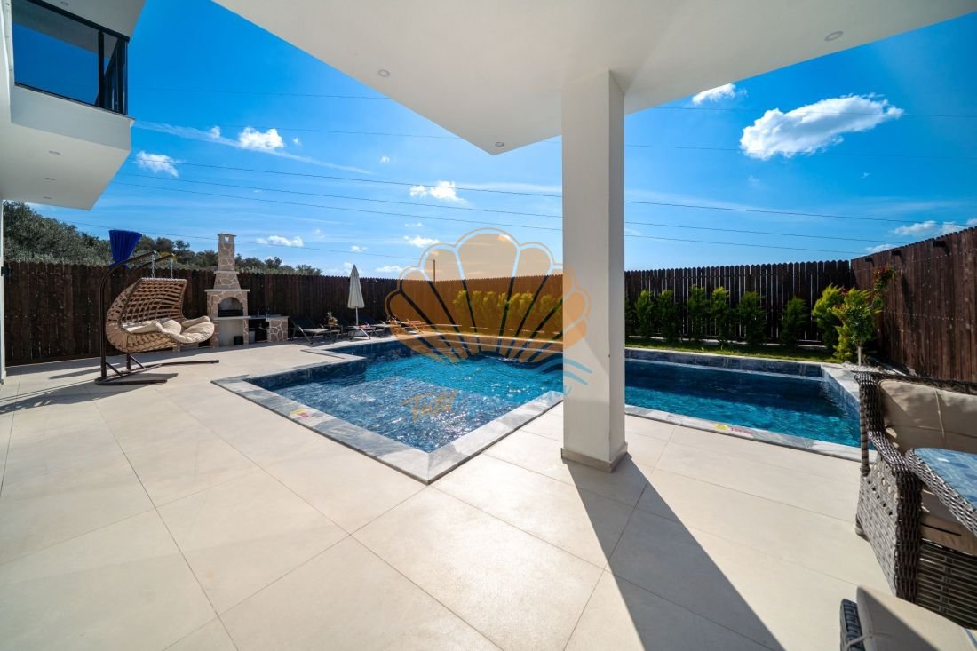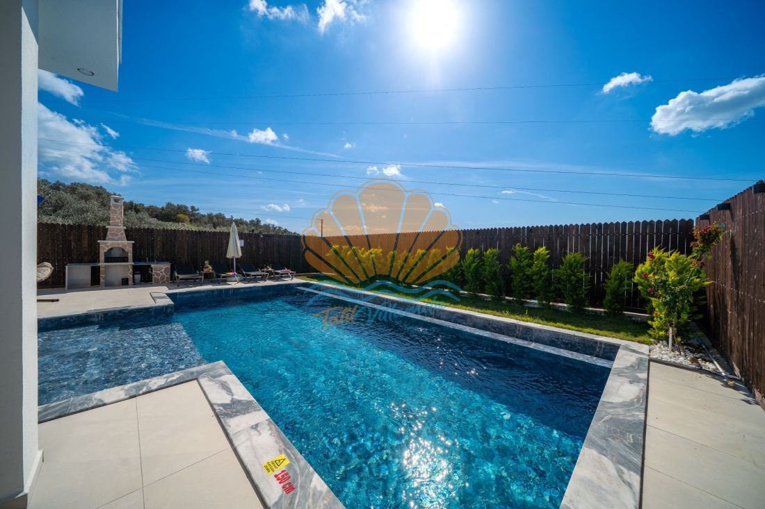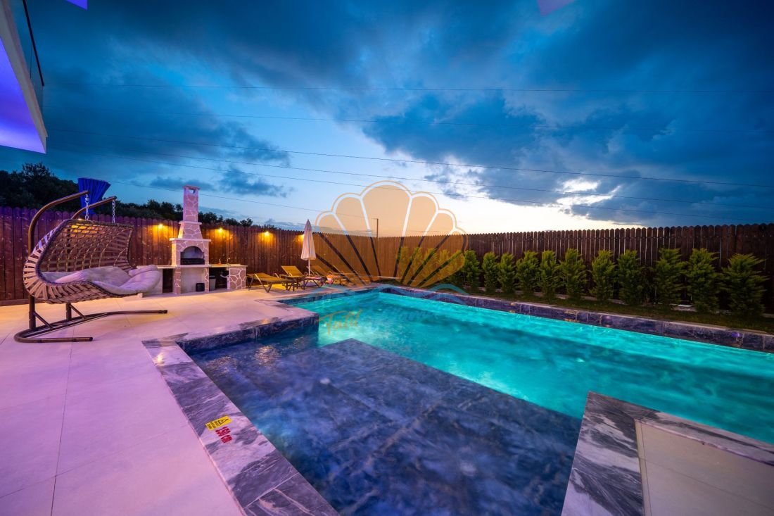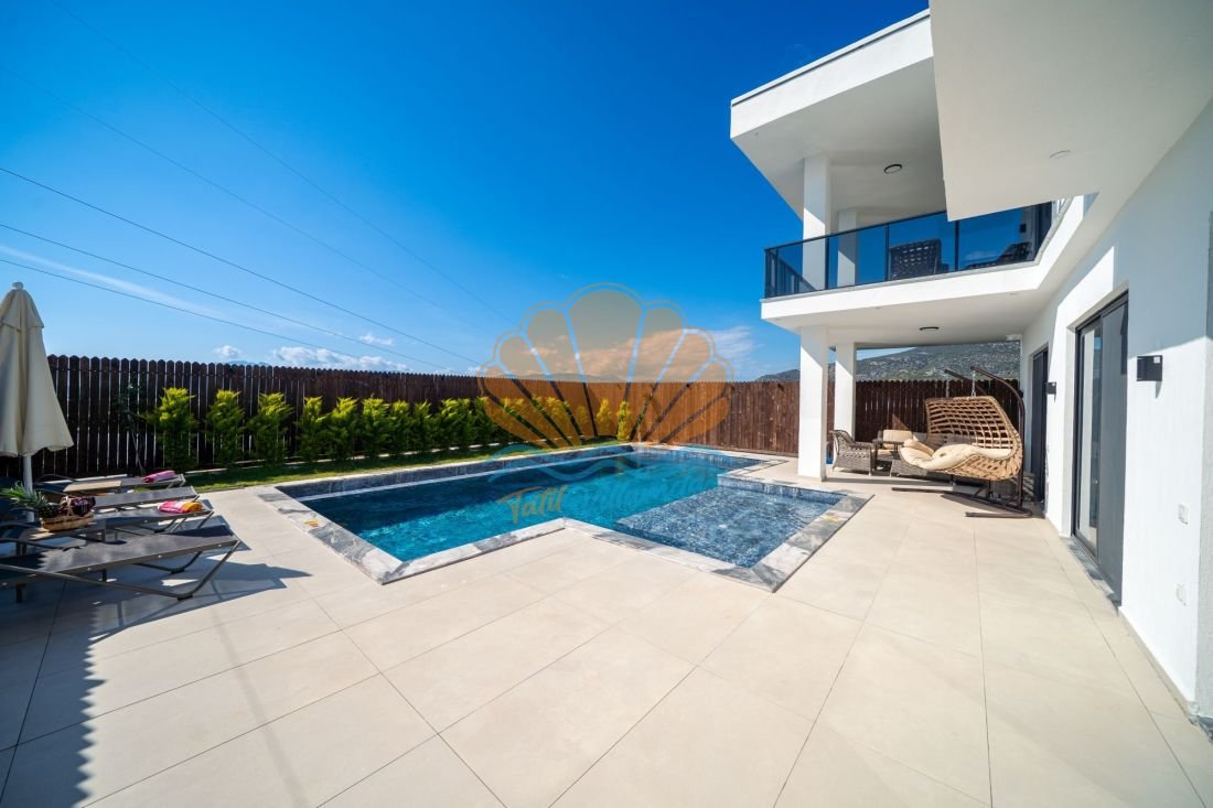 Villanın dış alanında yer alan 10×4 metre ölçülerindeki geniş ve korunaklı özel yüzme havuzu, gün boyu özgürce vakit geçirmenize olanak tanır. Havuz başında bulunan şezlonglar ve şemsiye, güneşin tadını çıkarırken konforunuzu artırır. Bahçede yer alan salıncak ve oturma grubu, sabah kahveleri ya da akşam sohbetleri için keyifli bir atmosfer sunar. Ayrıca barbekü alanı, sevdiklerinizle birlikte lezzetli sofralar kurmanız için sizi bekler.