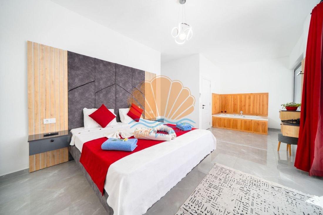 Toplam 2 yatak odasına sahip olan villa, 4 kişilik konaklama kapasitesiyle aileler ve arkadaş grupları için oldukça idealdir. Modern detaylarla dekore edilmiş yatak odalarından birinde yer alan jakuzi, tatilinize keyifli ve dinlendirici anlar katarken, günün yorgunluğunu geride bırakmanızı sağlar.