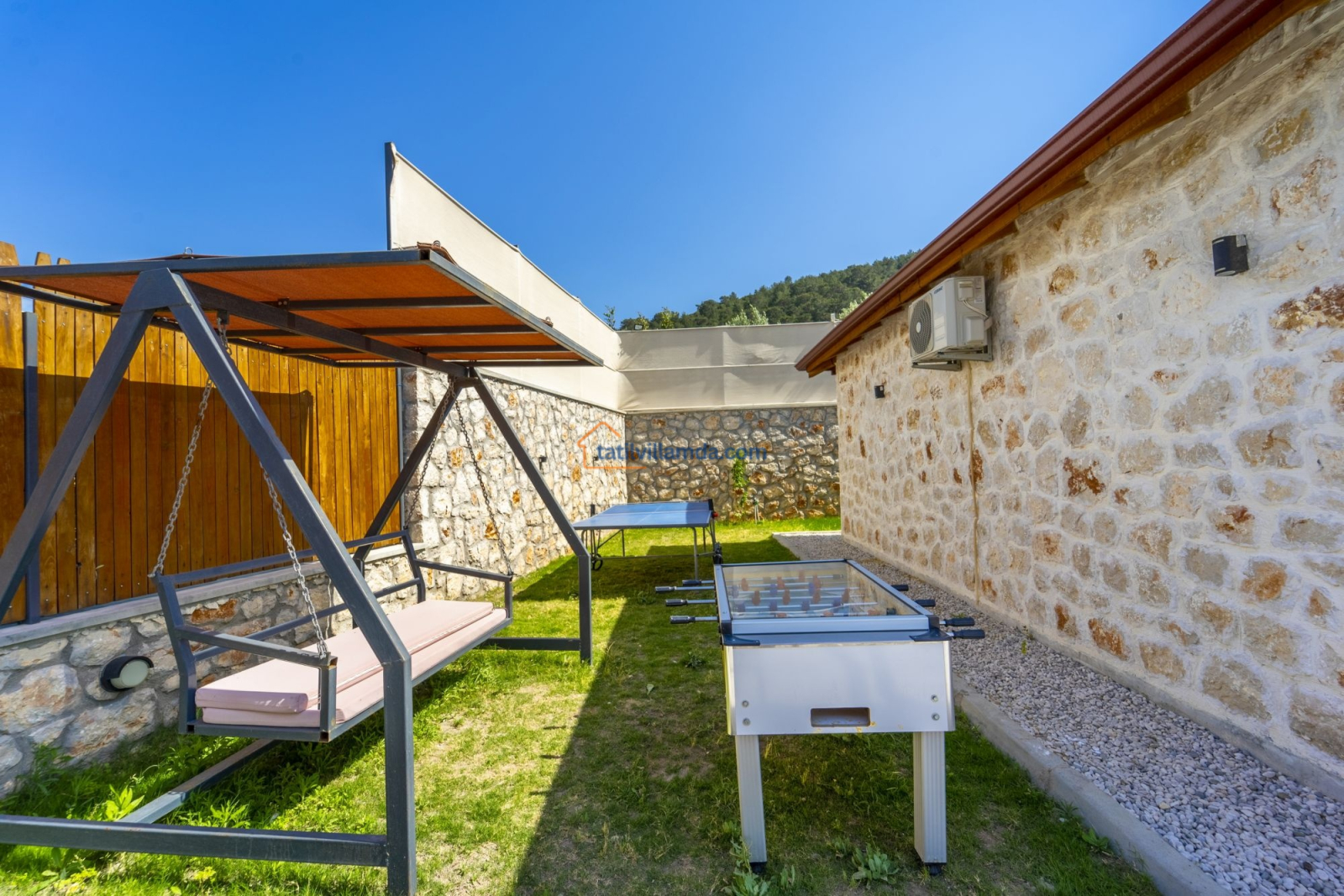 Antalya’nın en gözde tatil bölgelerinden Patara’da yer alan bu modern villa, doğa ile iç içe huzurlu bir konaklama deneyimi sunuyor. Beş kişilik kapasitesiyle aileler ve arkadaş grupları için ideal olan villada 2 yatak odası ve 2 banyo bulunur. Odalarda bir çift kişilik yatak ve iki tek kişilik yatak yer alırken, küçük misafirler için bebek yatağı da mevcuttur. Bir adet tek kişilik ek yatak mevcuttur