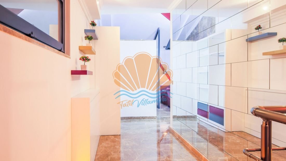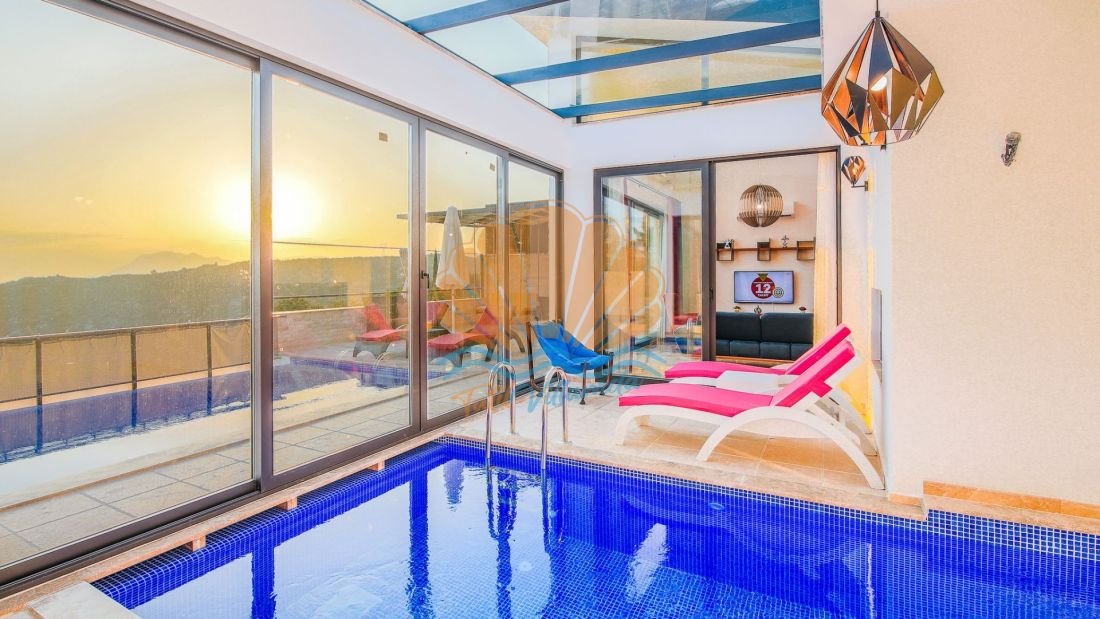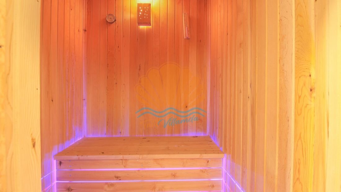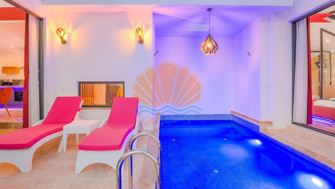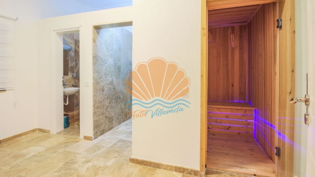 Villanın en dikkat çekici özelliklerinden biri ise ısıtmalı kapalı iç havuzudur. Dört mevsim kullanılabilen bu özel alan sayesinde misafirler yaz kış fark etmeksizin havuz keyfi yaşayabilirler. Bunun yanı sıra villada bulunan sauna da tatilinizi daha dinlendirici ve rahatlatıcı hale getirmektedir. Günün yorgunluğunu atmak ve tamamen yenilenmiş hissetmek için sauna keyfi yapabilirsiniz.