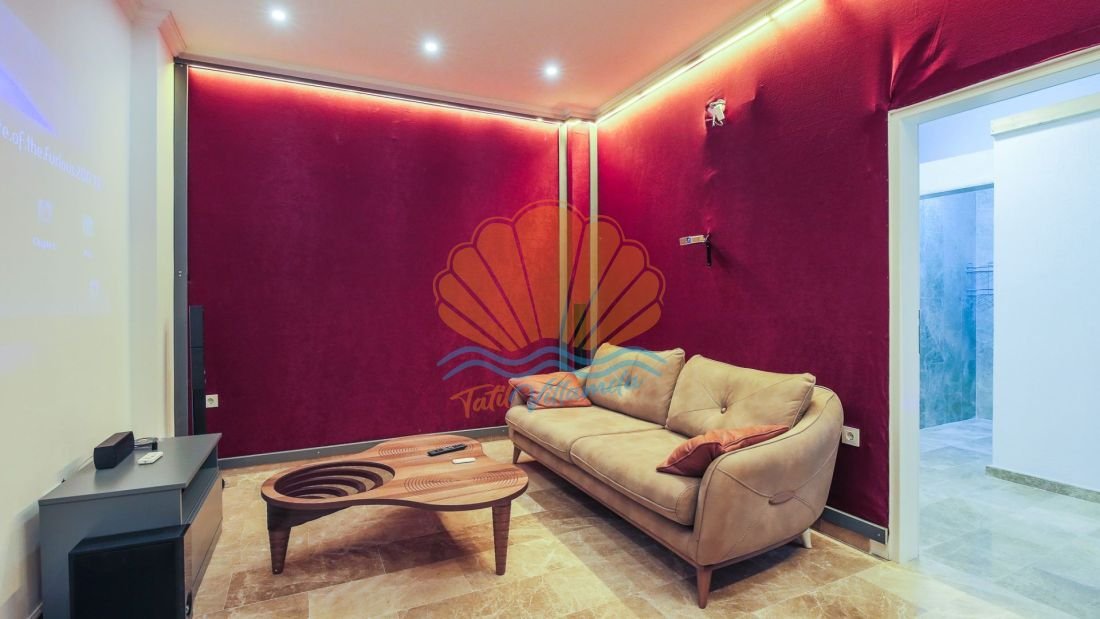 Villa Gozalak’ta ayrıca keyifli vakit geçirebileceğiniz özel bir sinema odası da bulunmaktadır. Sevdiğiniz filmleri konforlu bir ortamda izleyebilir, romantik akşamlarınızı daha da özel hale getirebilirsiniz.