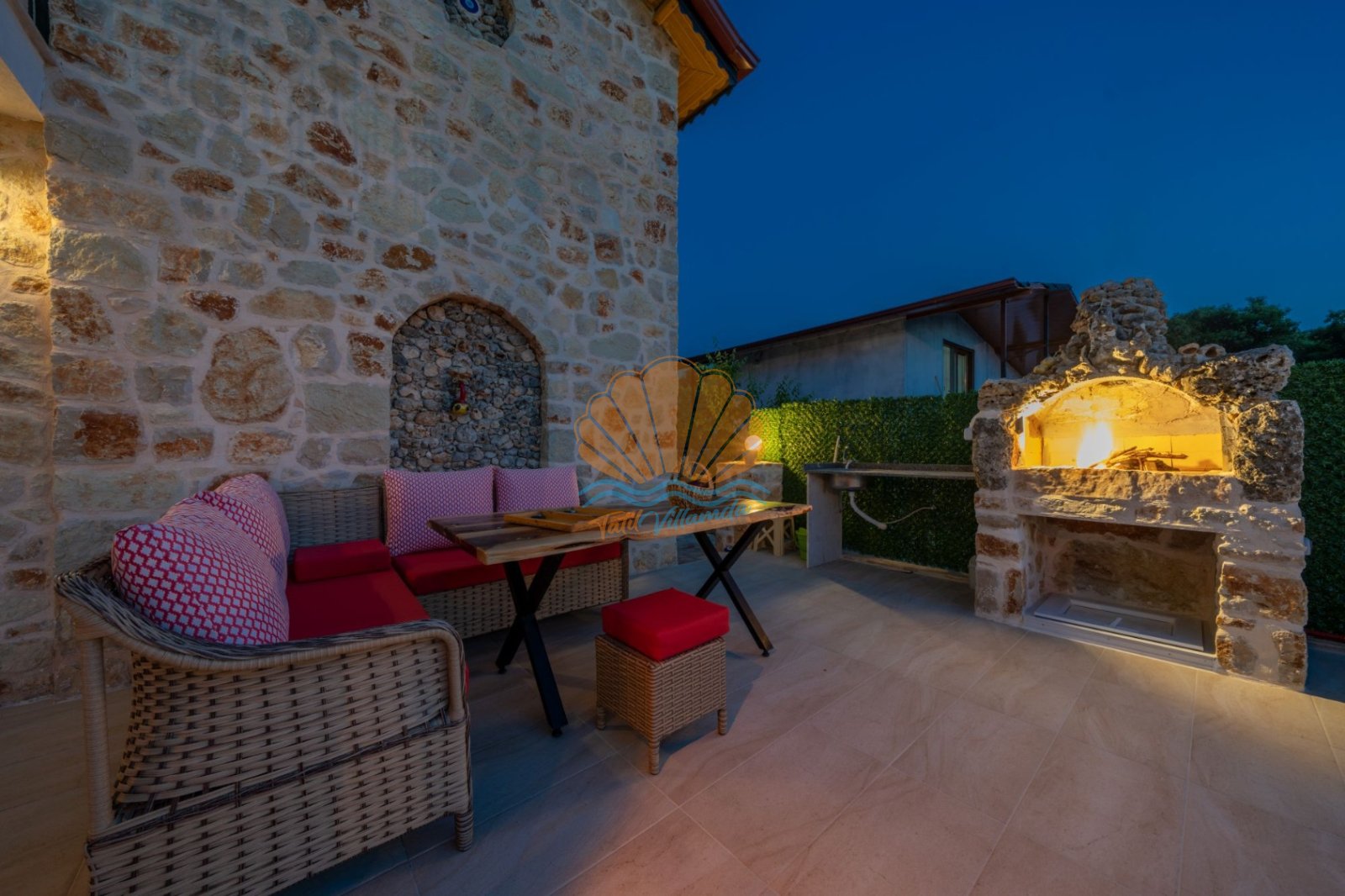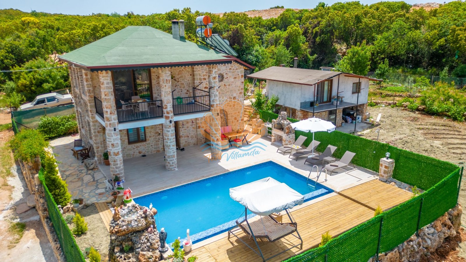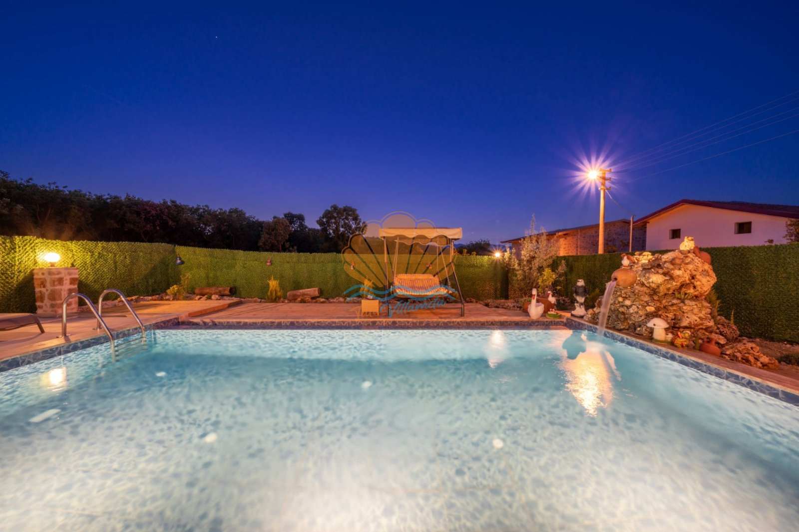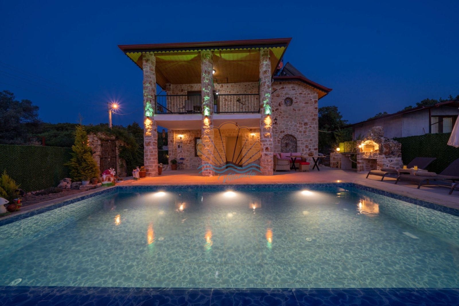 Villa Güneş’in geniş ve özel tasarımlı bahçesi, günün her saatinde keyifle vakit geçirmenize olanak tanır. Bahçede yer alan salıncak, oturma grubu ve barbekü alanı, özellikle akşam saatlerinde sevdiklerinizle hoş sohbetler eşliğinde unutulmaz anlar yaşamanıza imkân sunar. Havuz başında bulunan şezlong ve şemsiye ile güneşin tadını çıkarabilir, doğanın sakinliği içinde dinlenebilirsiniz.