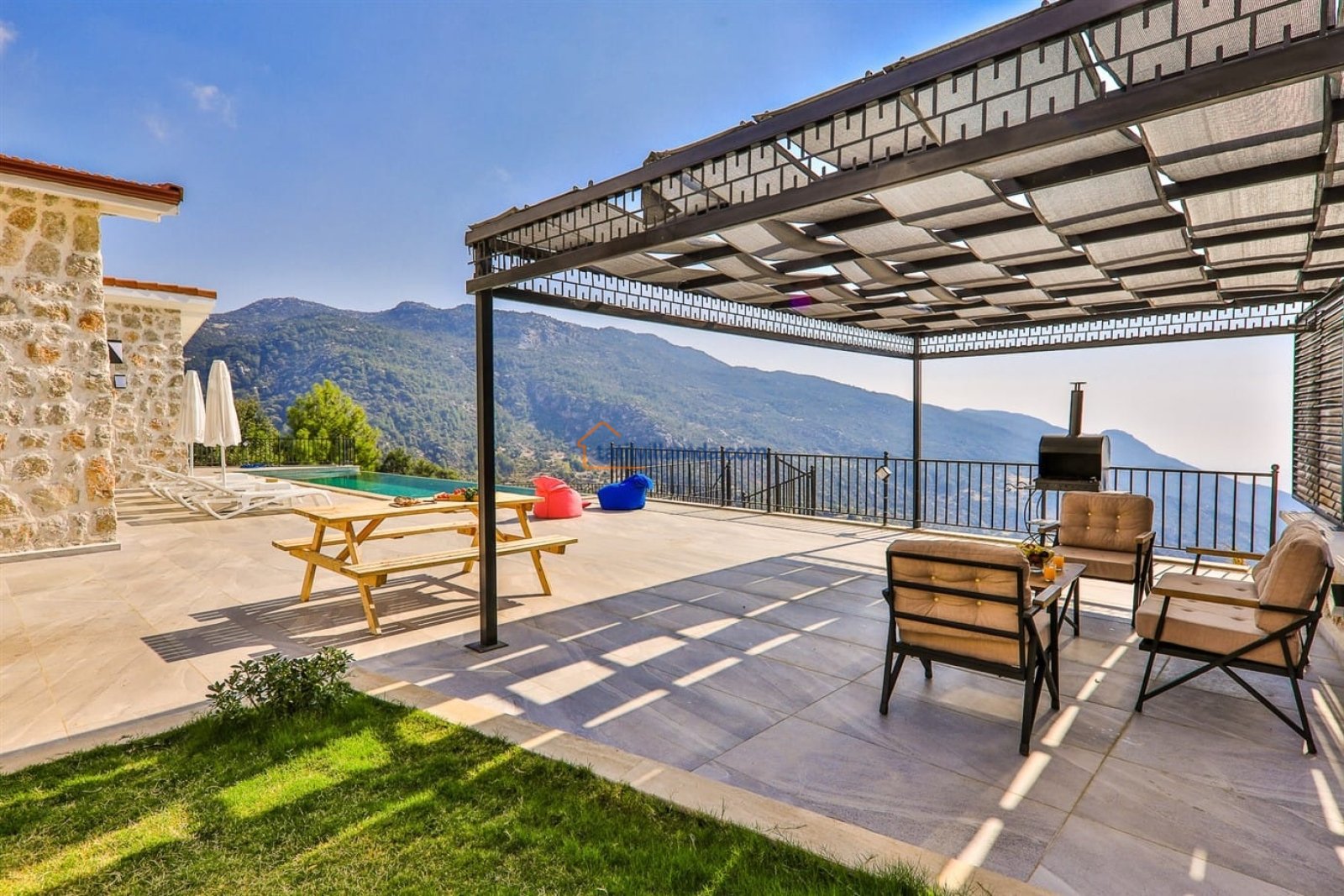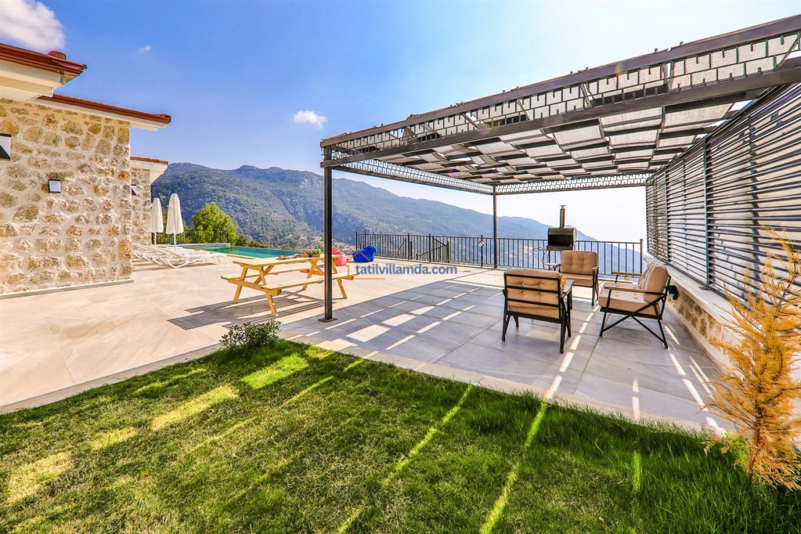 Kalkan’ın huzur dolu İslamlar mevkiinde konumlanmış, doğayla iç içe sakin bir tatil arayan misafirler için özenle tasarlanmış özel bir villadır. Yeşilin her tonunu hissedebileceğiniz bu bölgede yer alan villa, şehir kalabalığından uzaklaşıp sevdiklerinizle birlikte dingin bir atmosferde tatil yapma imkânı sunar.